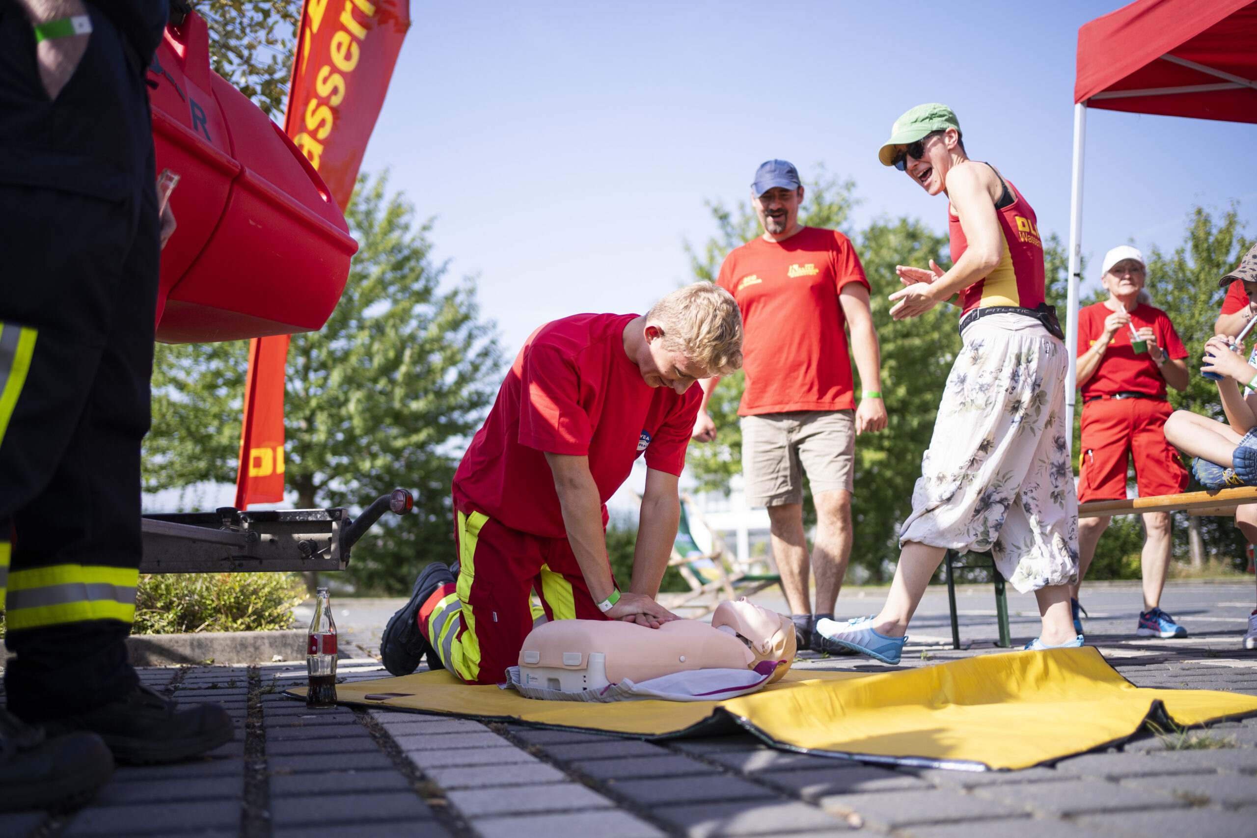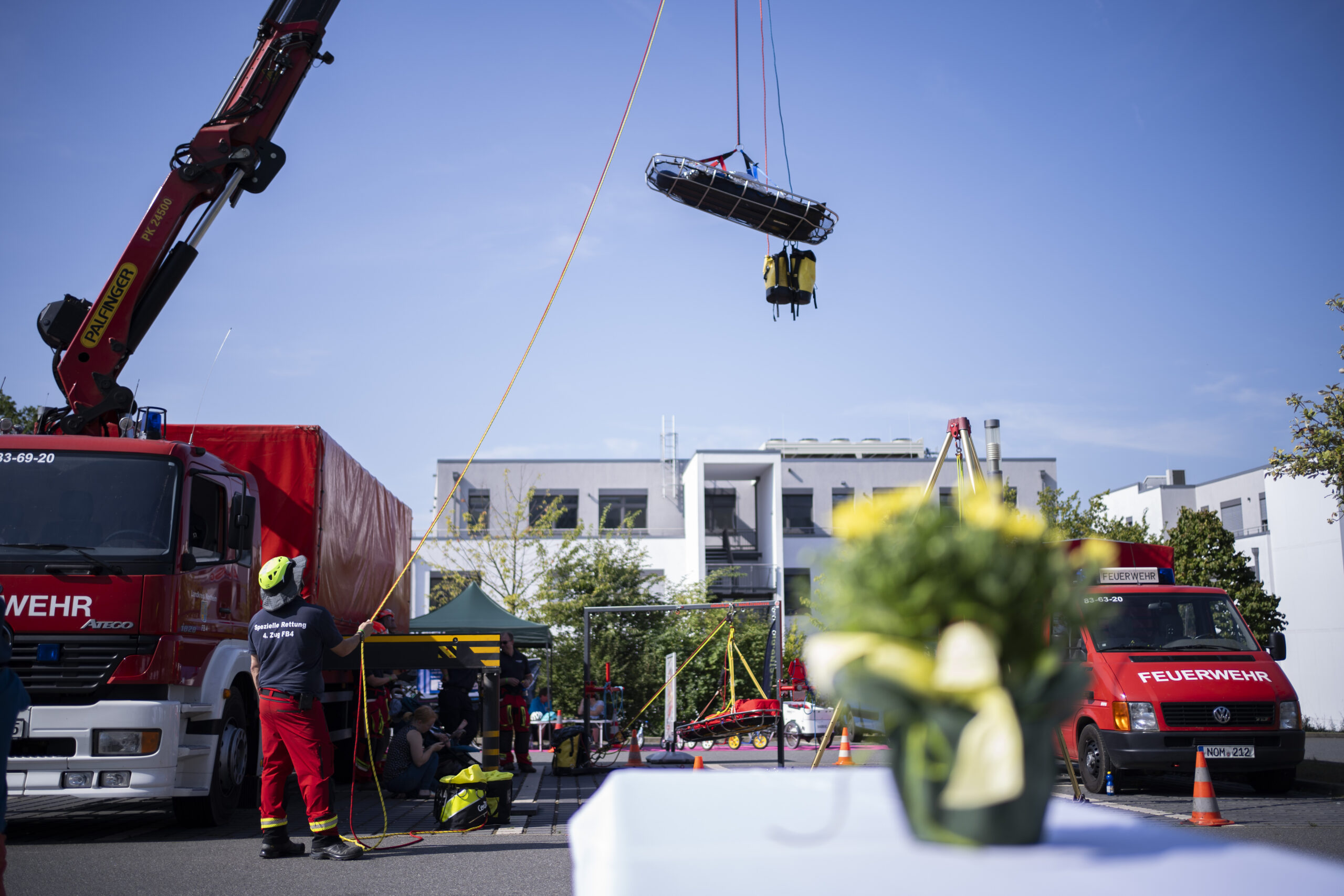 Auf der Blaulicht- und Sportmeile im Außenbereich luden viele Partner zu weiteren Aktionen ein, darunter die Höhenretter und die Drohnengruppe der Kreisfeuerwehr Northeim, der DLRG, der Krankentransportdienst R+Medi und der Northeimer Handballclub. Auf einer Bungee-Run-Anlage und beim Sprinttraining traten Sportbegeisterte gegeneinander oder gegen Oberärztin Sabine Bauer an, einstige Goldmedaillengewinnern und „schnellste Urologin der Welt“ unter den medizinischen Amateursportlern.