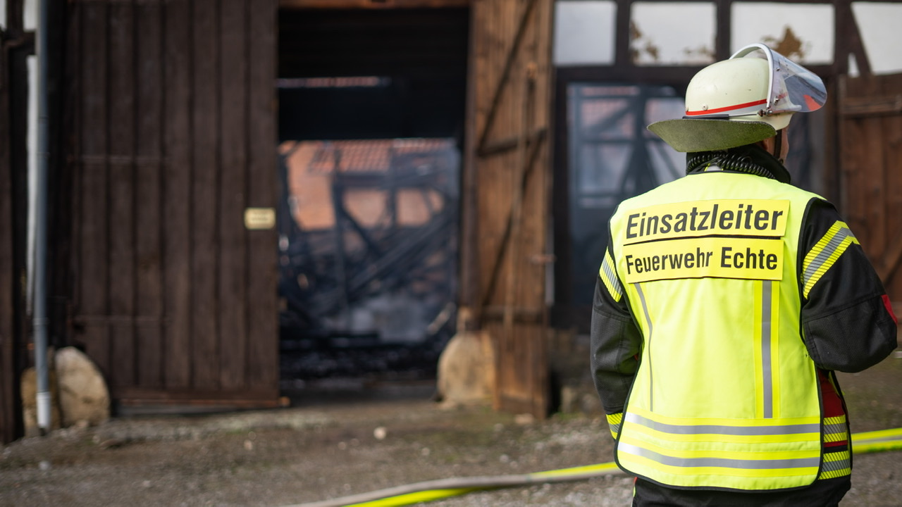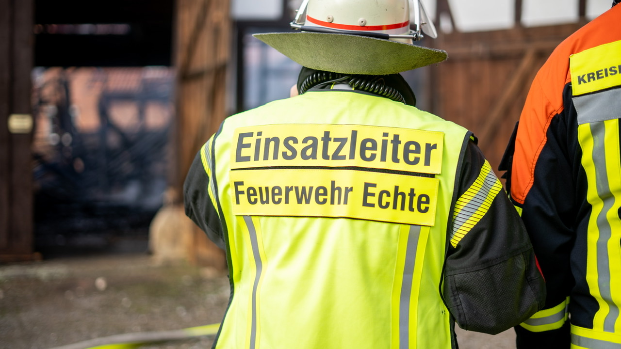 Großeinsatz für die Feuerwehren am Mittwochnachmittag in Echte. Dort brannte eine Scheune mitten in einem Wohngebiet. Das Feuer drohte auch auf anliegende Wohnhäuser überzugreifen. Mehr als 120 Kräfte waren im Einsatz. Die Polizei schätzt den Schaden auf rund 150.000 Euro.