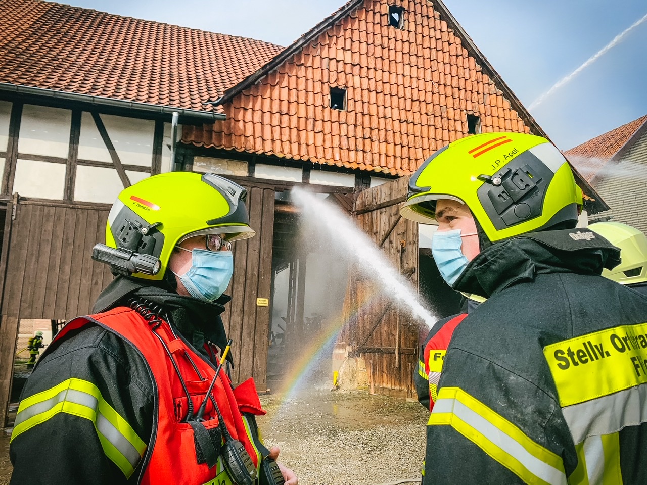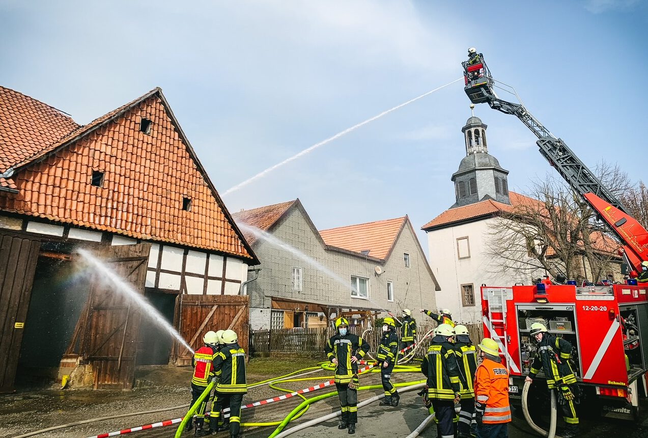 Laut Kreisfeuerwehr konnte ein Großbrand verhindert werden. In einer Scheune, umgeben von mehreren Wohnhäusern war ein Feuer ausgebrochen. Aufgrund der meterhohen Flammen und der Gefahr des Übergreifens auf andere Gebäude waren alle Feuerwehren der Gemeinde Kalefeld sowie die Feuerwehren aus Bad Gandersheim und Northeim mit im Einsatz.