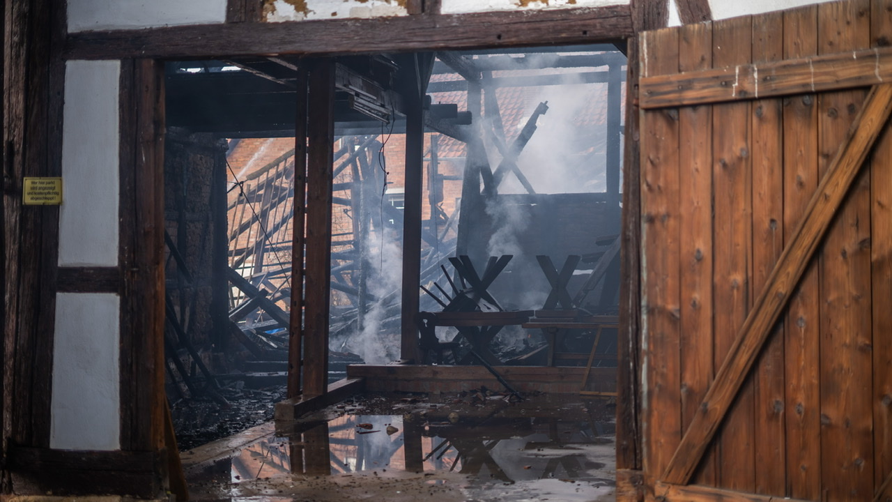 Verletzt wurde nach ersten Informationen niemand. Die Polizei hat die Ermittlungen zur Brandursache aufgenommen. Ein Teil der Scheine sei eingestürzt, Personen wurden bei dem Brand nicht verletzt. Die Brandruine wurde beschlagnahmt, der entstandene Sachschaden beläuft sich auf etwa 150.000 Euro. ros