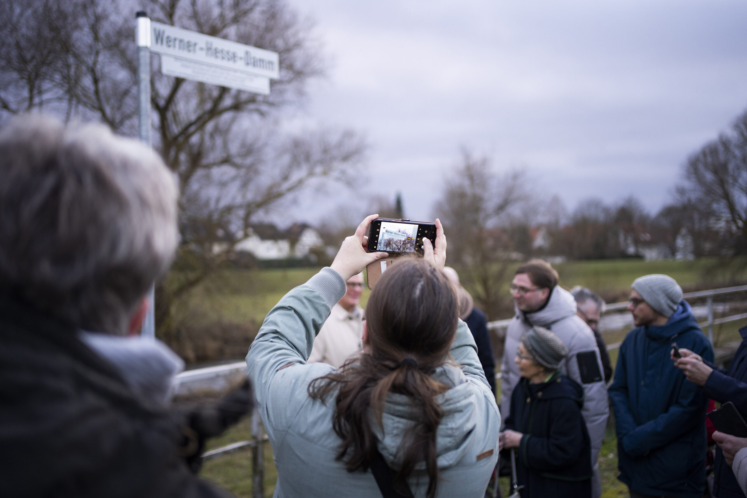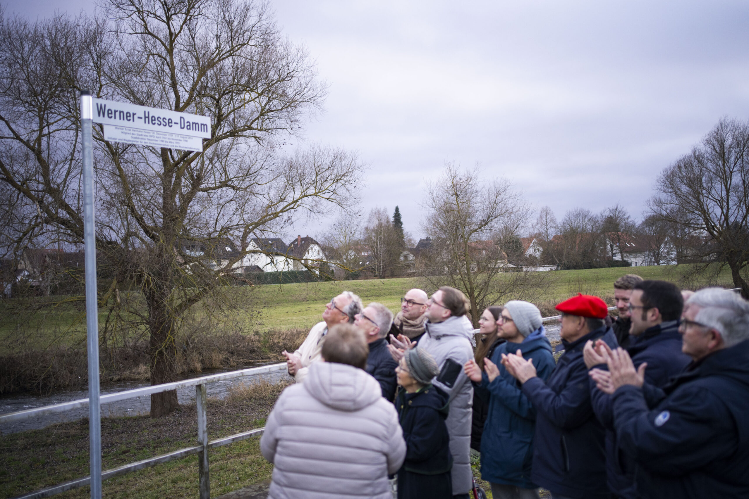 Darauf hat sich der Rat der Stadt Northeim bereits im Oktober einstimmig geeinigt. Nun wurde insgesamt sieben Namenstefeln rund um den neuen Werner-Hesse-Damm aufgestellt und wenige Tage vor Weihnachten feierlich enthüllt. Als Ehrengast war auch Werner Hesses (1929 – 2014) Witwe Christa Hesse gekommen, um die Ehren entgegenzunehmen.