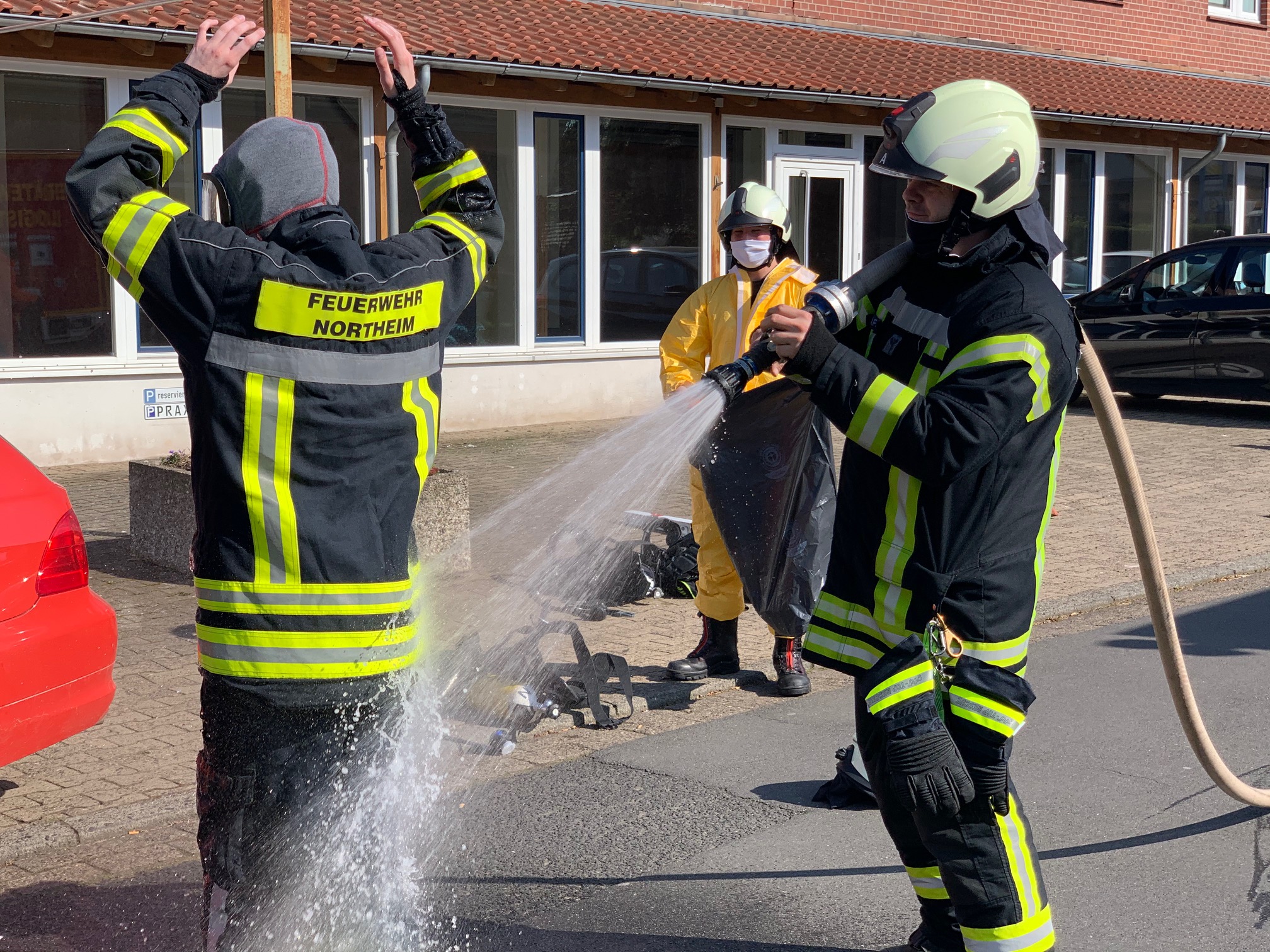 Mit zwei Drehleitern und rund 100 Kräften kämpfen die Feuerwehren aus der Stadt Northeim gegen die Flammen. Auch ein Großaufgebot von Rettungsdienst und Polizei war vor Ort. Das Feuer breitete sich in Windeseile über das gesamte Dach aus. Der Brand wurde nach knapp einer Stunde gelöscht. Eine Person wurde gerettet, laut Polizei war eine weitere Bewohnerin zunächst nicht auffindbar – meldete sich aber wenig später wohlauf.