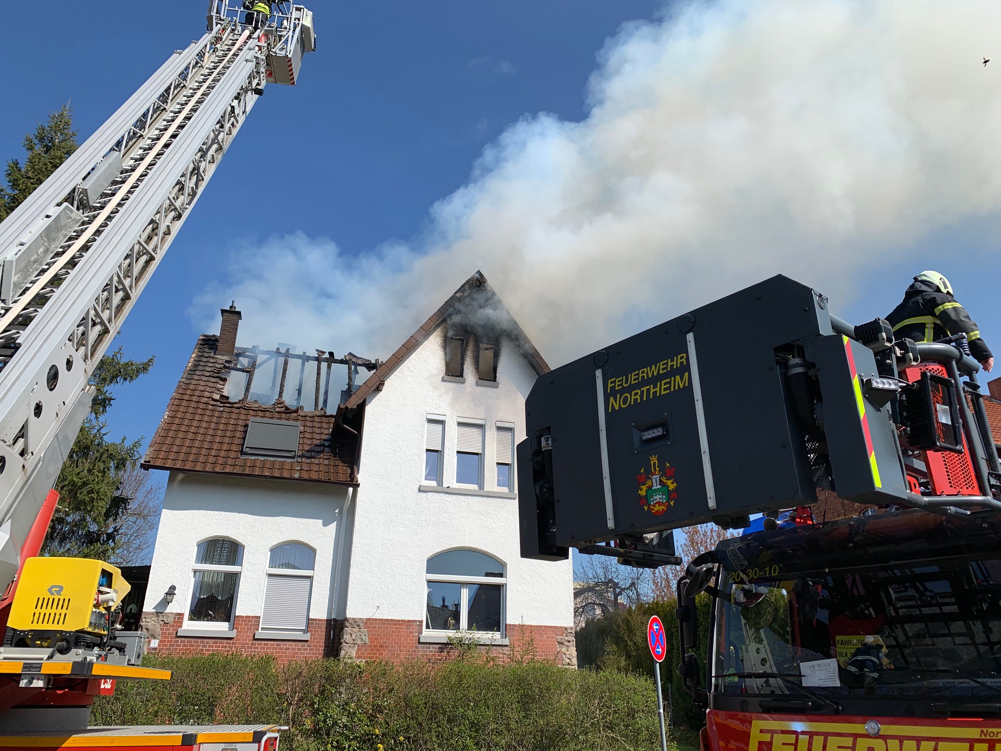 Großeinsatz in Northeim. Kurz vor 15 Uhr wurde der Feuerwehr ein Gebäudebrand am Wolfshof gemeldet. Beim Eintreffen der ersten Kräfte bestätige sich die Meldung. Das Dach des Hauses stand bereits in Flammen.