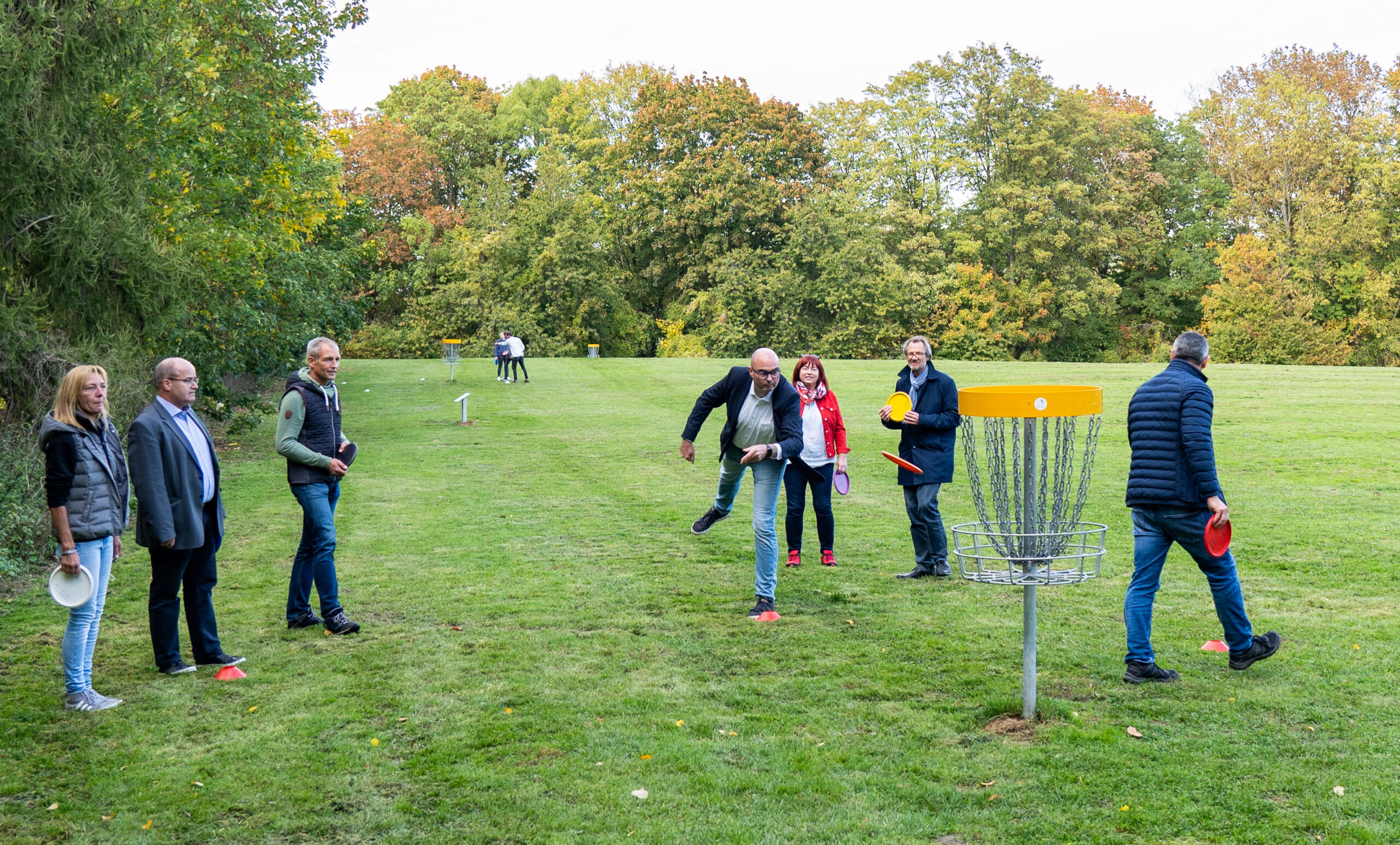 Die Körbe wurden bereits 2020 auf der Wiese installiert und können seit dem benutzt werden. Tatsächlich haben seit dem viele die Anlage bereits genutzt, auch echte „Profi“-Disc-Golfer wie Jörn Kassner vom Corvi, der den Anwesenden direkt einmal zeigte, wie es geht. Sie waren es übrigens auch, die das Ganze überhaupt erst möglich gemacht haben. Durch ihre Spenden wurden die neun Körbe zu je rund 500 Euro aufgestellt, vor allem aber aufgrund des Engagement sportbegeisterter Menschen aus der Region.