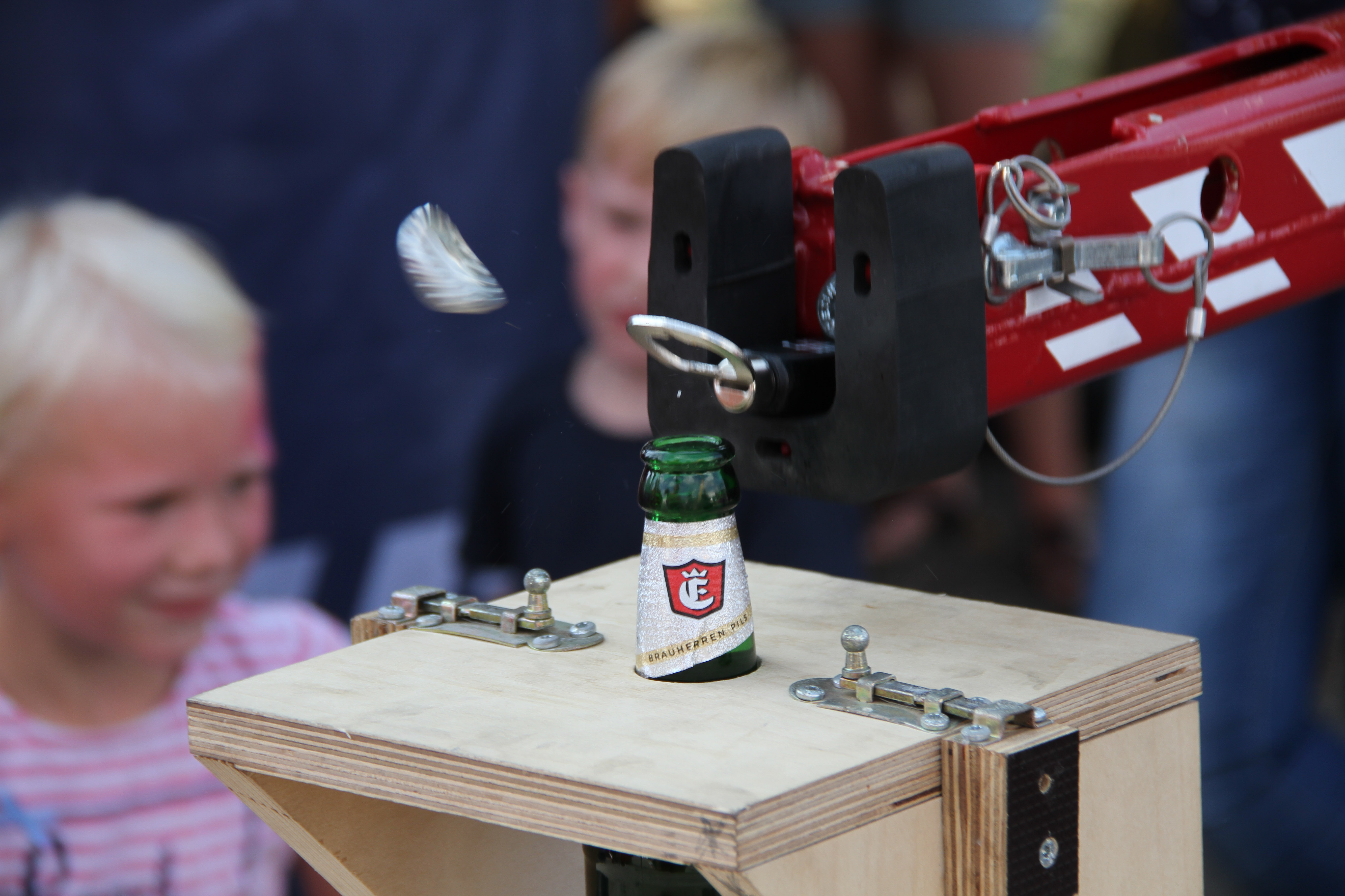 Die Sonne stand hoch an diesem Samstag. Traumwetter für jede Outdoor-Veranstaltung. Die Planer vom BaHaMa-Sommerfest – Bauen, Handwerk und Maschinen bei Bahama-Strandatmosphäre – haben zumindest hier schon mal den Jackpot gewonnen. Fast wäre es zu warm gewesen, kalte Getränke gab es aber schon ab einem Euro. Die Mischung aus Messe für alles aus den Gebieten Bauen, Handwerk und Maschine und Familienfest kam bei den Northeimern gut an. Schon von Weitem waren die hohen Kräne der Firma w.schnittger unweit des Sultmers gut zu erkennen. Zu sehen gab es vor Ort einiges. Vor allem aber auch zum Ausprobieren. Kinder und Erwachsenen durften Kräne und Bagger, Lastwagen und Hubbühnen nicht nur anschauen, sondern selbst ausprobieren.