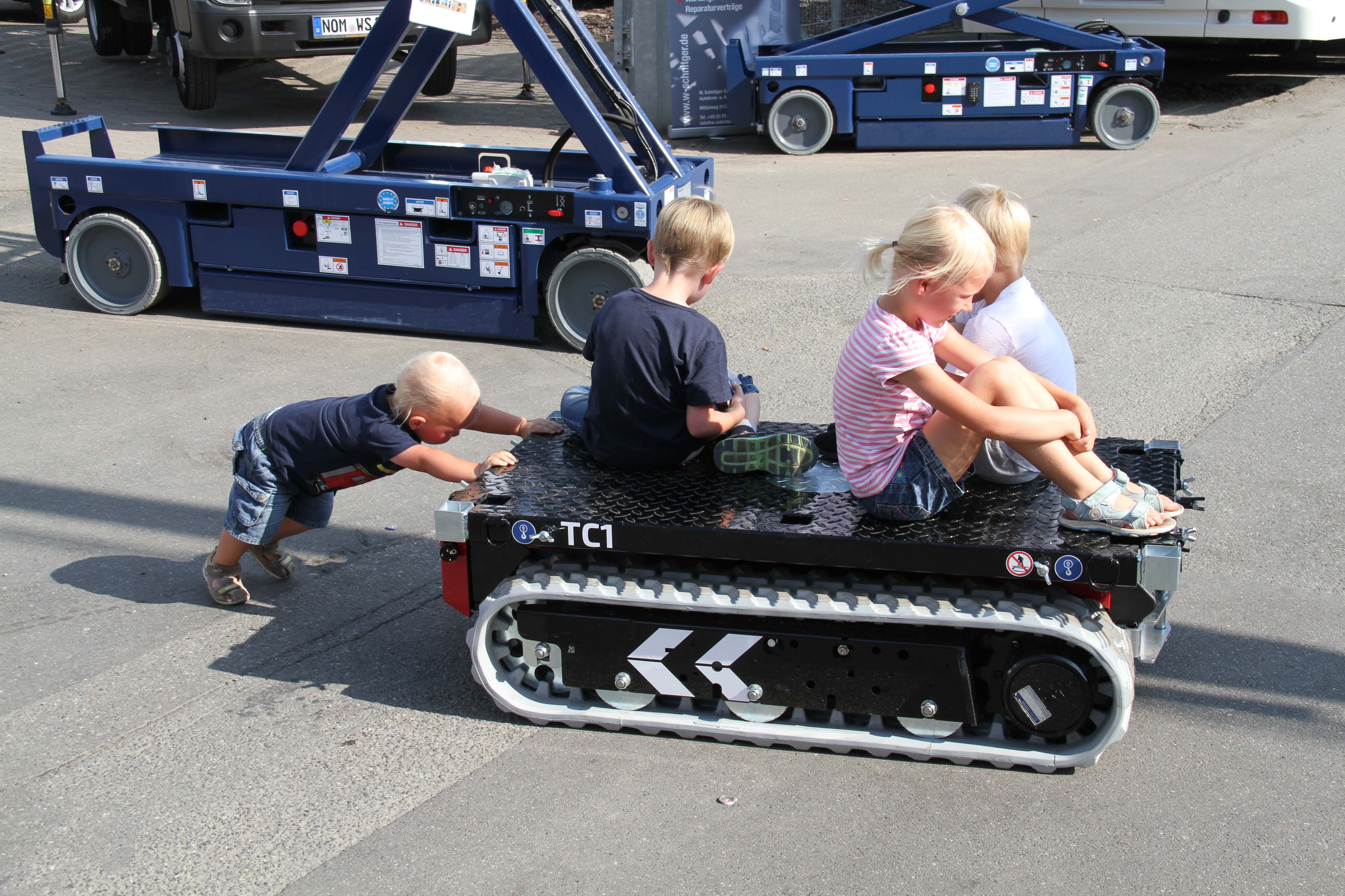 Die Johanniter, die ebenfalls am Mittelweg ihr Zuhause haben, zeigen sich, ihre Arbeit und vor allem ihre Rettungshunde. Die Hebebühnen halfen Street-Art-Künstlern dabei, große Kunstwerke an die Wand zu zaubern. Eine Body-Art-Künstlerin malte Live auf lebender Leinwand. Kinder erlebten mit einem Laufzettel eine kleine Rally über das Gelende und mussten dabei Flamingos aus einer Radlader-Schaufel zählen, einen Bagger bedienen und Wasserhähne in der Wohnweltausstellung von Sero finden.