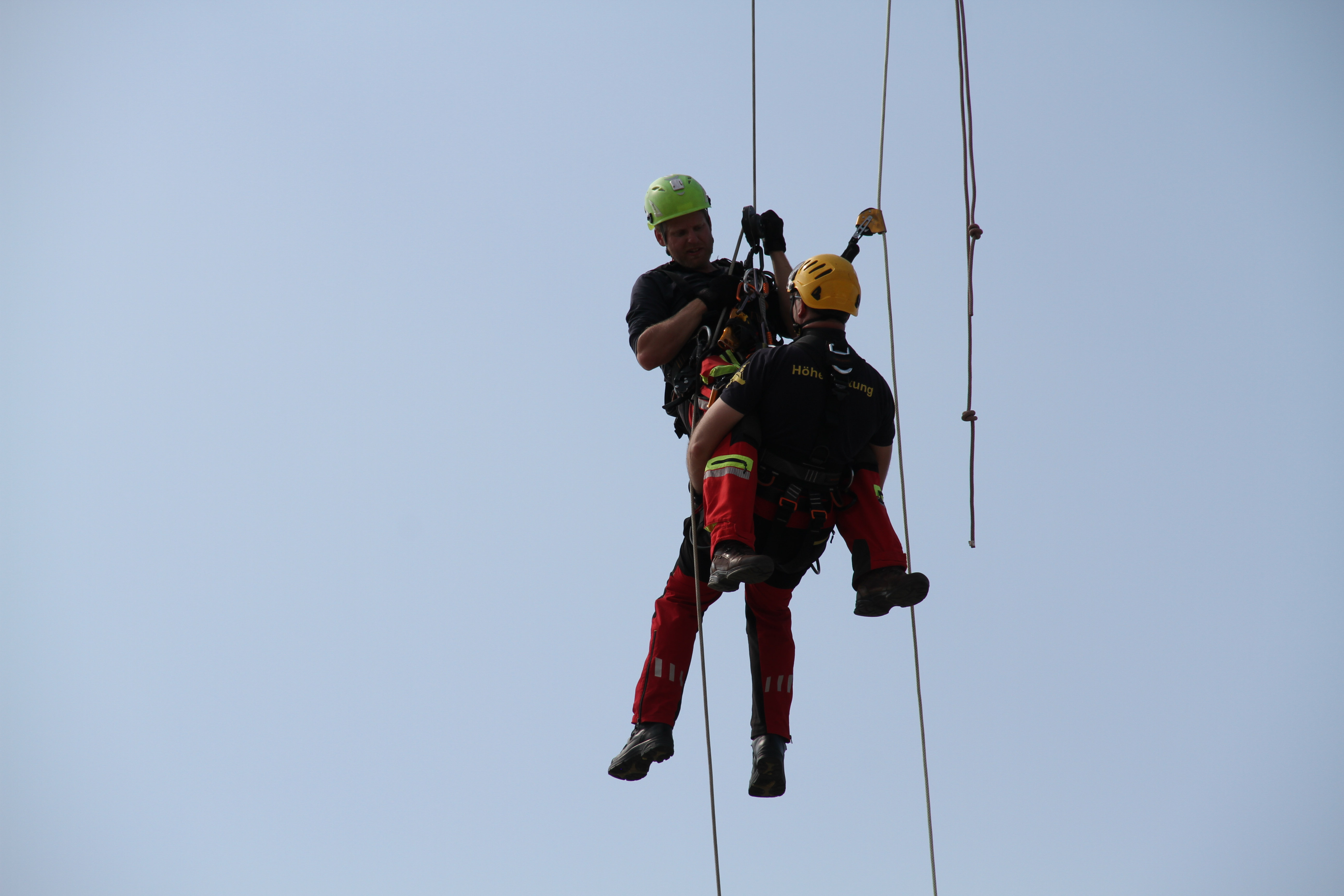 Partner wie die Freiwillige Feuerwehr und das BMW-Autohaus Leinetal zeigten sich ebenfalls. Die Feuerwehr präsentierte die technische Rettung aus einem Lieferwagen und einem Wohnmobil, die Spezialtruppe der Höhenretter seilte sich aus einem Kran ab. Highlight war für viele Besucher aber die Fahrt in der 50-Meter-Hubbühne. Dank des guten Wetters war der Blick nicht nur über das Fest, sondern über das komplette Stadtgebiet möglich.