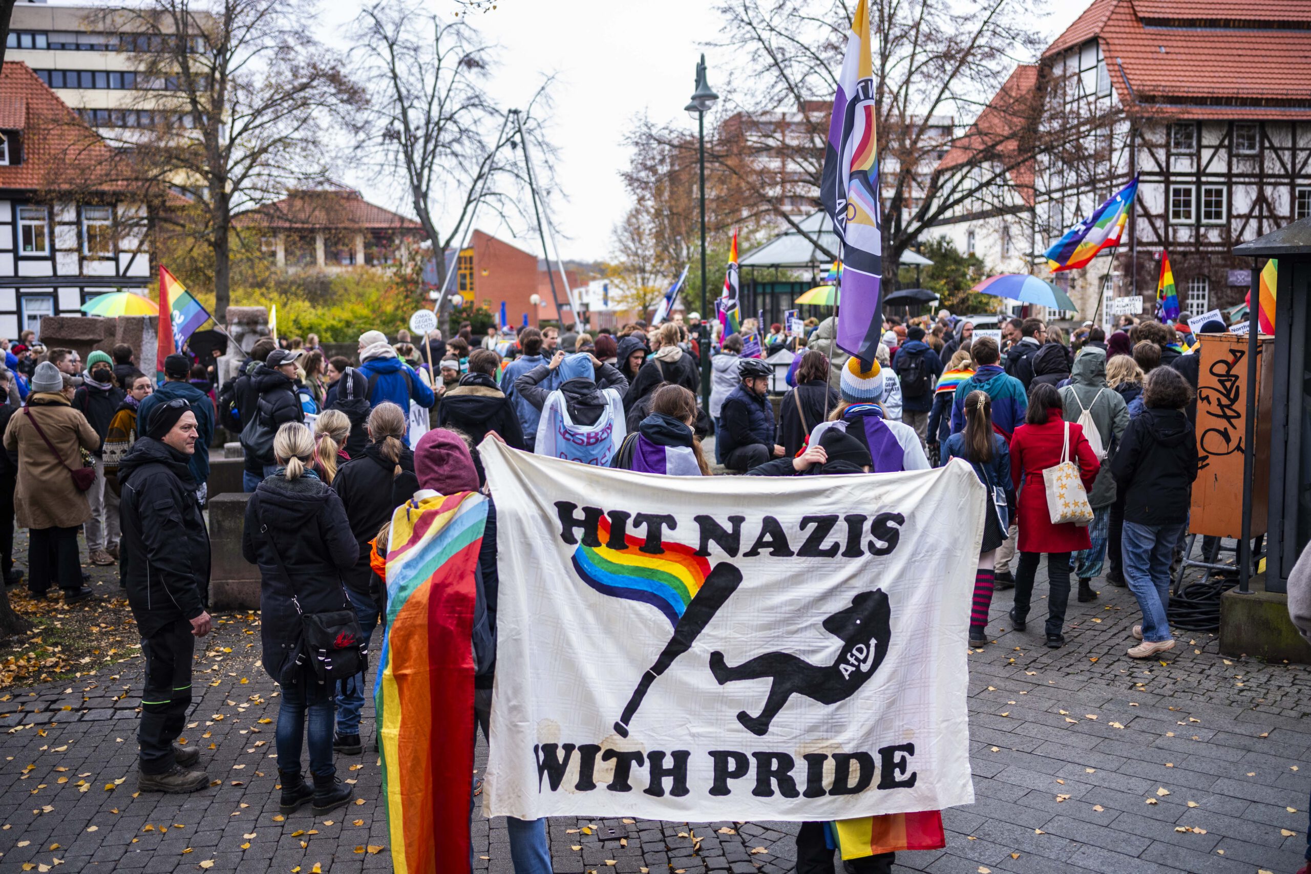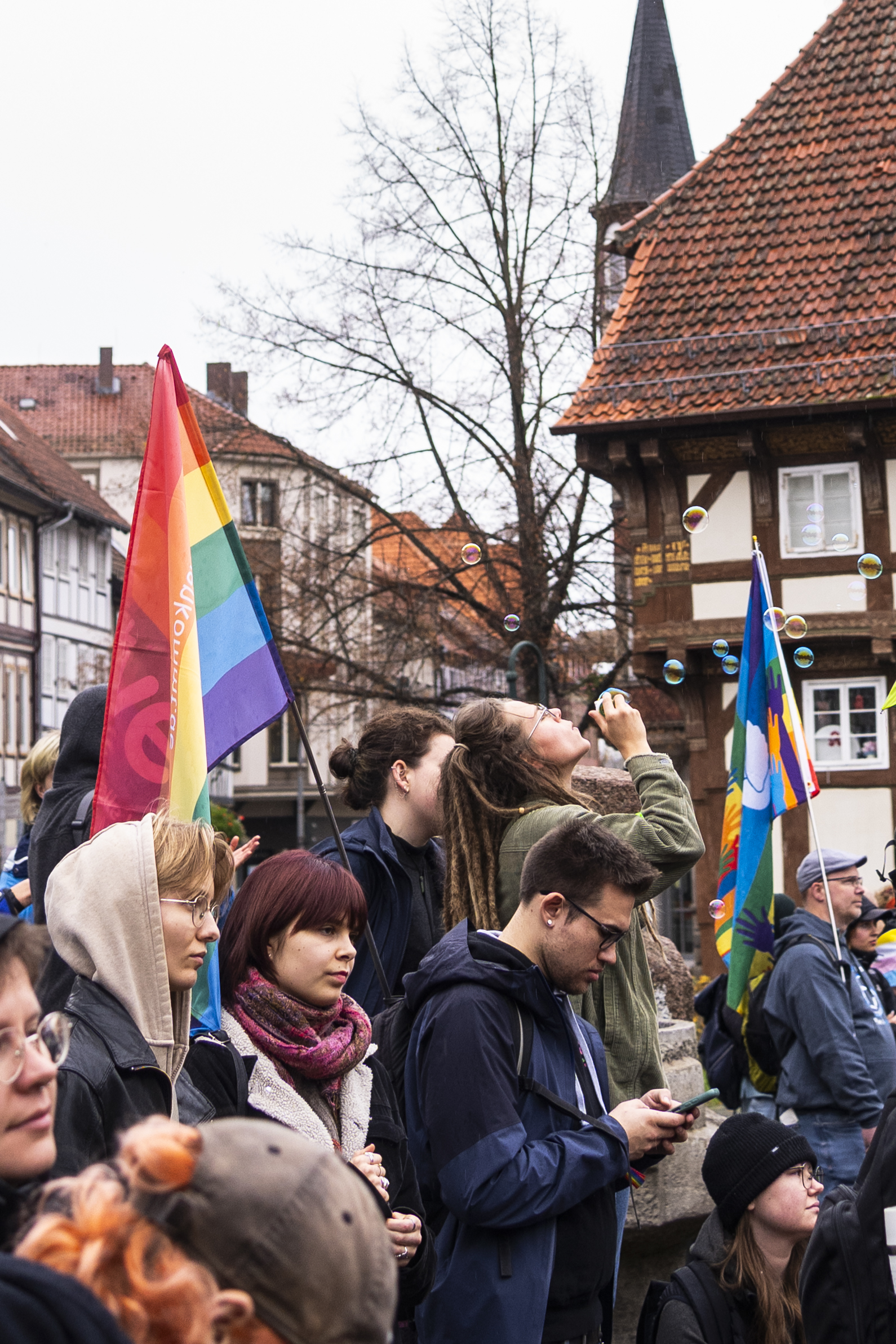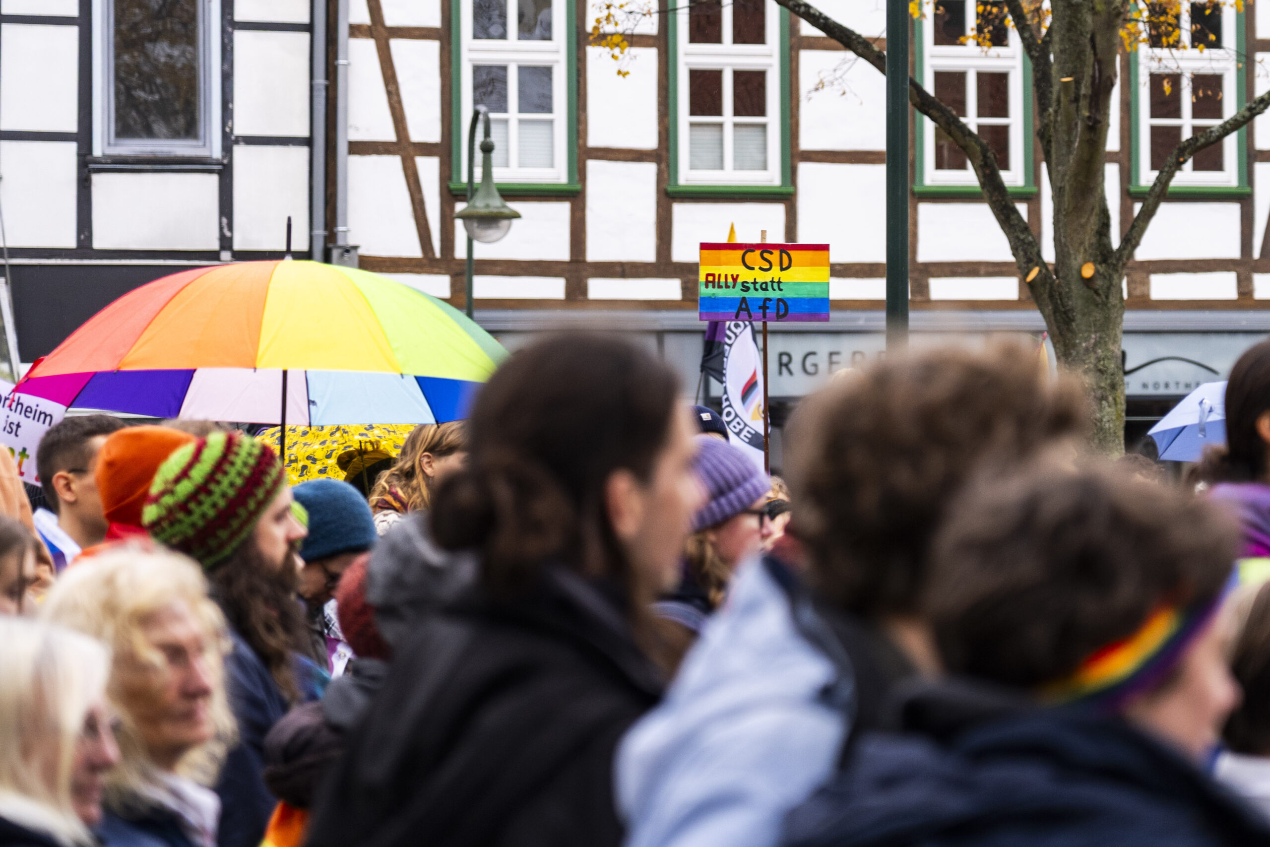 Mit Regenbogenfahnen, selbstgemalten Plakaten und bunten Regenschirmen zog am Samstag zum ersten mal eine Art Christopher-Street-Day durch Northeim. Rund 200 Menschen setzten dabei ein Zeichen für Toleranz, Gleichberechtigung und Vielfalt.