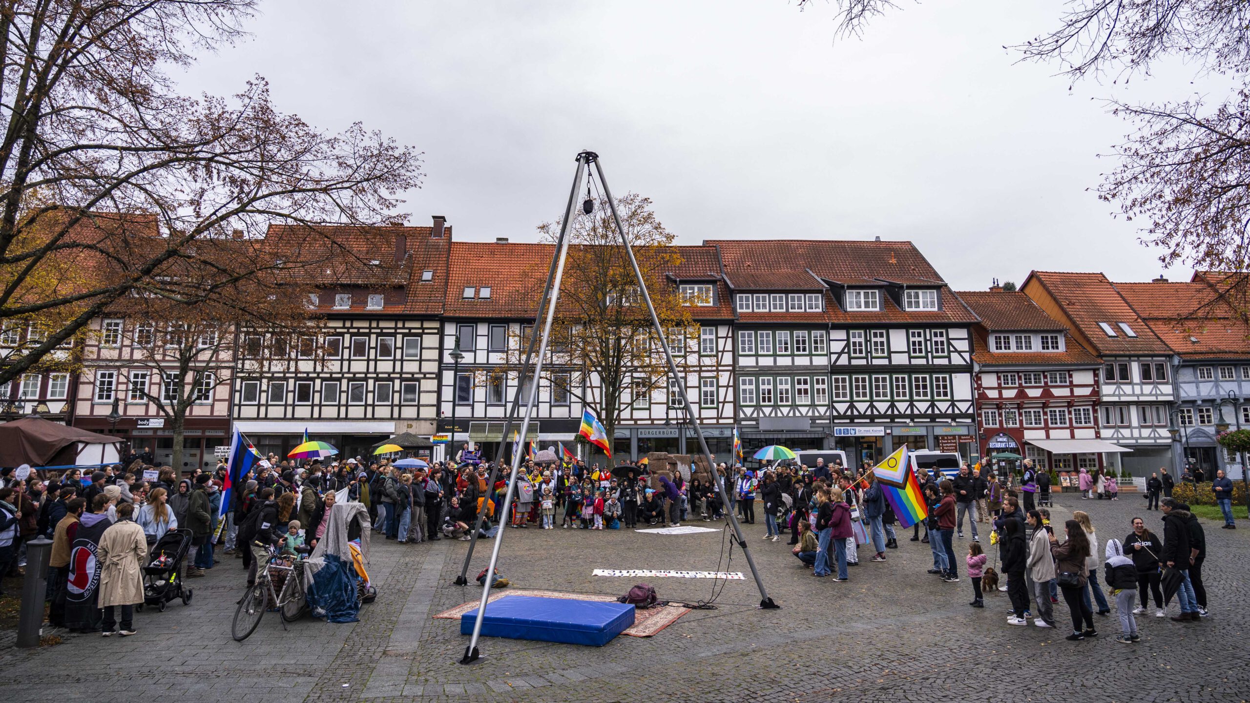 Nach einer ersten Kundgebung am Münsterplatz zog der Demonstrationszug durch die Northeimer Innenstadt. Immer wieder klatschten Passanten am Straßenrand, einige wenige blieben stehen und beobachteten das farbenfrohe Treiben mit neugierigen Blicken. Gegendemonstrationen gab es keine.