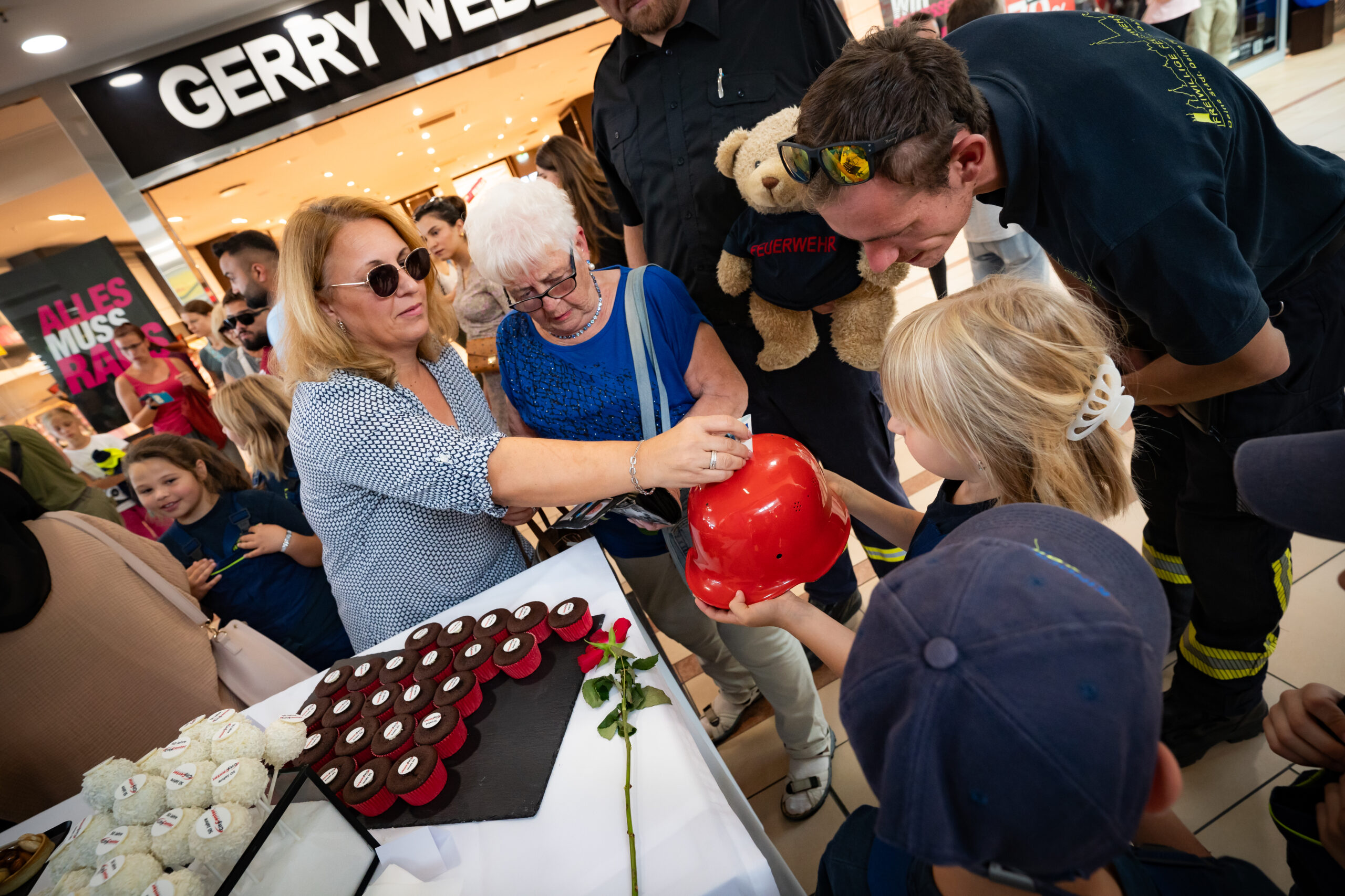 Am Freitag und am Samstag feiert das Northeimer City Center 50. Geburtstag. Neben einem Piano auf Rädern und einem bunten Programm der dortigen Unternehmen, wurde am Freitag ein Geburtstags-Kuchen zugunsten der Kinderfeuerwehr Northeim verschenkt. Zu den ersten „Bäckereifachverkäufern“ gehörten Bürgermeister Simon Hartmann, City-Center-Manager Lorenz Körbelin und Kinderfeuerwehrwart Michael Wolf.