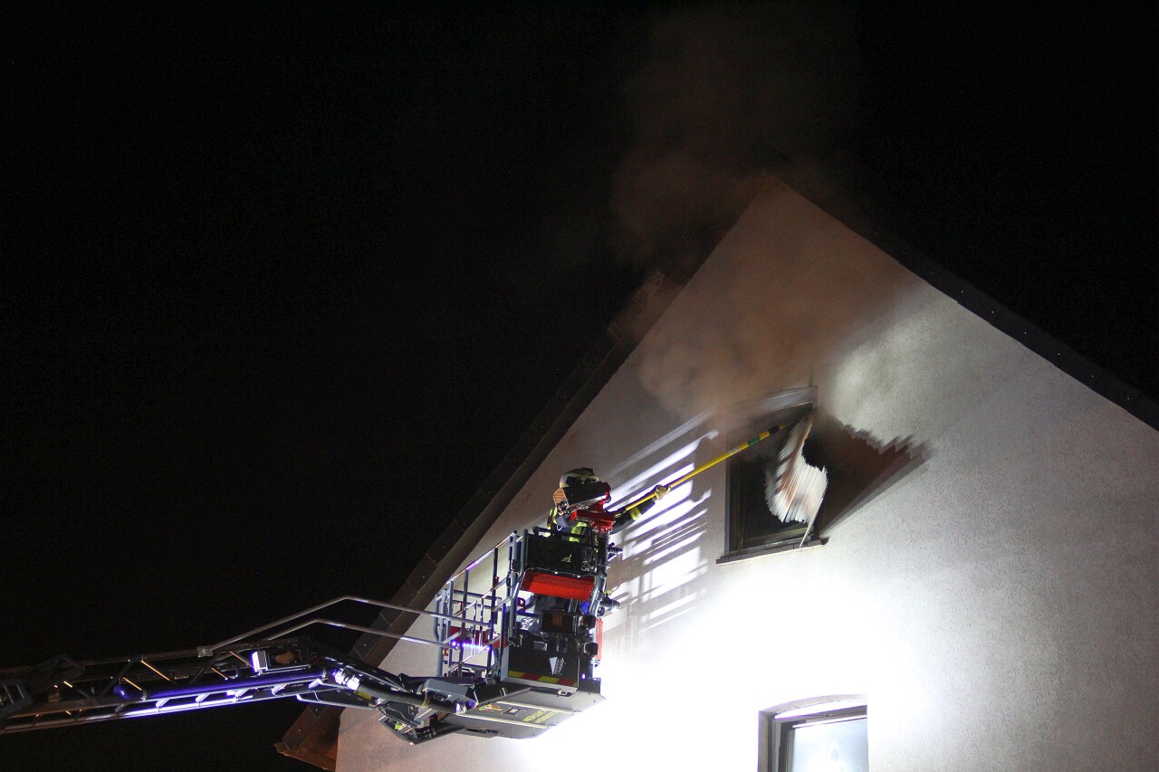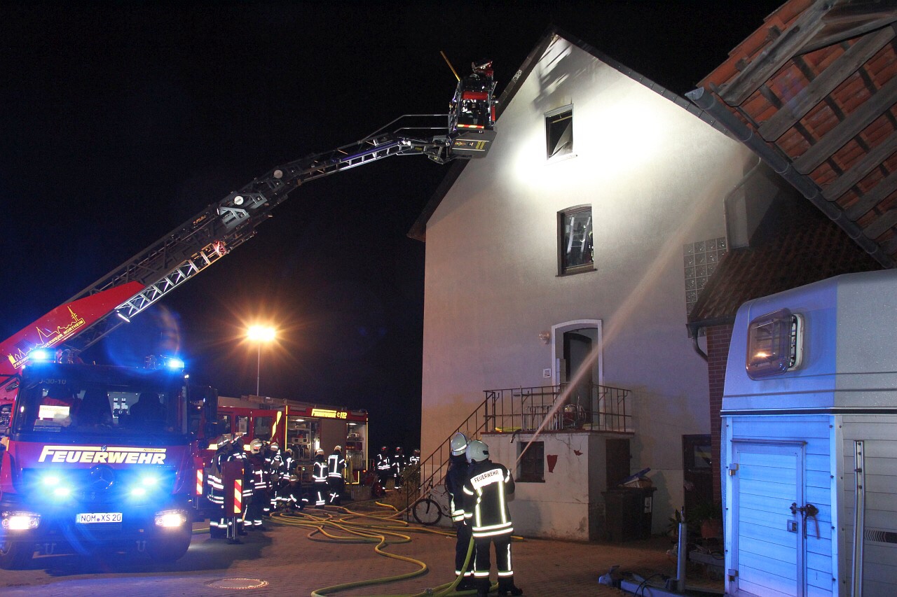 Im Einsatz waren die Feuerwehren aus Hillerse, Höckelheim, Berwartshausen und Northeim. Vom Korb der Drehleiter öffnete ein Feuerwehrmann mit Atemschutz von außen das Giebelfenster. Weitere Einsatzkräfte unter Atemschutz wählten den Weg von innen. Offenbar waren mehrere Möbel in Brand geraten.