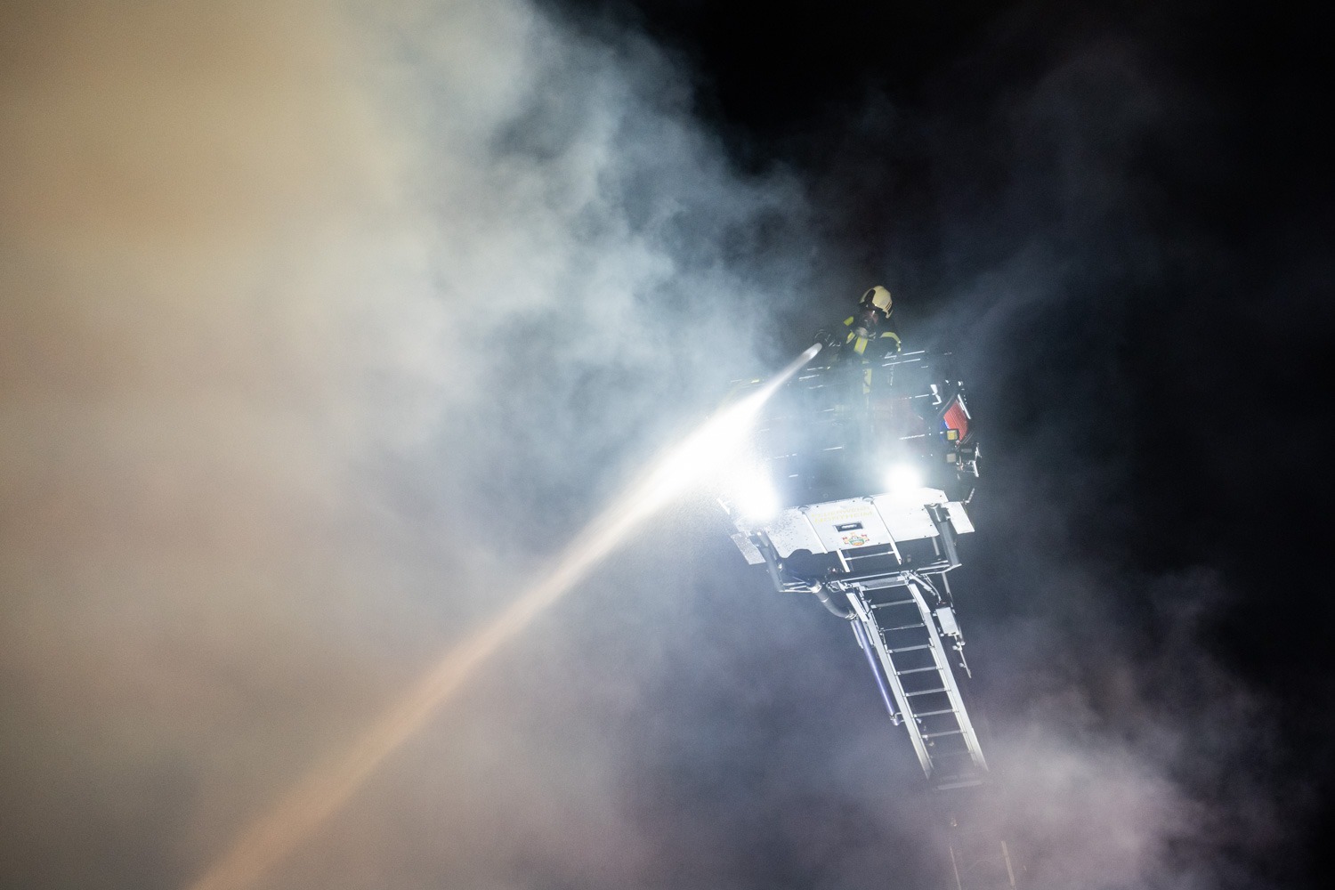 Auch die Einsatzkräfte sind durchgefroren, beobachten gemeinsam den Bagger und sehen, dass auch der Qualm nachlässt. Immer wieder löscht die Feuerwehr per Drehleiter und vom Boden Trümmerteile und Flammen im Gebäude. Einige wenige wissen: Das dauert hier noch ein paar Stunden. Andere fahren heim. Denn erst der nächste Morgen wird zeigen, was das Feuer angerichtet – und was die Feuerwehr gerettet hat.