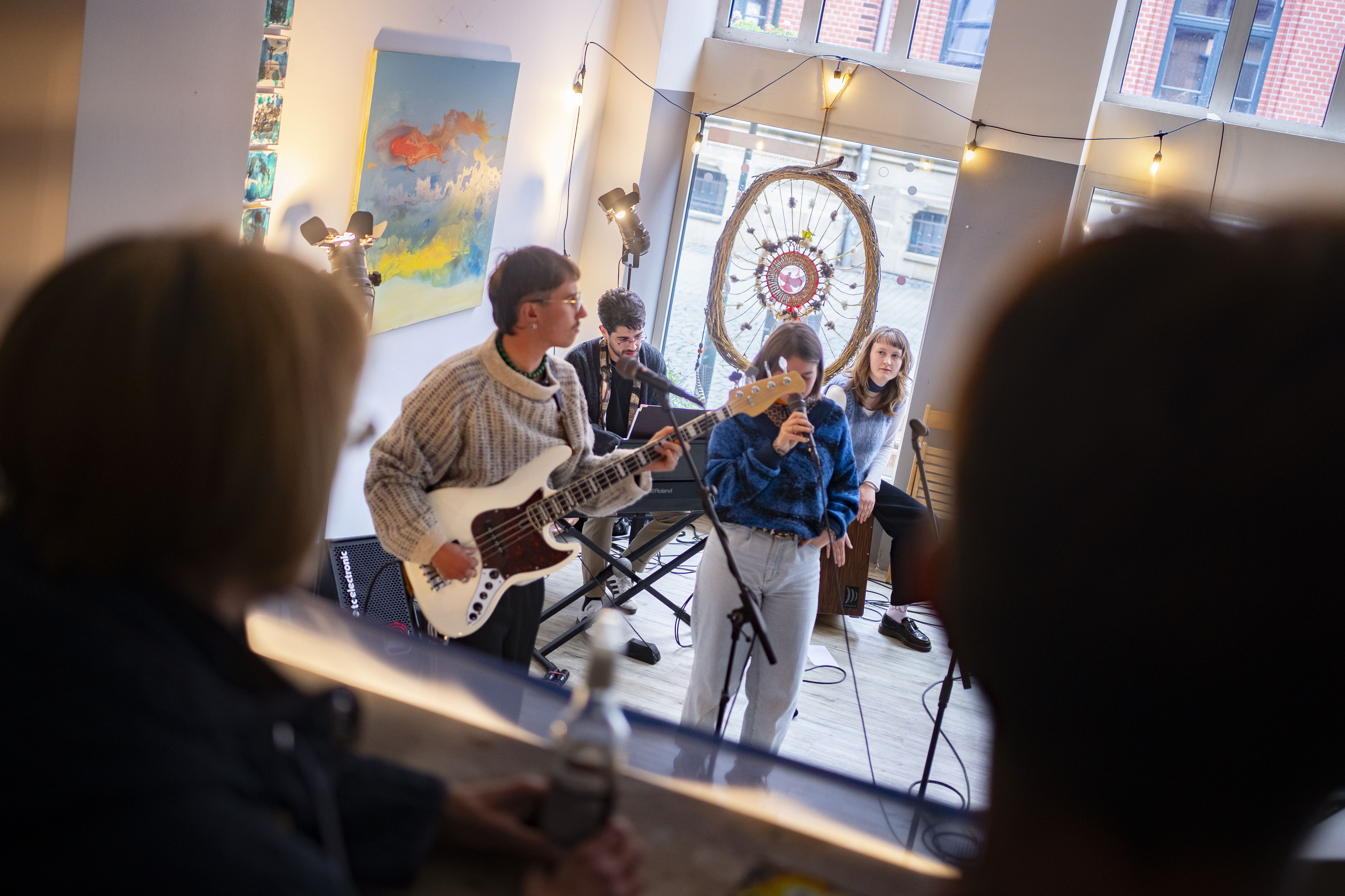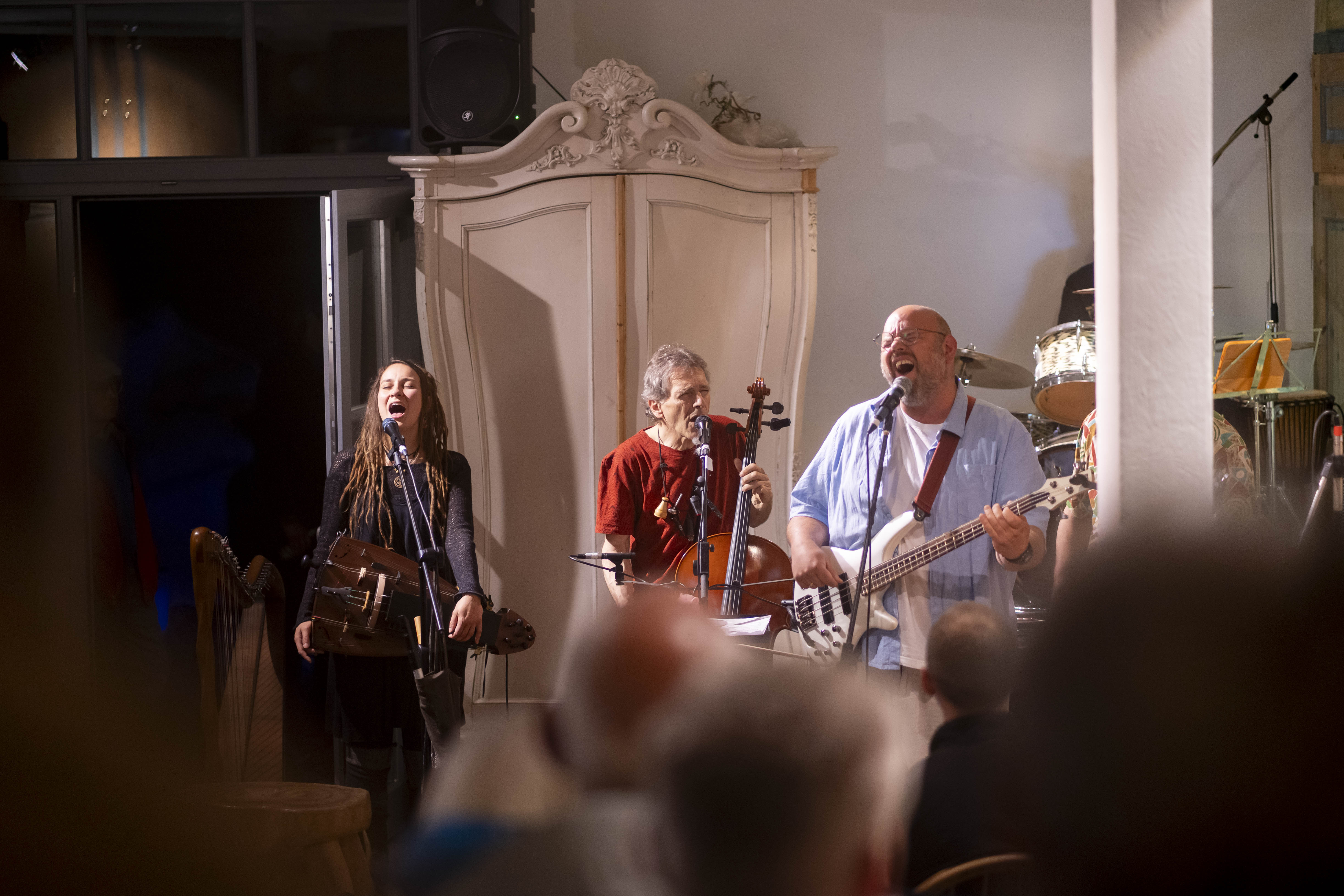 In der Stadthalle standen mit „das Xperiment“ und „Unicat“ gleich zwei Chöre im Foyer, ehe es mit „Kusheva.“ eine Mischung aus Rock und Synth-Pop zu hören gab. Der Leerstand an der Breiten Straße ist aktuell nicht nur das Zuhause des Kunsthauses, sondern bot mit „Honig und Hafermilch“ auch musikalisch echte Hinhörer.