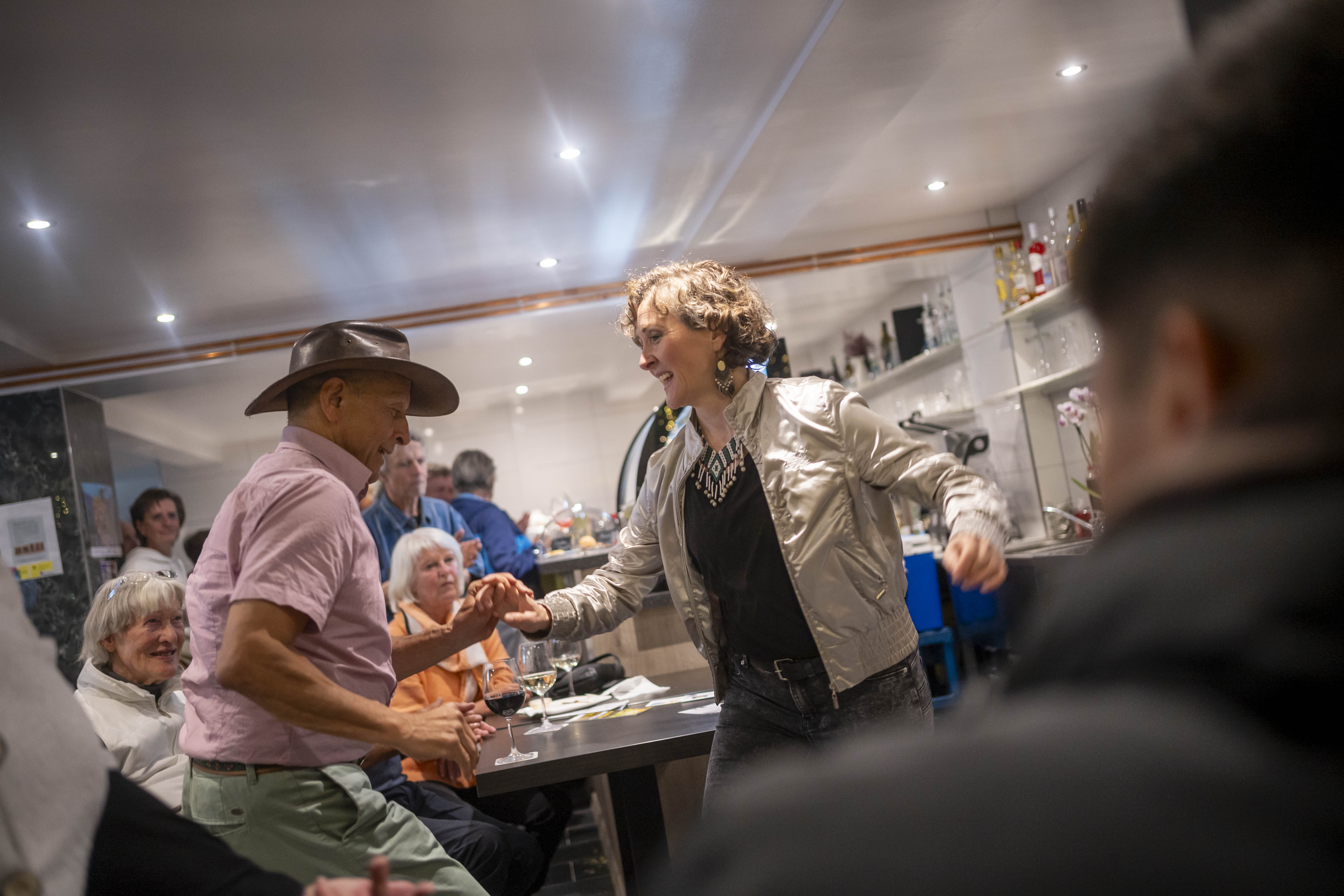 Besonders ausgelassen ging es im Café Hoa zu, das mit lateinamerikanischen und weltmusikalischen Klängen gleich drei Highlights setzte. Gato de Sánchez eröffnete den Abend mit feurigen Flamenco- und Latin-Gitarren. RIOyMAR folgte mit elektronisch unterlegter Cumbia und nahm das Publikum mit auf eine Reise zum Amazonas. Den Abschluss bildete Alex López, der mit seiner Energie und Stimme echtes Latino-Partyfeeling in den Raum brachte. Es wurde getanzt, geklatscht und gesungen, drinnen wie draußen.