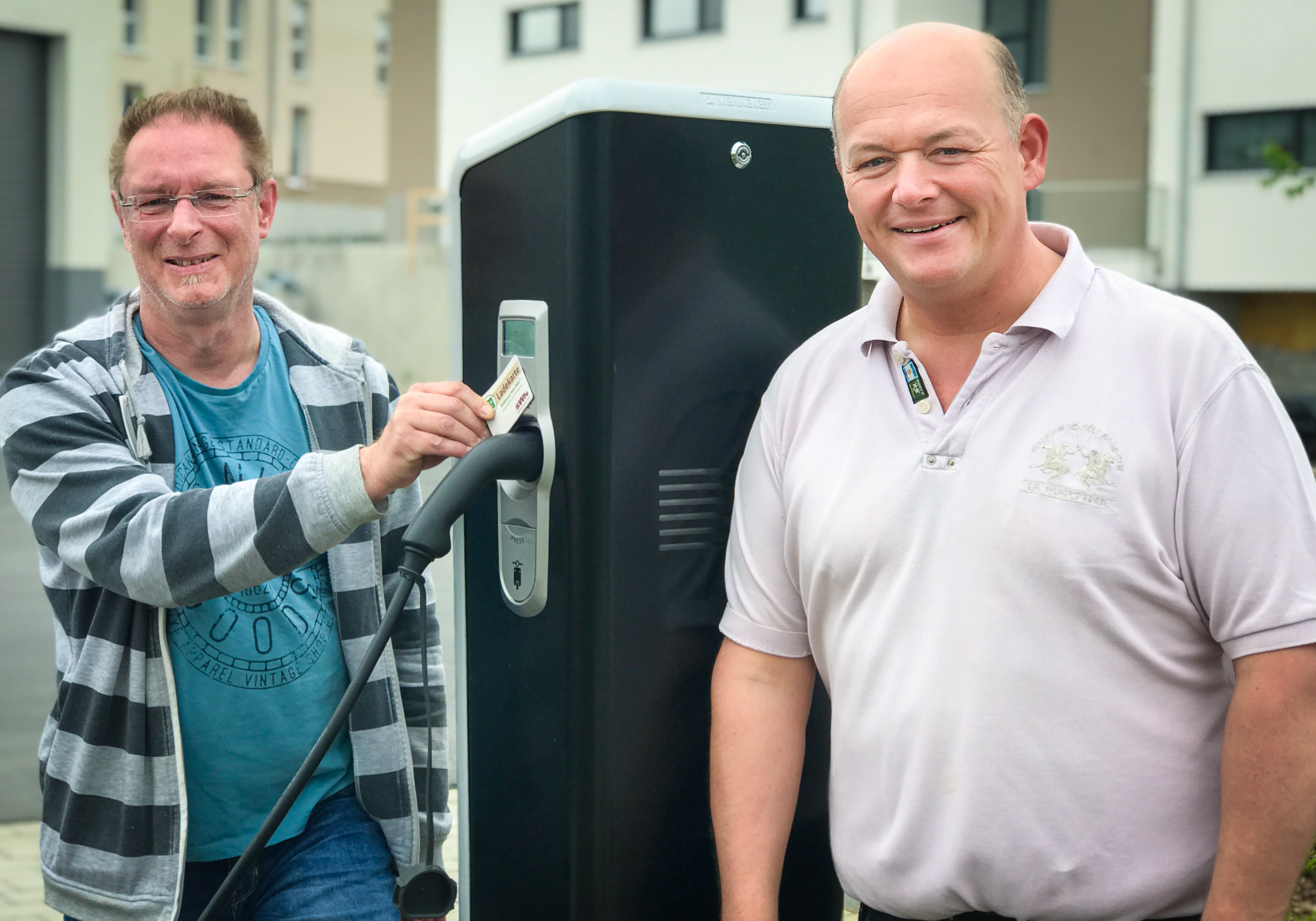Die Säule hat eine Ladeleistung von bis zu 22 Kilowatt (kW) und unterstützt alle aktuellen Elektro-Fahrzeuge. Nutzer legen nur ihre Lade-Karte (von den Stadtwerken oder passend zum Auto) auf eine Schaltfläche, stecken ihr Ladekabel ein und kommen nach dem Einkauf zum voll aufgeladenen Fahrzeug zurück. „Innerhalb von 30 Minuten sind manche Batterien ausreichend aufgeladen“, sagt Schnabel.