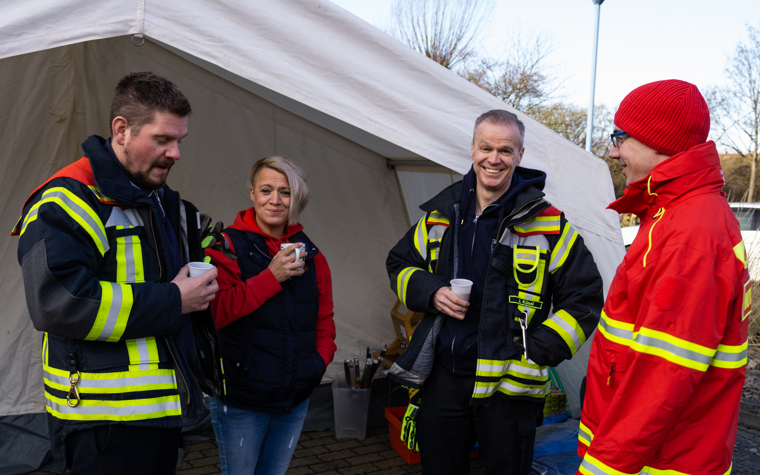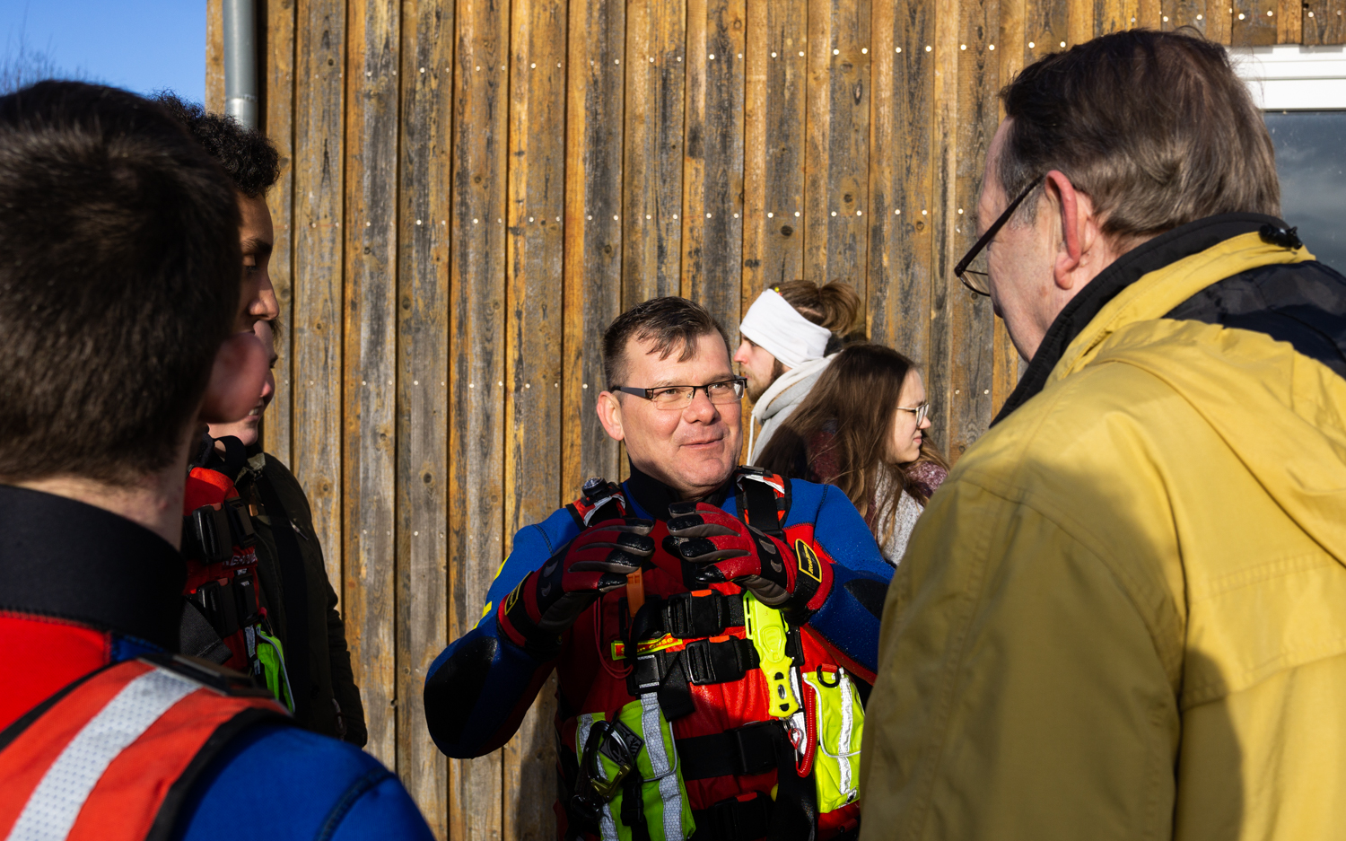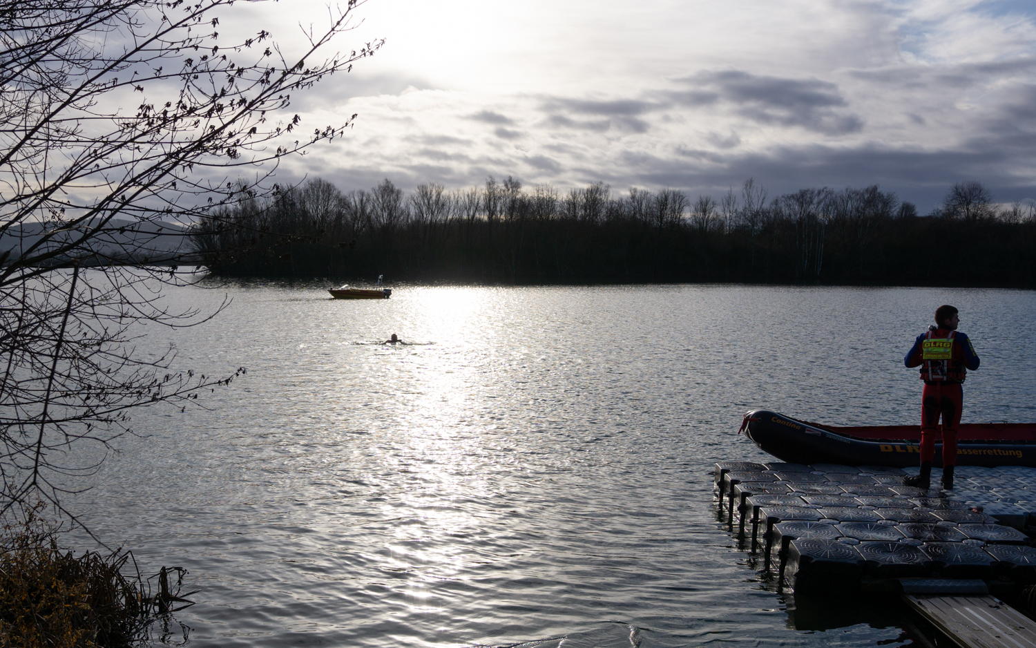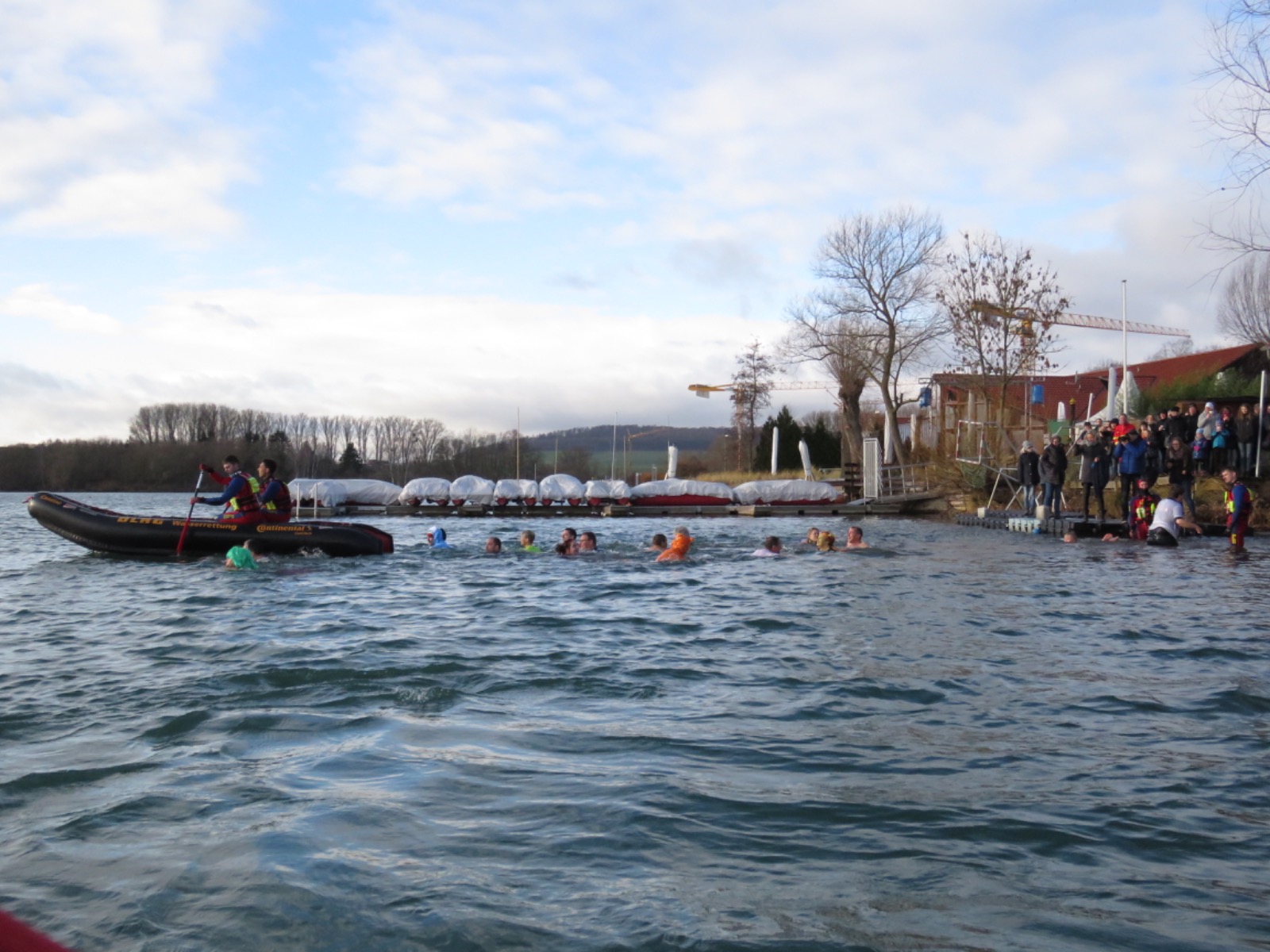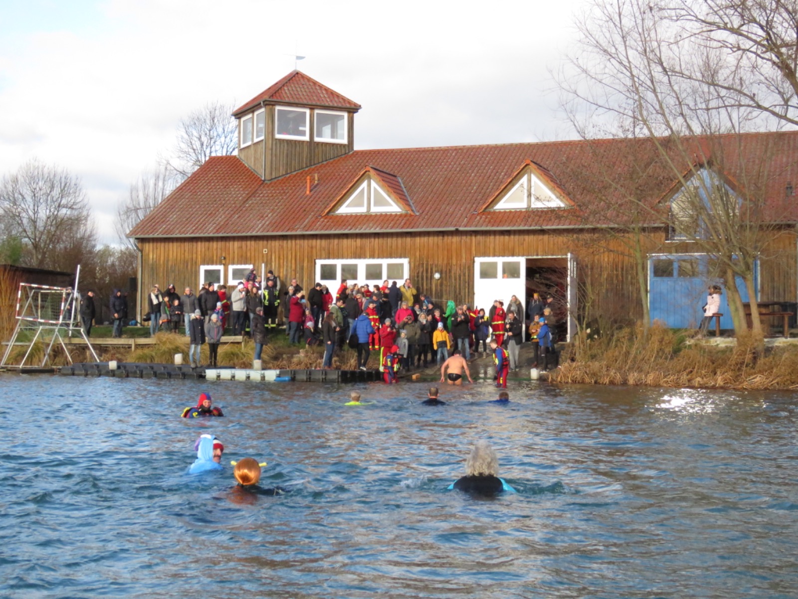 Auch nach dem kurzen Ausflug in den kalten Freizeitsee blieben viele Schwimmer und Besucher am Bootshaus, genossen warmen Kaffee, Kuchen und frisches vom Grill. Wer wollte, ließ sich durch das Zuhause der DLRG-Ortsgruppe führen und über die ehrenamtliche Arbeit informieren. 30 Helfer waren selbst vor Ort, um die Veranstaltung durchzuführen.