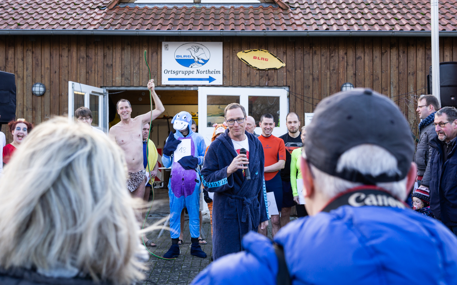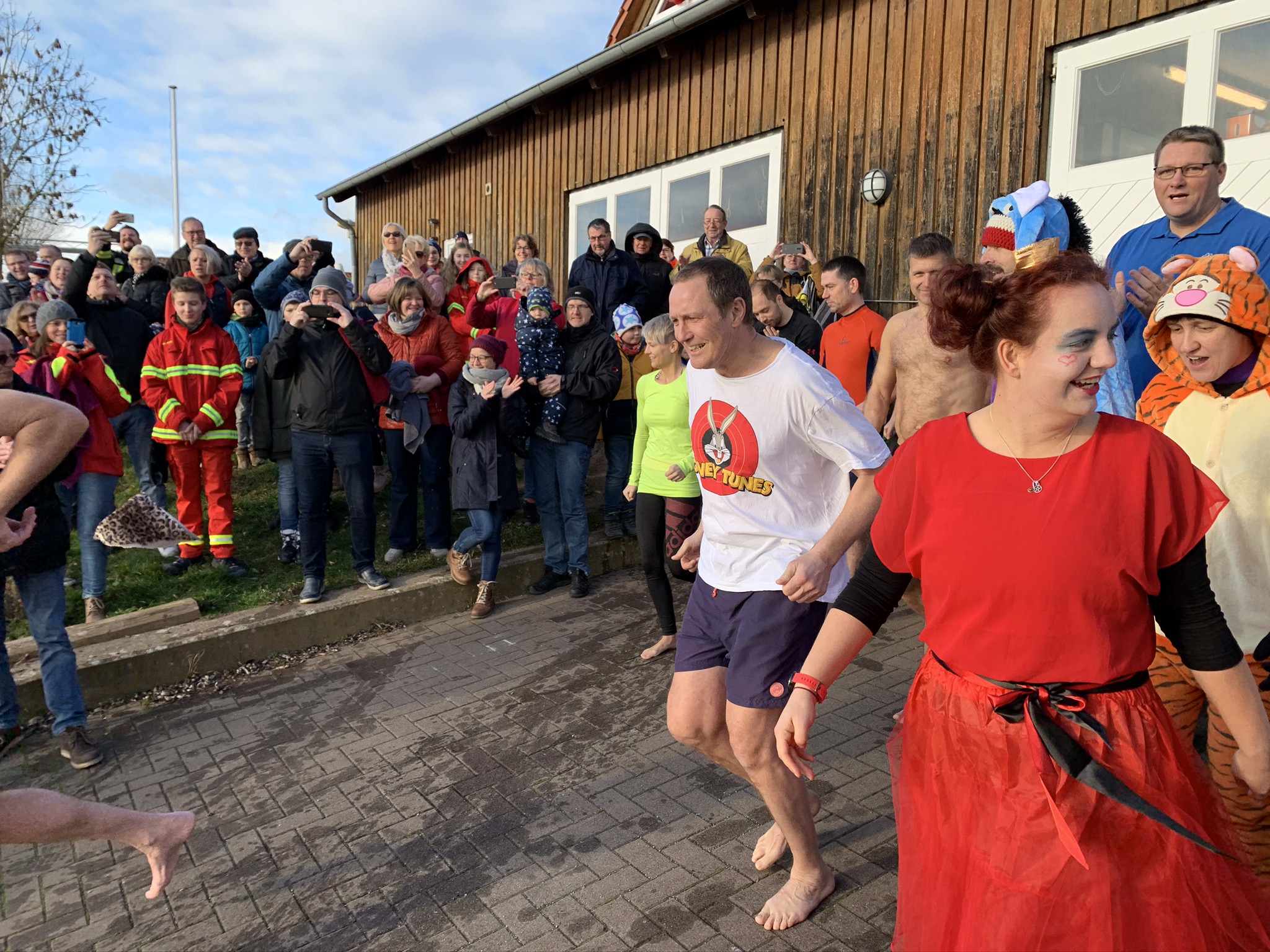 Im dritten Jahr lockt das Neujahrsschwimmen der DLRG wieder kältefeste Northeimer an den Freizeitsee. Egal ob im Kostüm oder nur im Badeanzug: gefroren haben alle.