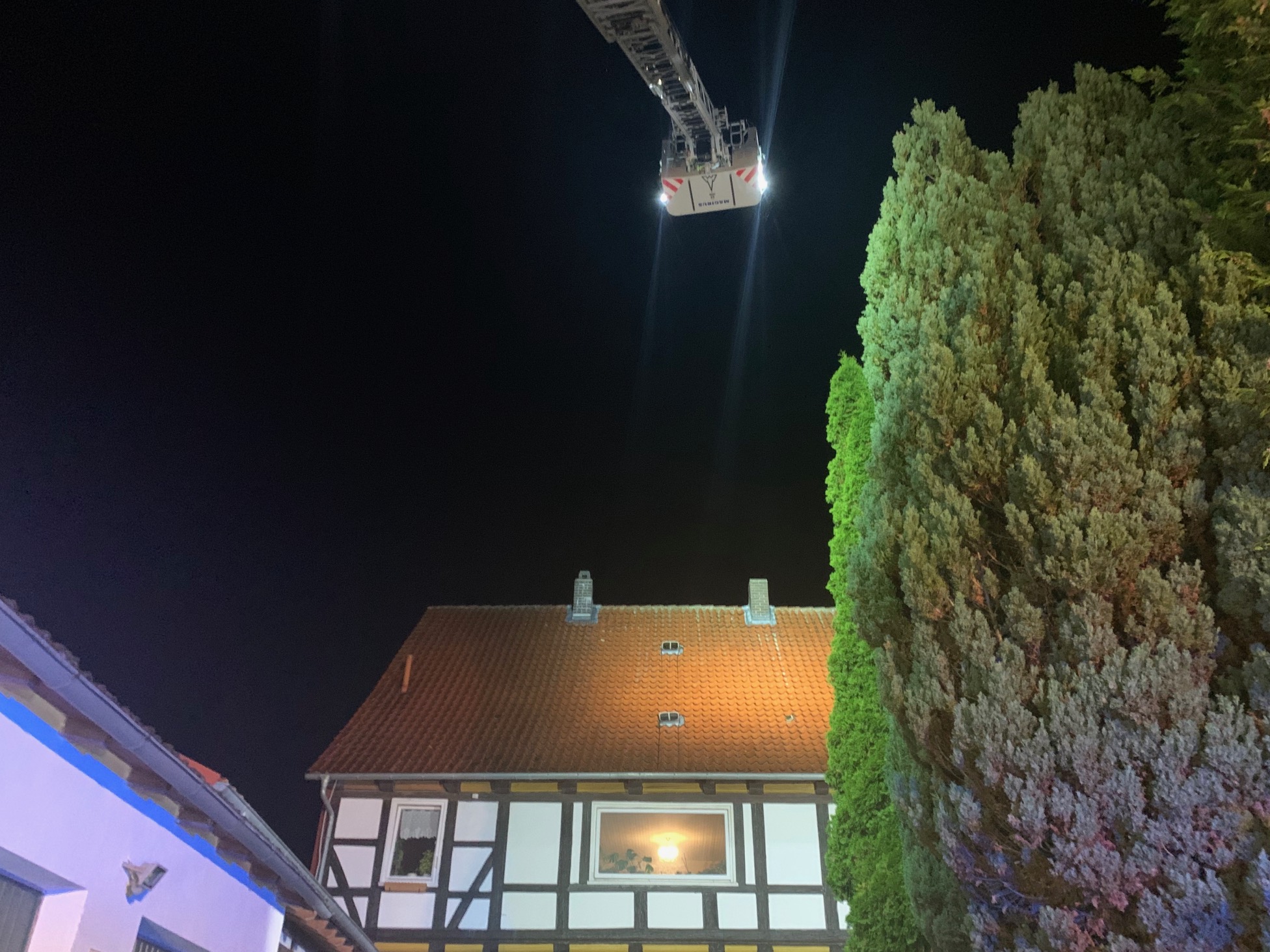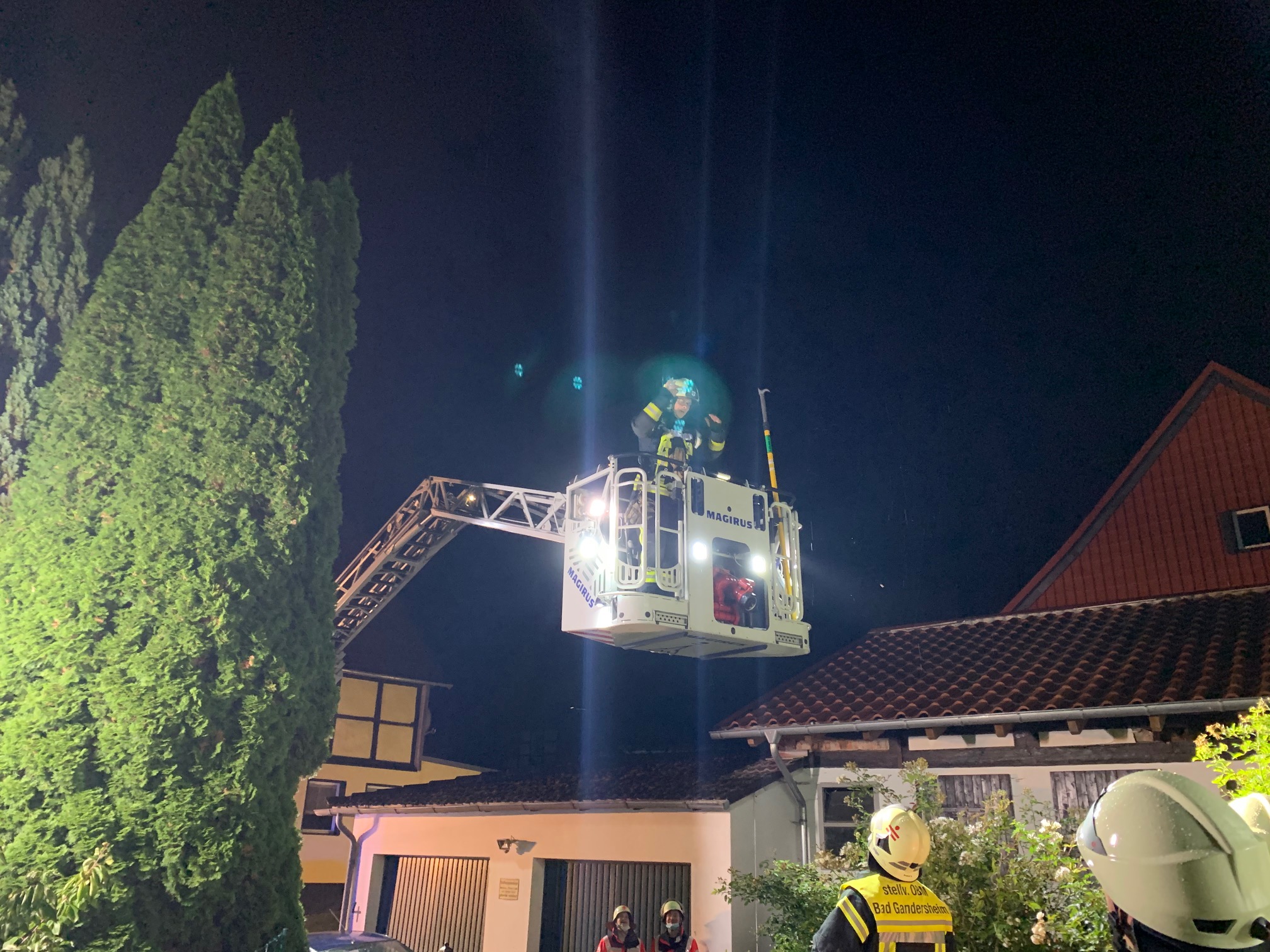 Rund 80 Kräfte von Feuerwehr, Rettungsdienst und Polizei waren im Einsatz. Sie konnten laut eigenen Angaben verhindern, dass das Feuer von der Fassade auf den Dachstuhl übergreift. Laut Polizei weckten die Hunde des Hauses die Hausbesitzer. Die fanden das Feuer im Bereich der Küche und versuchten noch selbst, es zu löschen, was laut Feuerwehr und Polizei aber nicht gelang.
