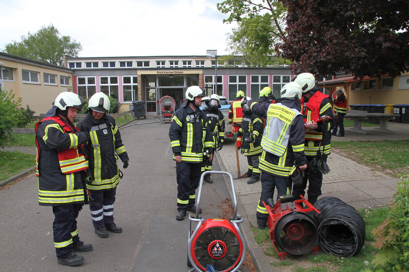 Im Einsatz waren rund 95 Rettungskräfte. Laut Landkreis Notheim fällt der Unterricht am 7. Mai komplett aus.Am Gebäude selbst entstand laut Polizei kein Schaden. Nach ersten Schätzungen beläuft sich der Gesamtschaden auf 5000 Euro.