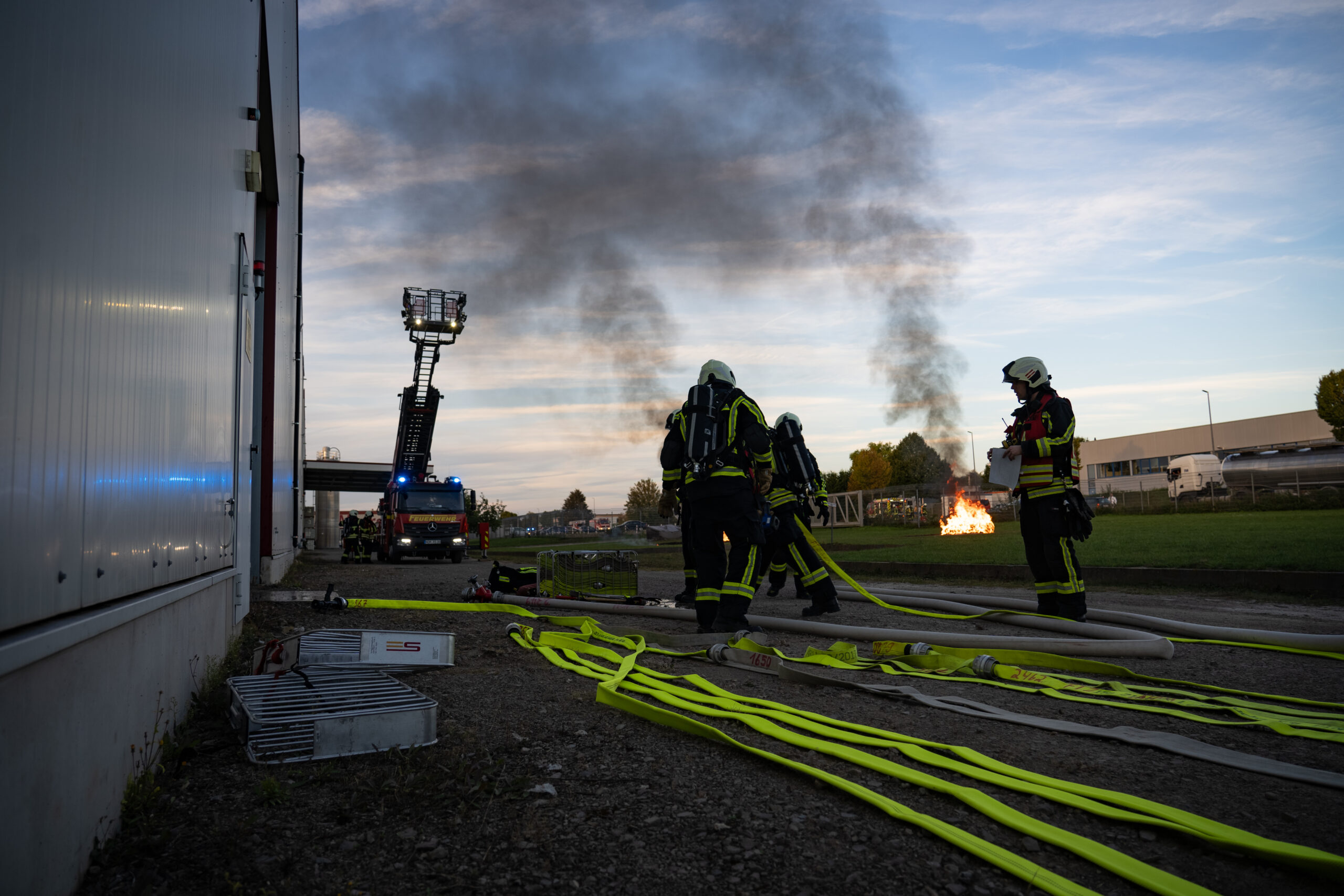 In großen Hochregalen werden 30 Meter lange Blöcke aus dem Schaummaterial gelagert, welche sich bei fehlerhafter Herstellung selbst entzünden kann. Eine solche Lage wurde auch zur Übung angenommen: Eine stark verrauchte Lagerhalle und ein vermisster Mitarbeiter.