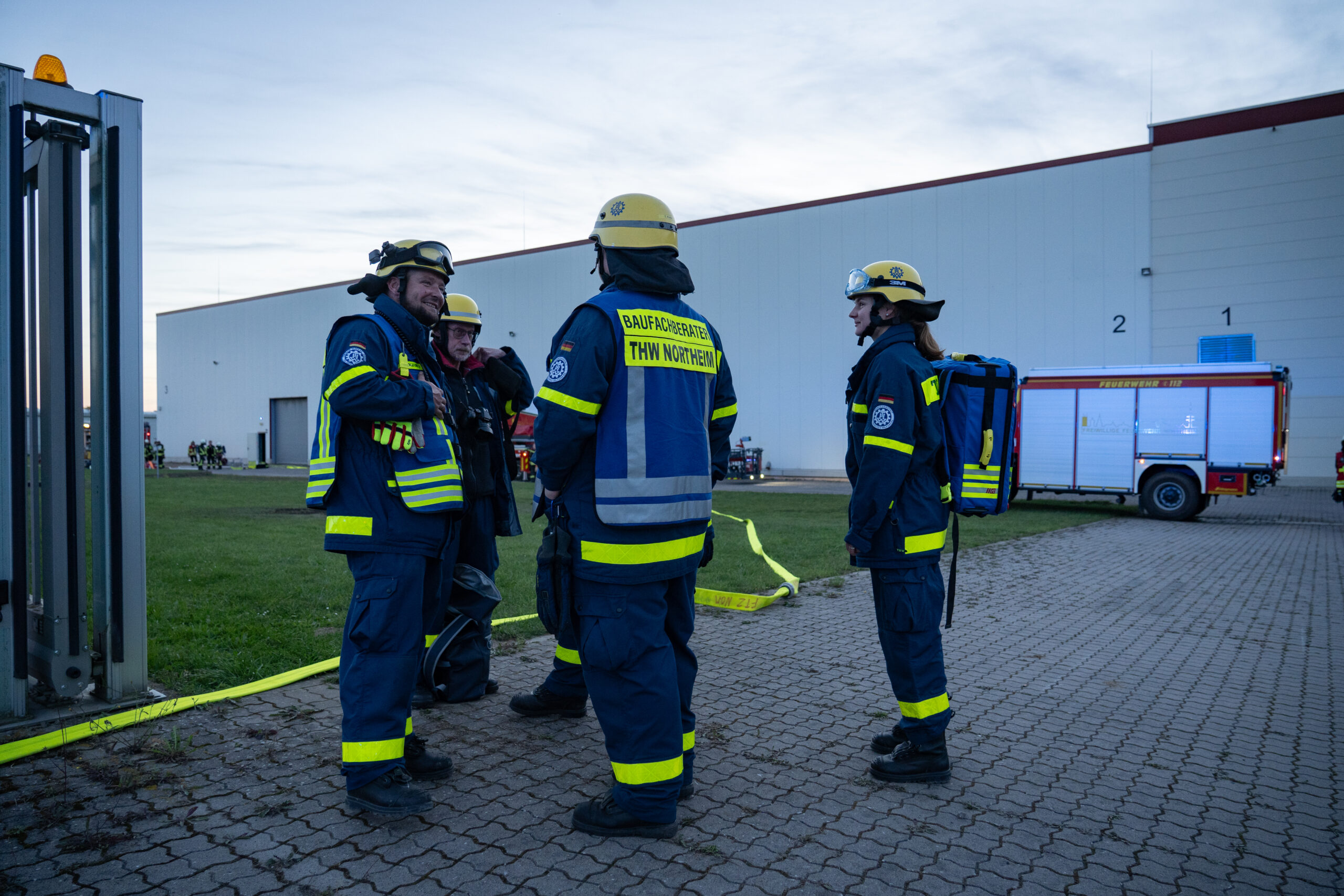 Rund 100 Kräfte der Feuerwehren und des Technischen Hilfswerks nahmen an der Übung teil. Die Freiwilligen Feuerwehren Berwartshausen und Hollenstedt haben außerdem ein Reinigungskonzept für diejenigen Rettungskräfte zur Verfügung gestellt, die im Ernstfall mit giftigen Rauch in Berührung kommen.