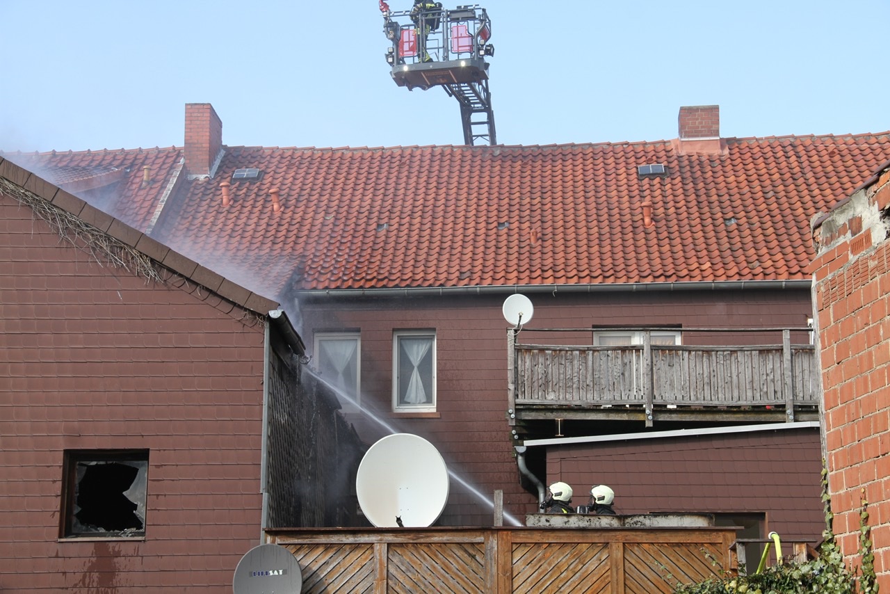 Im Einsatz waren neben der Northeimer Feuerwehr auch Kräfte aus Langenholtensen, Denkershausen, Lagershausen und Edesheim. Zusätzlich unterstützte die Feuerwehr aus Einbeck mit einer weiteren, kompakten Drehleiter im Hinterhof.