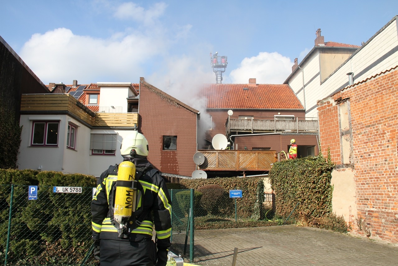 Großeinsatz der Feuerwehr an Donnerstagnachmittag in Northeim. In einem Mehrfamilienhaus an der Bahnhofstraße nahe der Innenstadt brannte es in einer Wohnung. Das Feuer griff zudem auf eine Zwischendecke über, was die Lage für die Einsatzkräfte kompliziert machte.