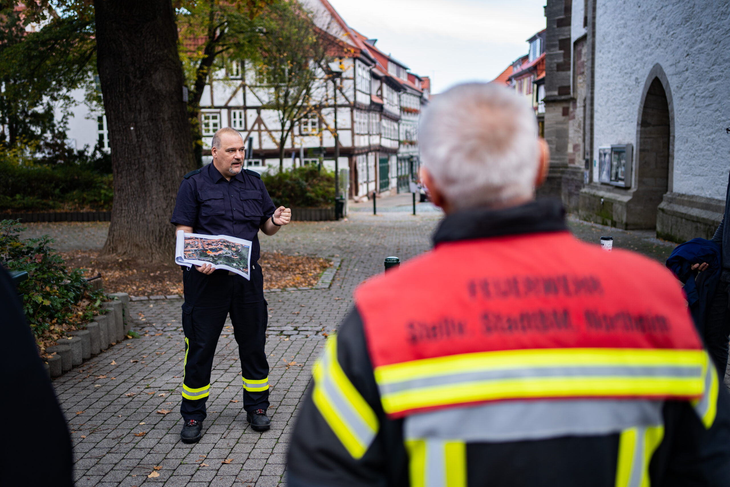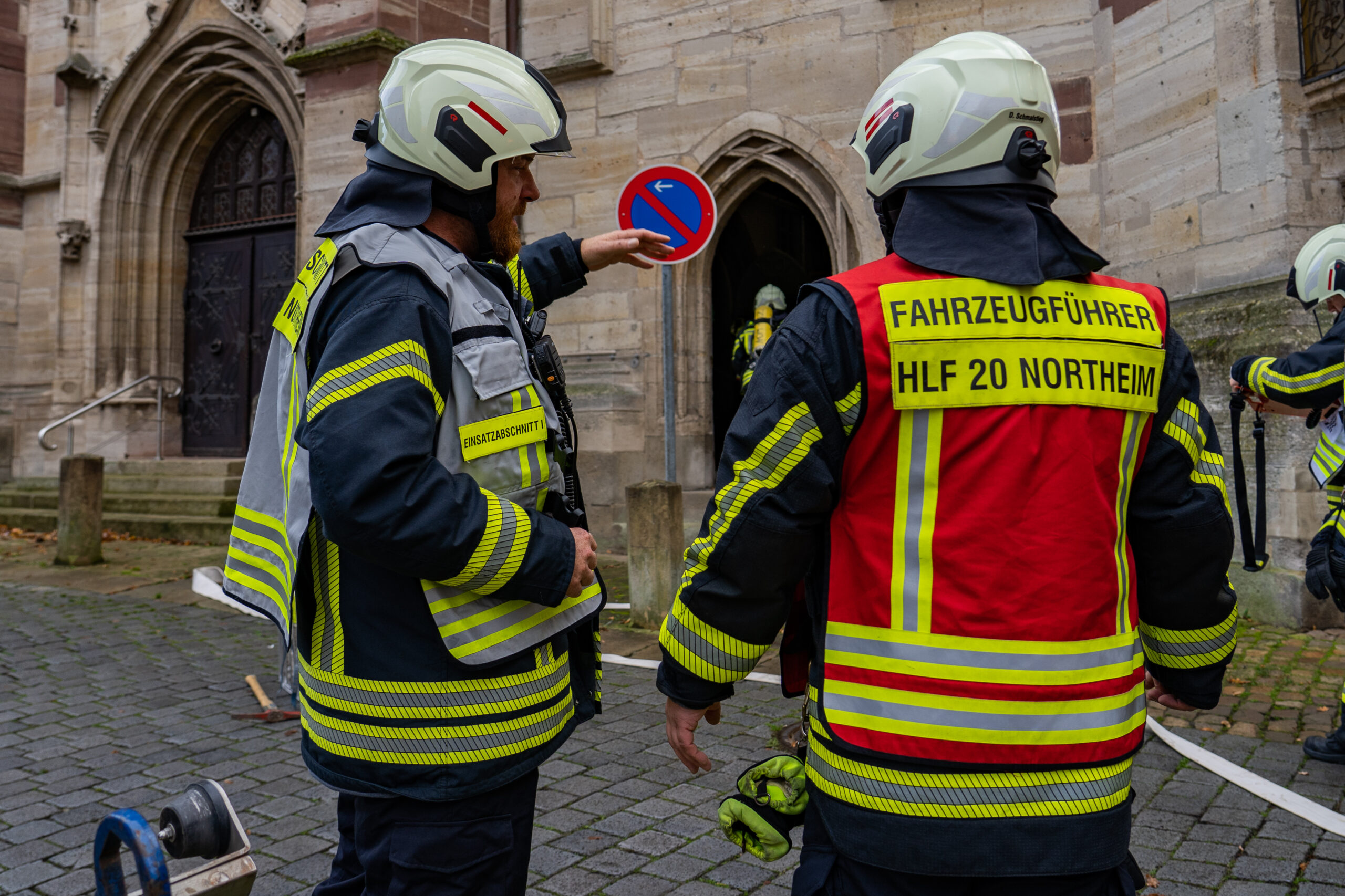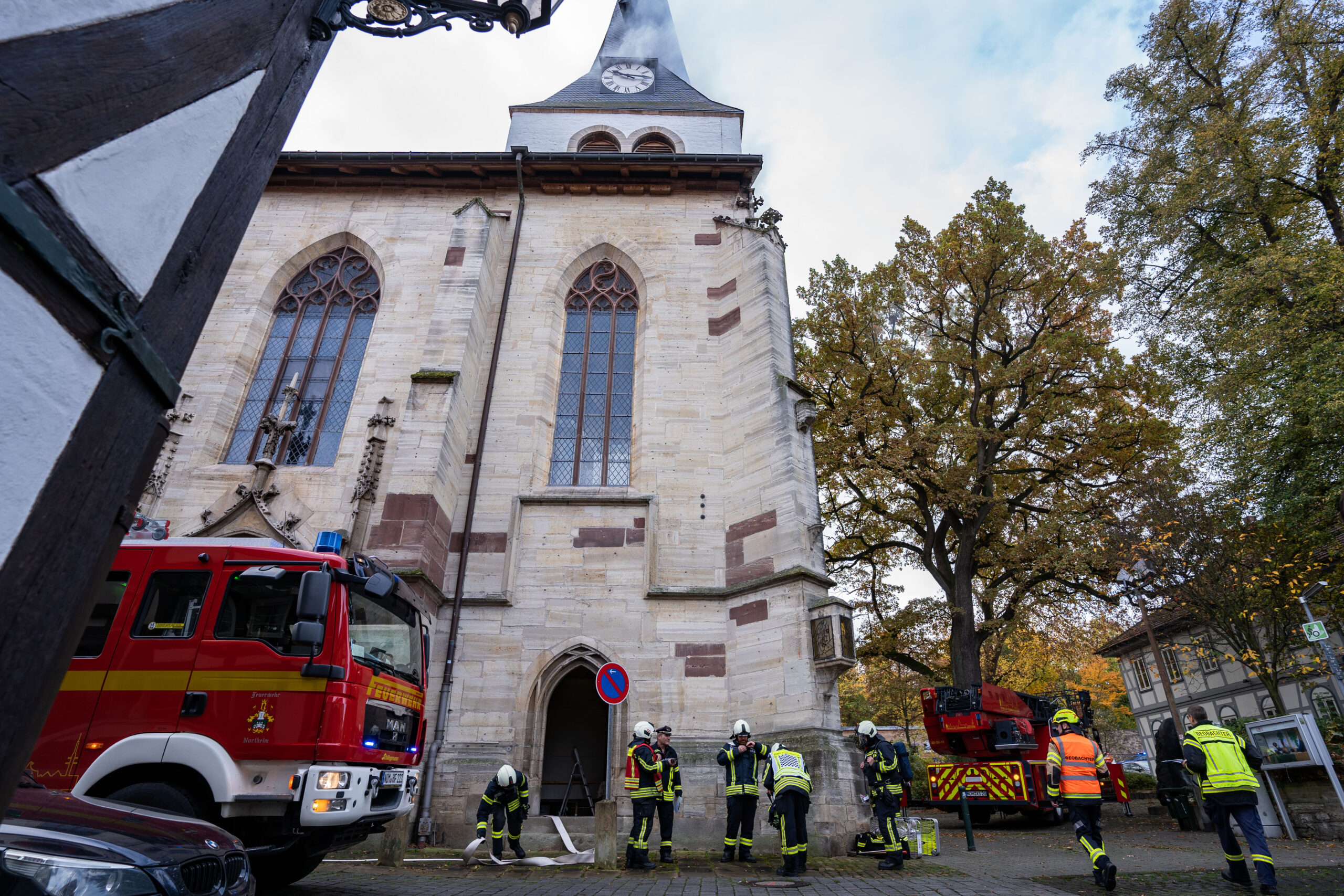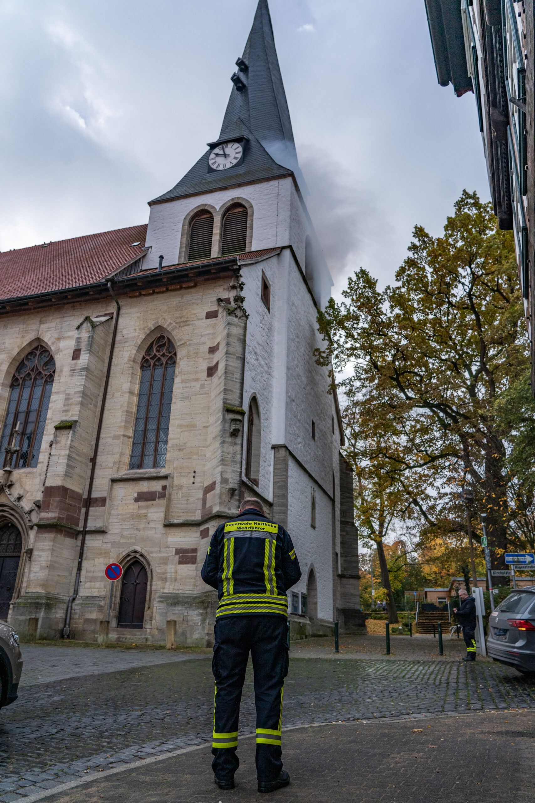 Für die Northeimer Retter, allen voran die Freiwillige Feuerwehr, war es gleich aus mehreren Gründen eine besondere Übung. Zunächst war es eine der seltenen Übung seit der Corona-Pandemie in dieser Größenordnung. Ortsbrandmeister Rouven Goldberg hat dazu mit seinen Kameraden und in Absprache mit Stadt- und Kreisbrandmeister seit einigen Wochen diese Übung vorbereitet. Dazu sei er auch auf die Kirchengemeinde zugegangen, wo er durch sprichwörtlich offene Türen empfangen wurde.