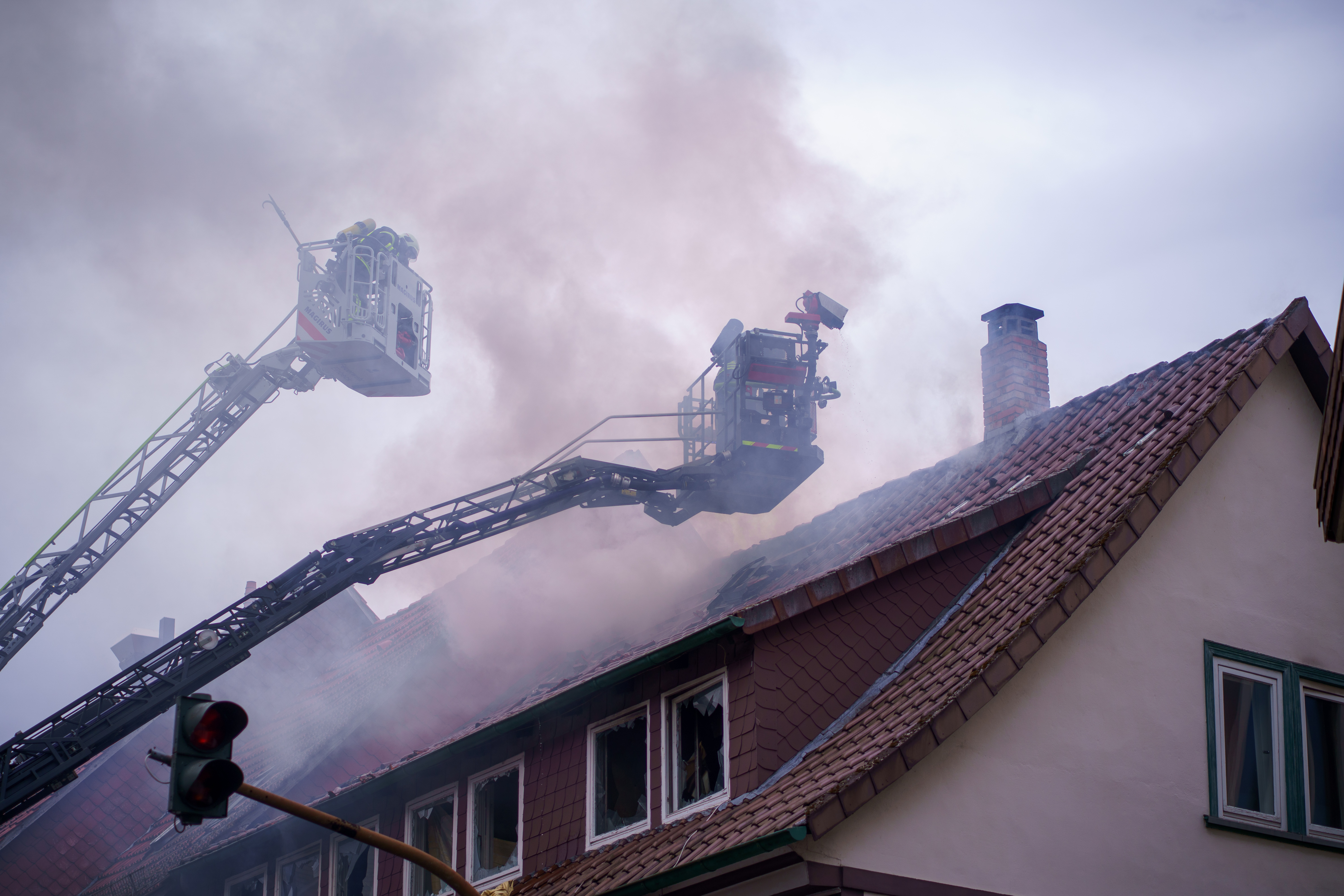 Noch bis in den späten Abend ziehen sich die Nachlöscharbeiten hin. Immer wieder loderten kleinere Glutnester auf, die abgelöscht werden mussten. Die Feuerwehr war mit mehreren Drehleitern und Atemschutztrupps im Einsatz. Die Straße Am Münster sowie angrenzende Bereiche sind am Abend weiträumig abgesperrt.