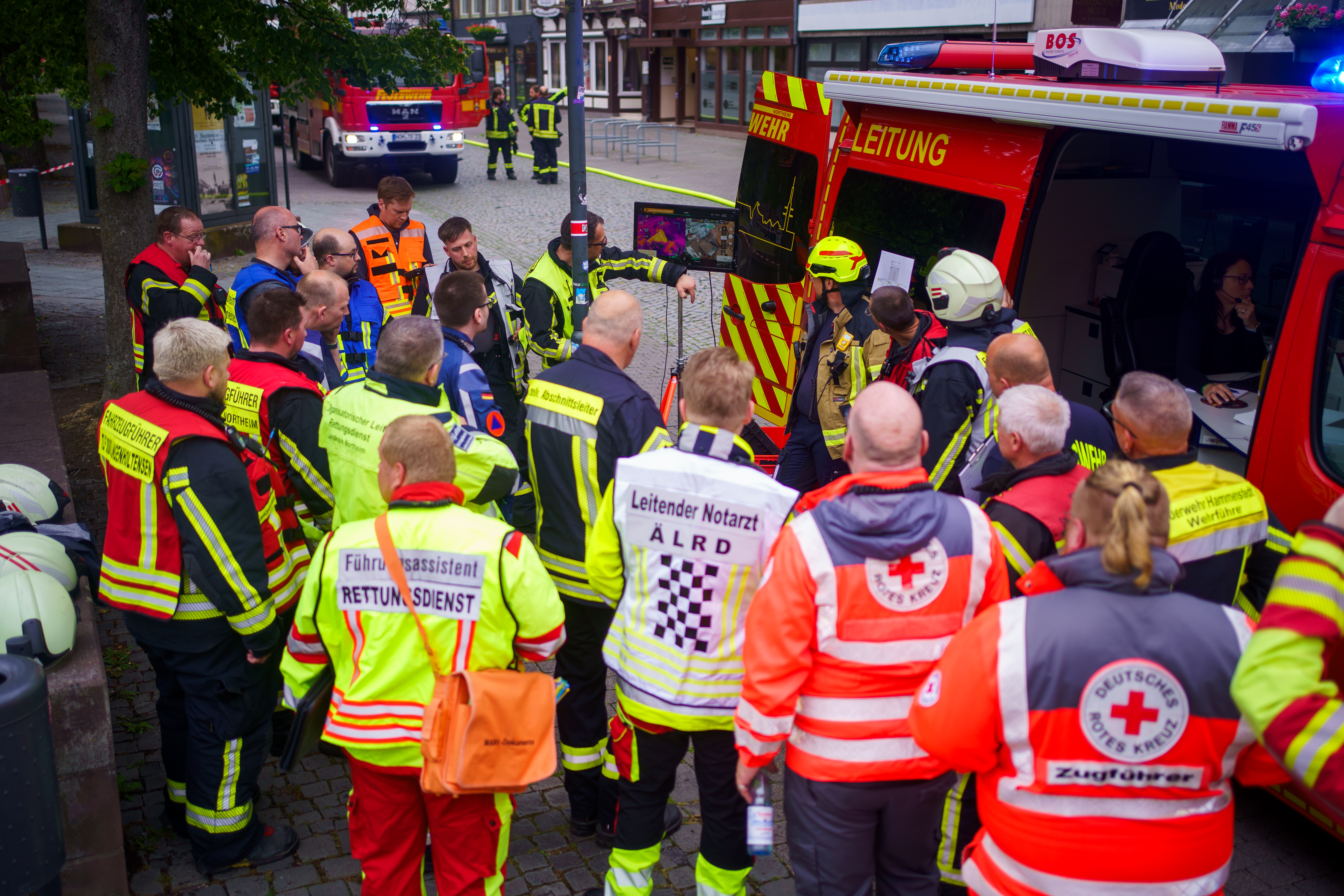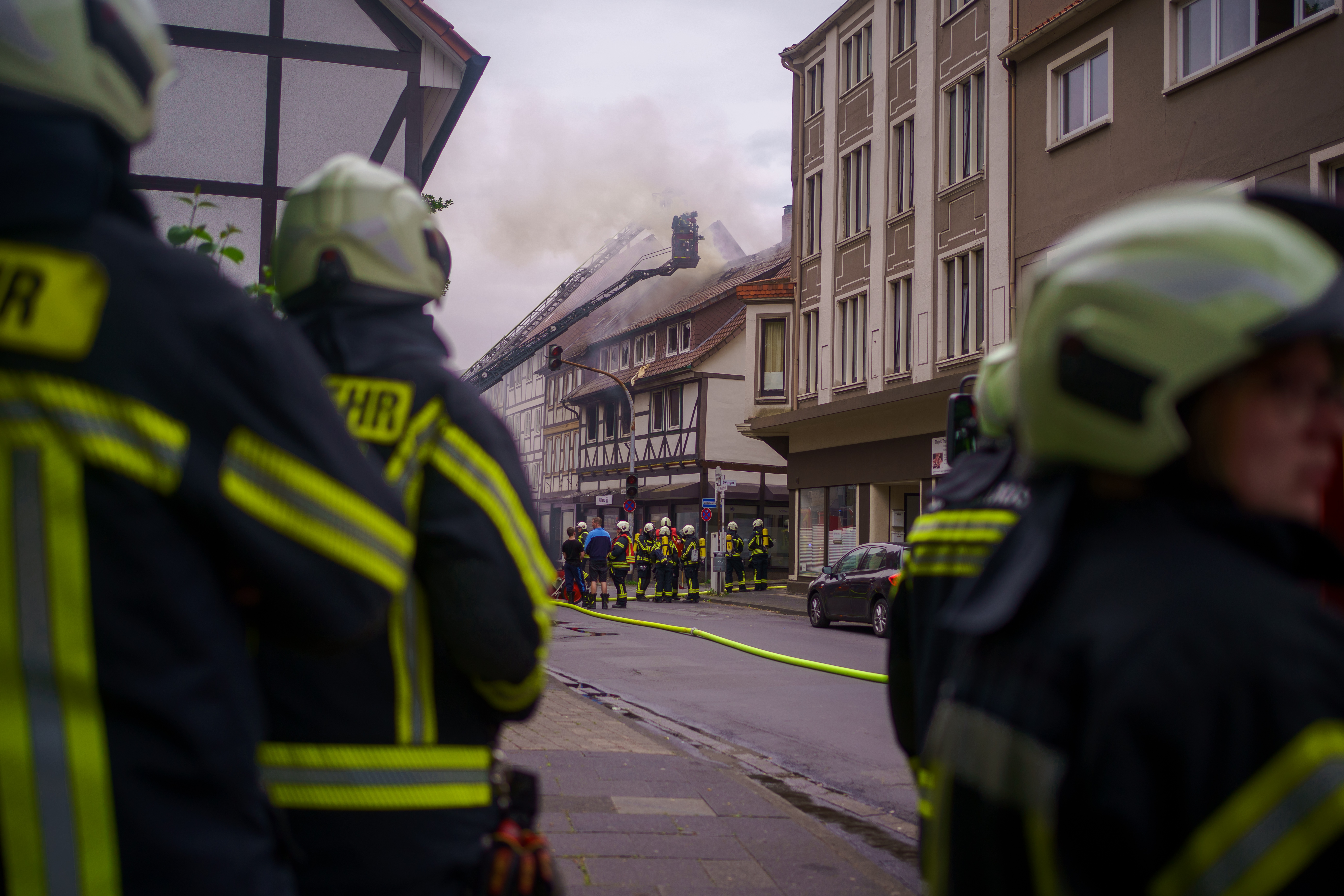 Donnerstagnachmittag kommt es in der Northeimer Innenstadt zu einem Großeinsatz der Rettungskräfte. In der Straße Am Münster brennt ein Mehrfamilienhaus in Altbauweise. Durch die enge Bebauung griff das Feuer auch auf ein Nebengebäude über. Sieben Menschen wurden leicht verletzt, darunter fünf sind laut Polizei Kinder.