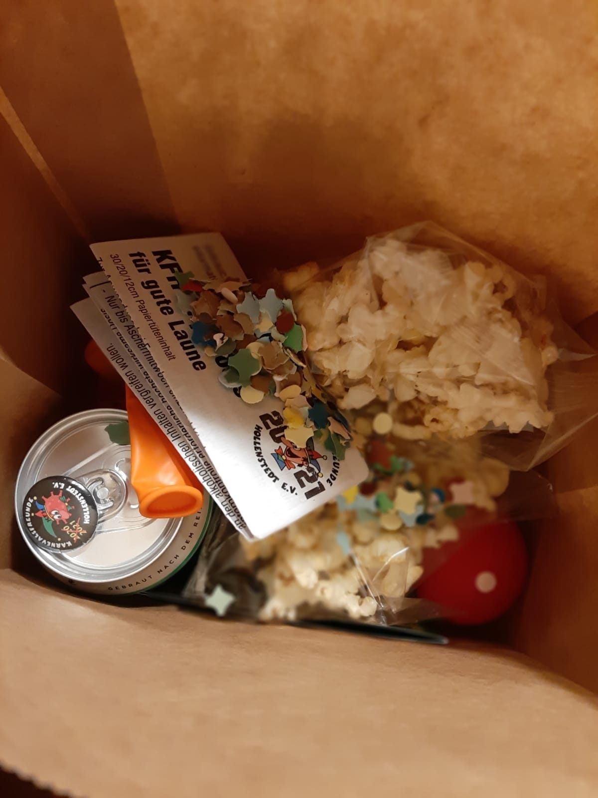 „Aber wir wären nicht wir, wenn wir uns nicht trotzdem für unsere Mitglieder was überlegt hätten“, schreibt der Verein auf seiner Facebook-Seite. In den Paketen sei „alles, was ihr für eine Stay-at-home-Karnevalsparty benötigt.“