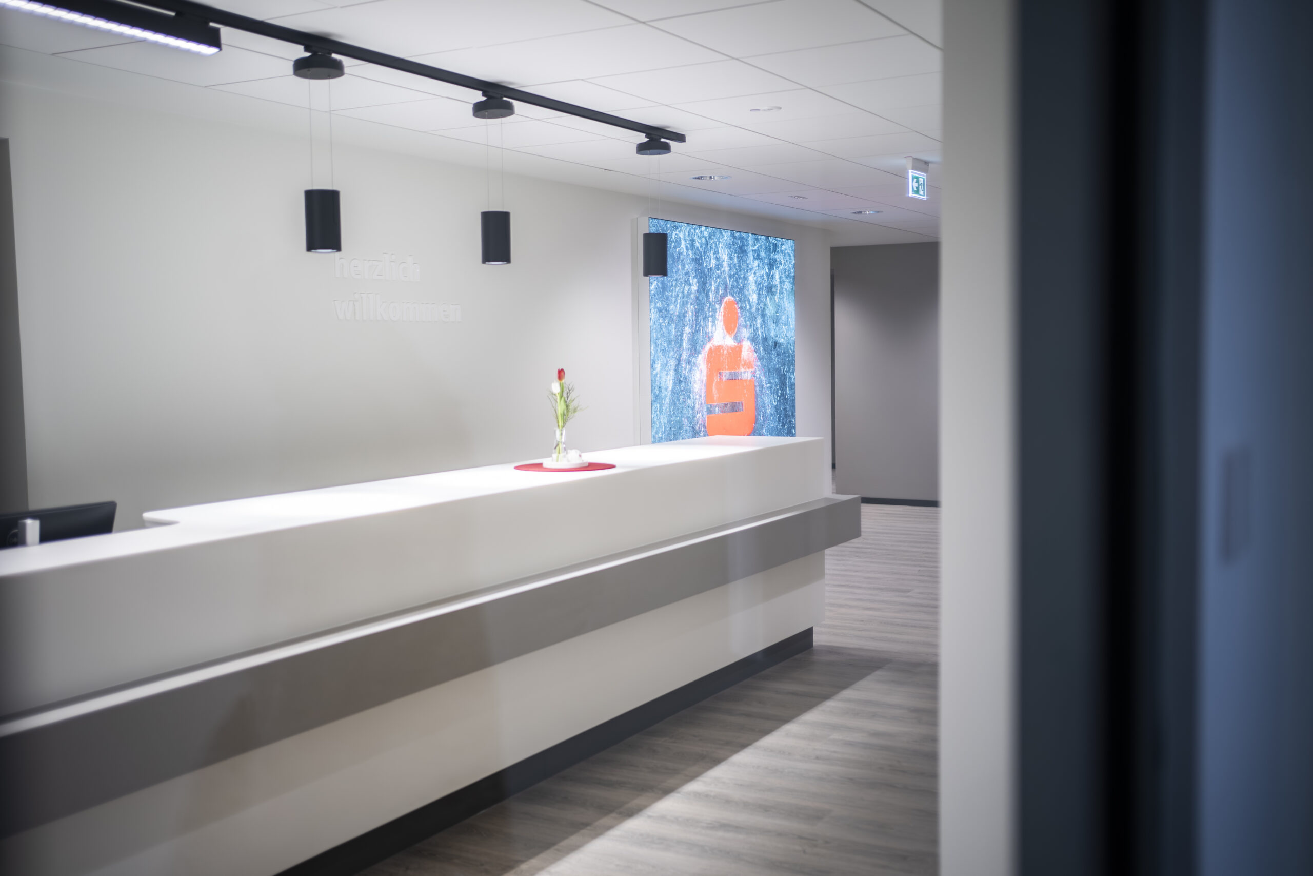 Das neue Raumkonzept in der Hauptstelle bietet einen fließenden Übergang zwischen digitaler und persönlicher Kommunikation mit vielen Vorteilen für die Kunden. So lässt die zeitgemäße Banktech- nik in den 12 individuell ausgestatteten Beratungszimmern beispielsweise Experten-Zuschaltungen und weitere digitale Mehrwerte zu. Das Raumkonzept berücksichtigt das berechtigte Kundeninteresse, die Sparkasse auf vielen Kommunikationswegen zu erreichen, setzt aber auch optisch einige moderne Reize mit Graffiti sowie Silhouetten und Bildmotiven aus der Region, die den neuen, diskre- ten Beratungsräumen Namen geben.