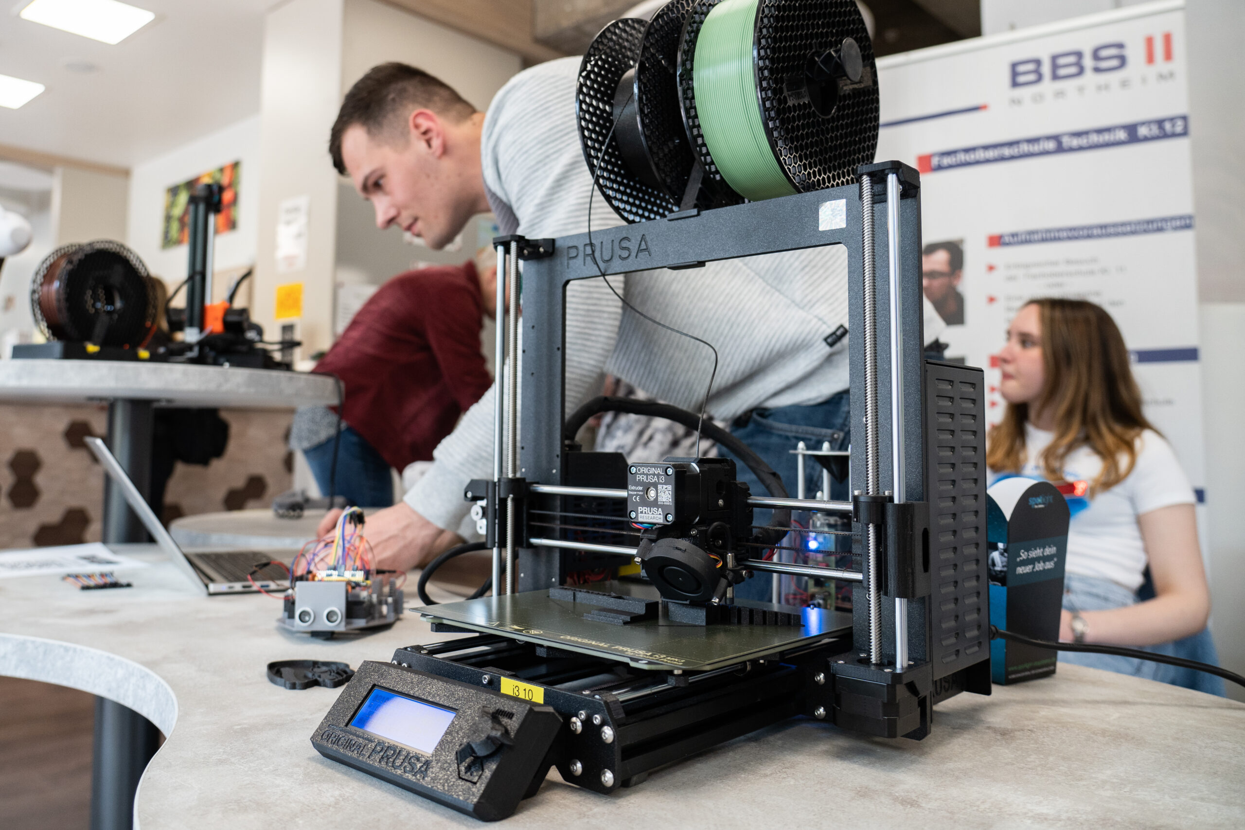 Denn es sei laut BBSII-Schulleiterin Ines Puschmann die einzige Gelegenheit, „dass sich künftige Auszubildende mit den Betrieben auf Augenhöhe treffen können.“ Das sind Gespräche mit Auszubildenden und Ausbildern, Mitarbeitern – vor allem aber das Sehen und Fühlen und Erleben der eigentlichen Arbeit. Dazu hatten die Betriebe zum Teil groß aufgefahren: W.Schnittger brachte eine 70 Meter hohe Hebebühne samt Kran mit, die Kreisfeuerwehr eine Löschsimmulation in virtueller Realität und Industriebetriebe große Computer und 3D-Drucker. Das Handwerk und die Landwirtschaft präsentierten sich ebenfalls mit großen Maschinen, großen und kleinen Tieren und jeder Menge Handarbeit.