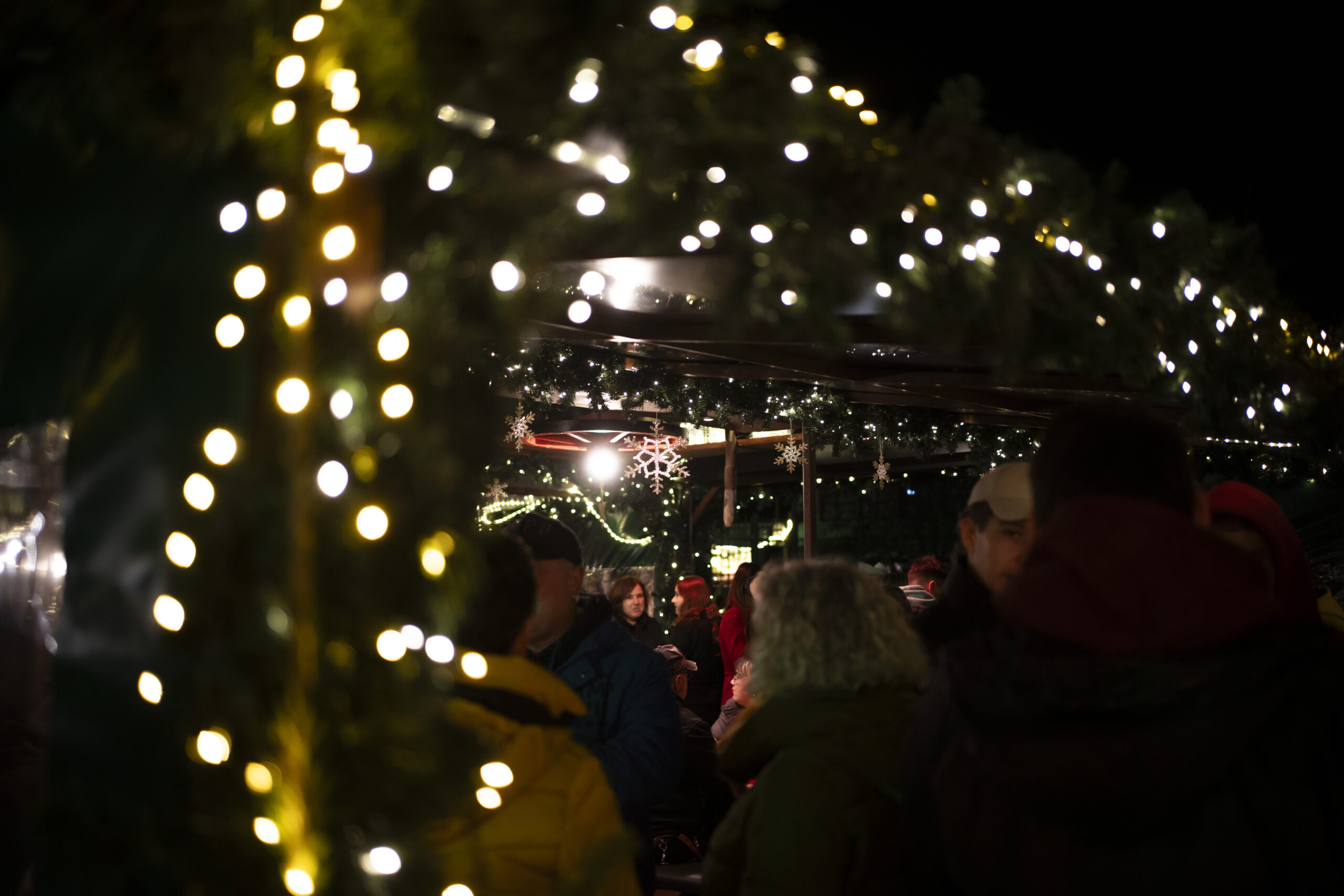 Zwischen Fachwerk, Lichtertannen und Weihnachtspyramide bewegt sich täglich ab 11 Uhr ein stetiger Strom aus Familien, Freundeskreisen und Kollegen durch das Winterdorf. Die festlich dekorierten Hütten bieten Glühwein, Feuerzangenbowle, regionale Spezialitäten, Kunsthandwerk und Selbstgemachtes. Unter den überdachten Sitzbereichen entstehen Gespräche, für die sonst im Alltag oft keine Zeit bleibt.