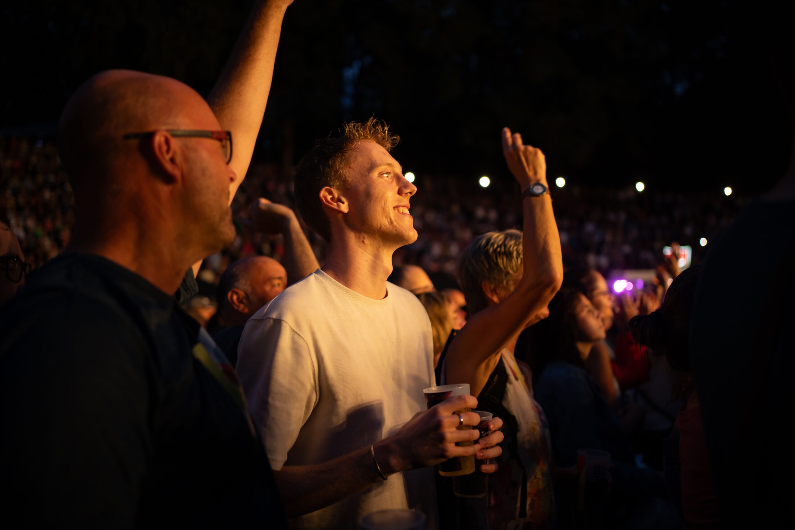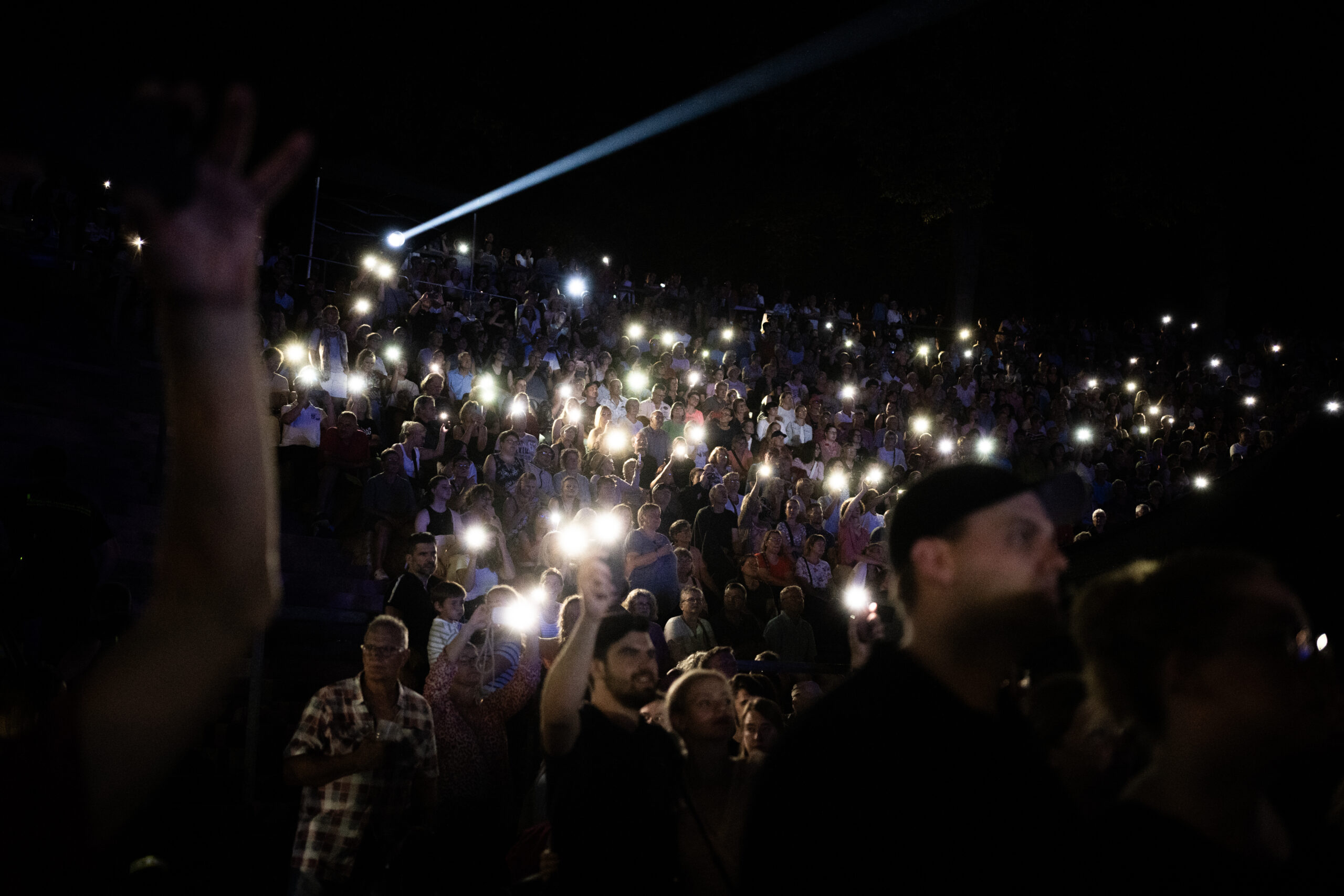 Die Waldbühne sei ein besonderer Ort, den es so nur wenige Male in Deutschland gebe, schwärmt Oerding. Obwohl tausende Menschen im Rund und auf den Rängen mitsingen, mitfeiern, genießen und schwärmen, „sind sich alle so nah“, sagt der Musiker. Auch deswegen bat der die fast 8.000 seiner alten und neuen Freunde, sich ihrem Sitznachbarn kurz vorzustellen. Schließlich verbringen sie heute fast drei Stunden miteinander.