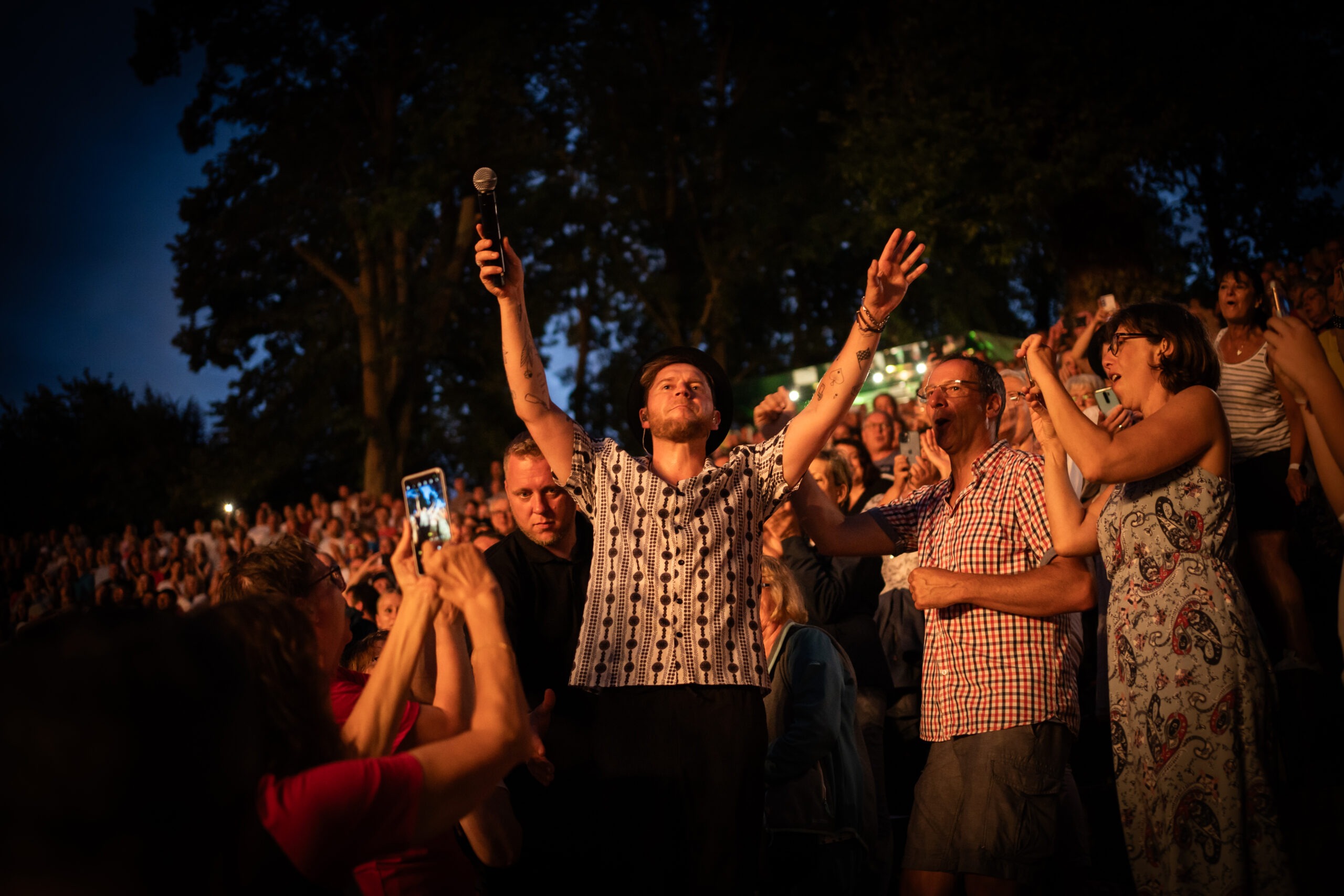 Er war der Erste, der nach mehr als einem Jahrzehnt Stille wieder Stimmen und Musik durch das Rund der Waldbühne hallen ließ, als er 2022 auf selbige trag. Schon damals schien es Liebe auf den ersten Blick gewesen zu sein. Denn er versprach: „Northeim, wir kommen wieder.“ Dass das schon knapp zwölf Monate später der Fall ist, hat ihn wohl auch selbst überrascht. Aber so ist das wohl mit der Liebe – denn es passierte erneut. Und dabei ging er diesmal sogar einen Schritt weiter. „Das ist etwas, ein Leuchtfeuer, das es jedes Jahr geben muss“, fällt es ihm über den Mund aus dem Herzen ins Mikrofon. „Oder zumindest regelmäßig“, fügt er hinzu, mit Blickkontakt zum Veranstalter.