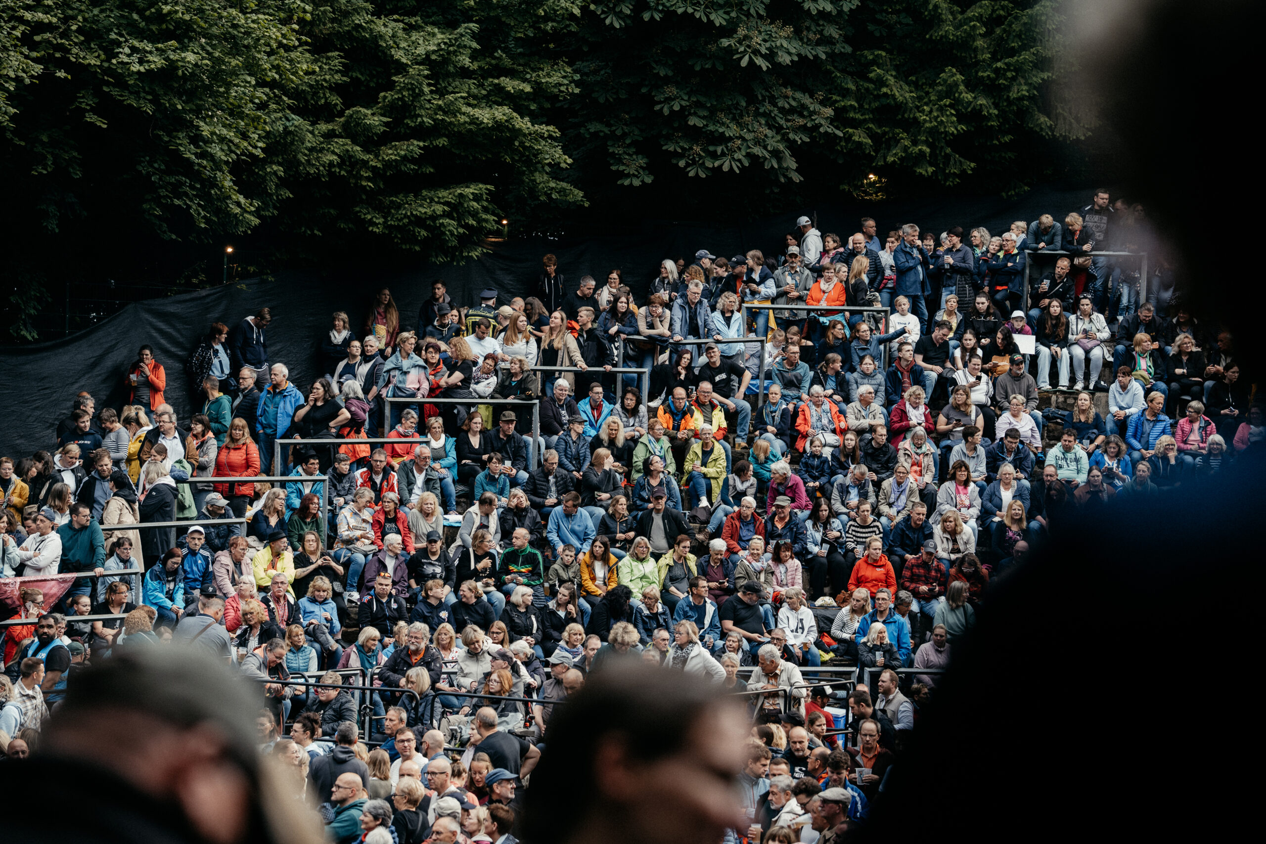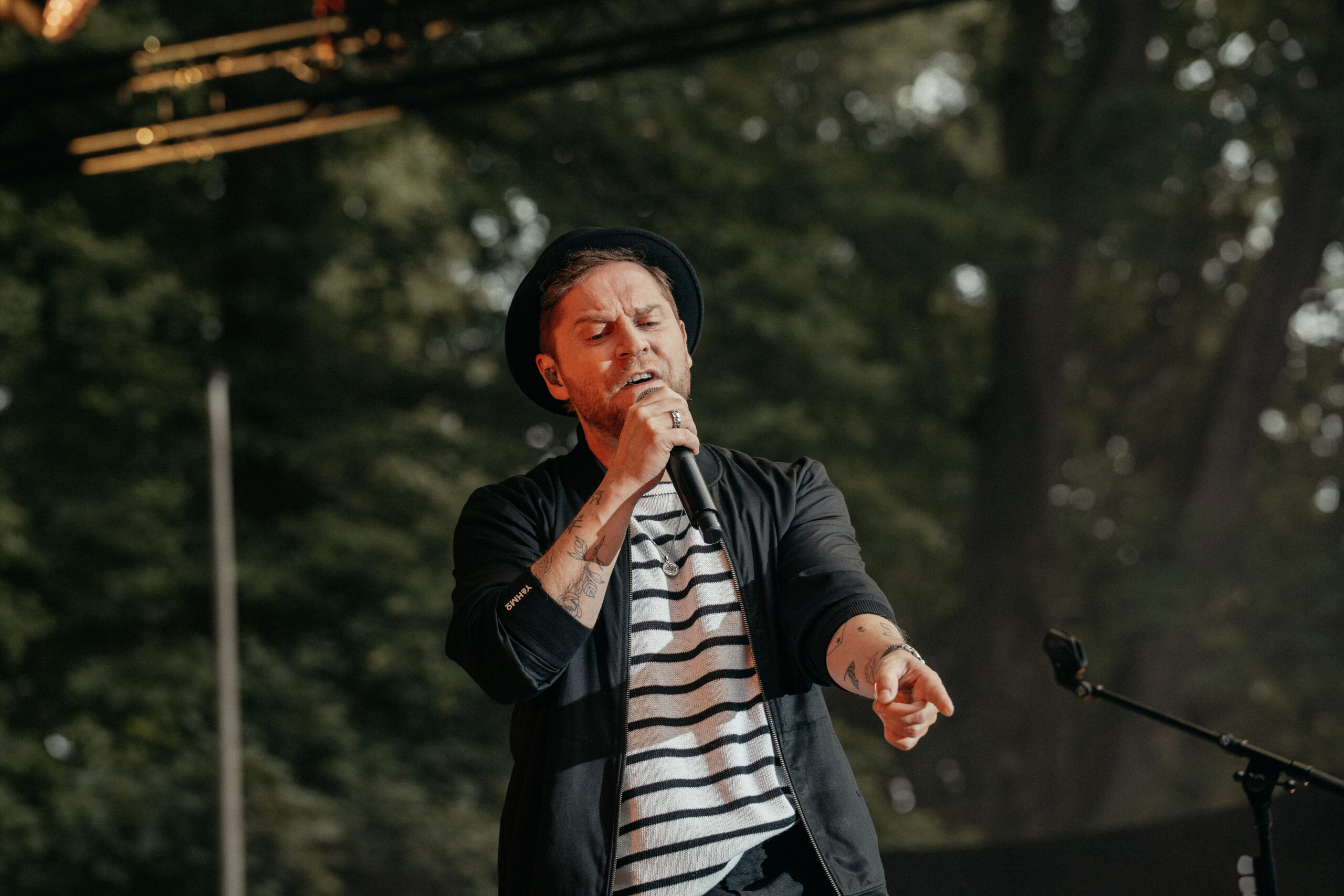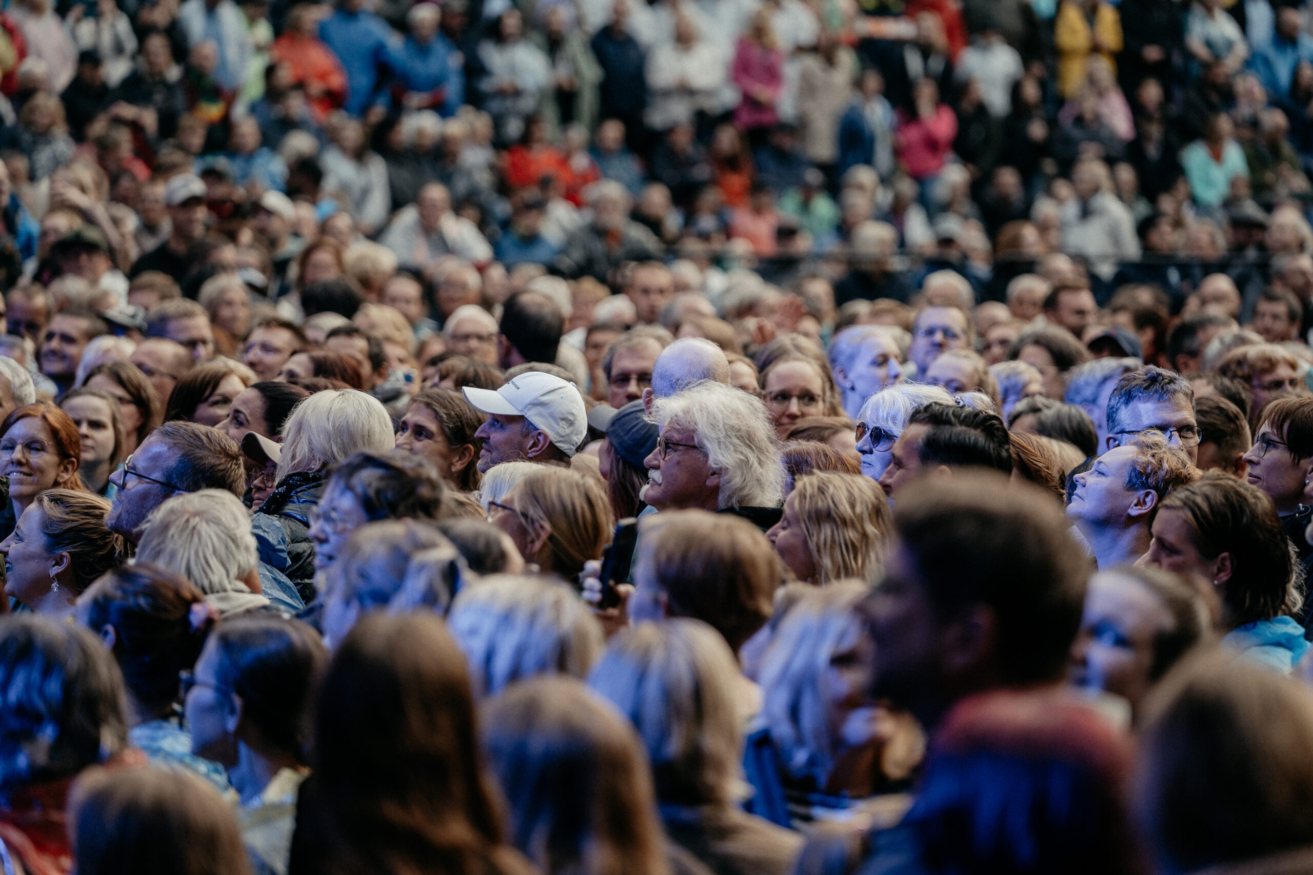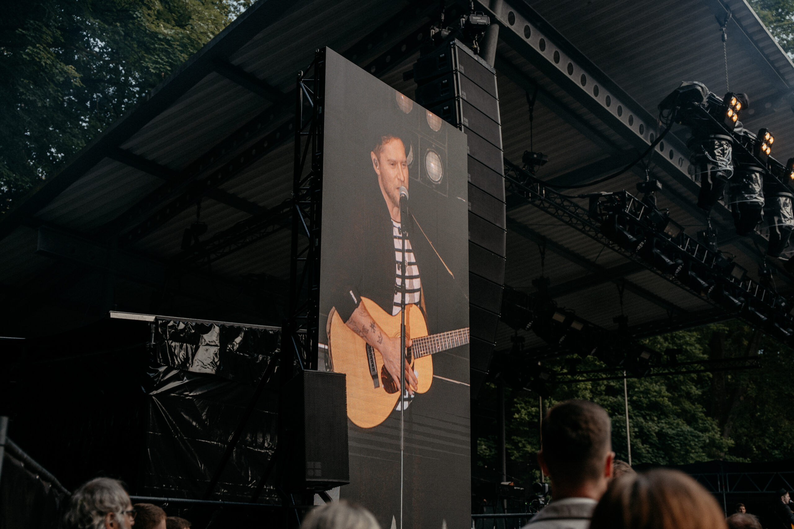 Nach einjähriger Bühnenpause füllte der gebürtige Westfale, im Rheinland aufgewachsene und heute in Hamburg lebende Johannes Oerding erneut das große Rund der Waldbühne. Bereits um 18 Uhr waren die Ränge gefüllt – wer jetzt noch kam, musste sich ein Plätzchen im Innenraum oder an den Seiten suchen, um den Sänger und seine vierköpfige Band überhaupt sehen zu können. Denn der Veranstalter hatte im Innenraum ein großes Zelt für Sound- und Lichtmischer aufgebaut, das vielen Zuschauern die Sicht nahm – vielleicht reicht beim nächsten Mal ein kleineres Zelt?