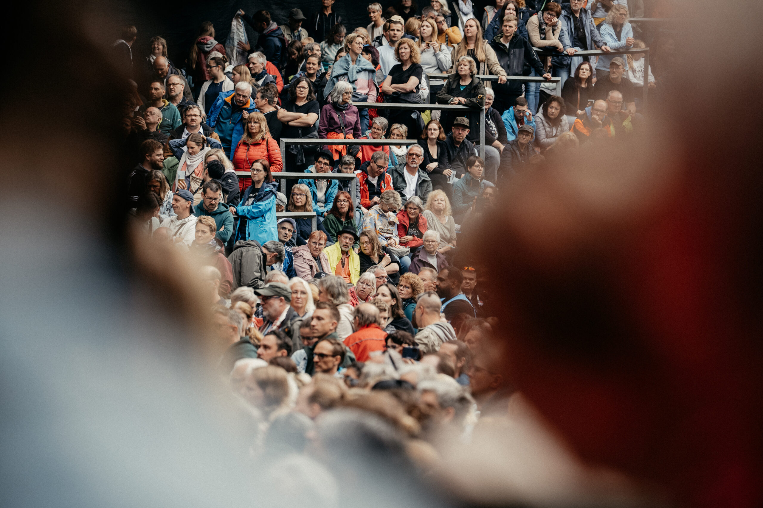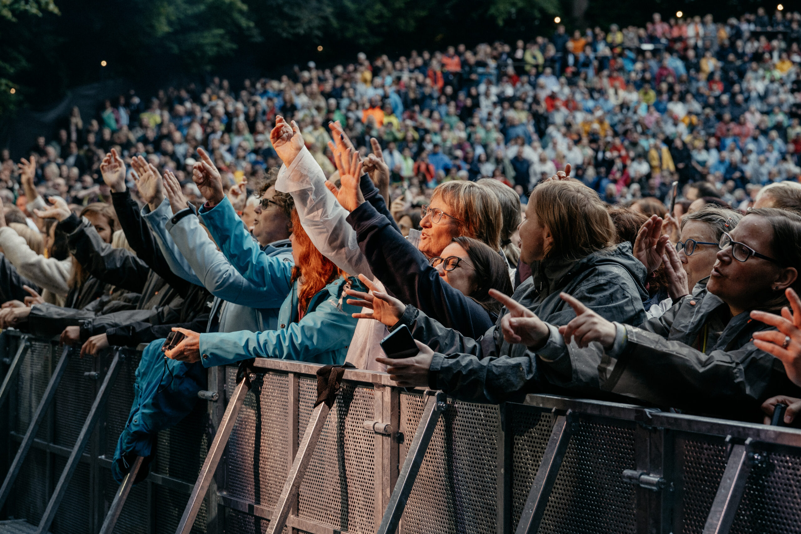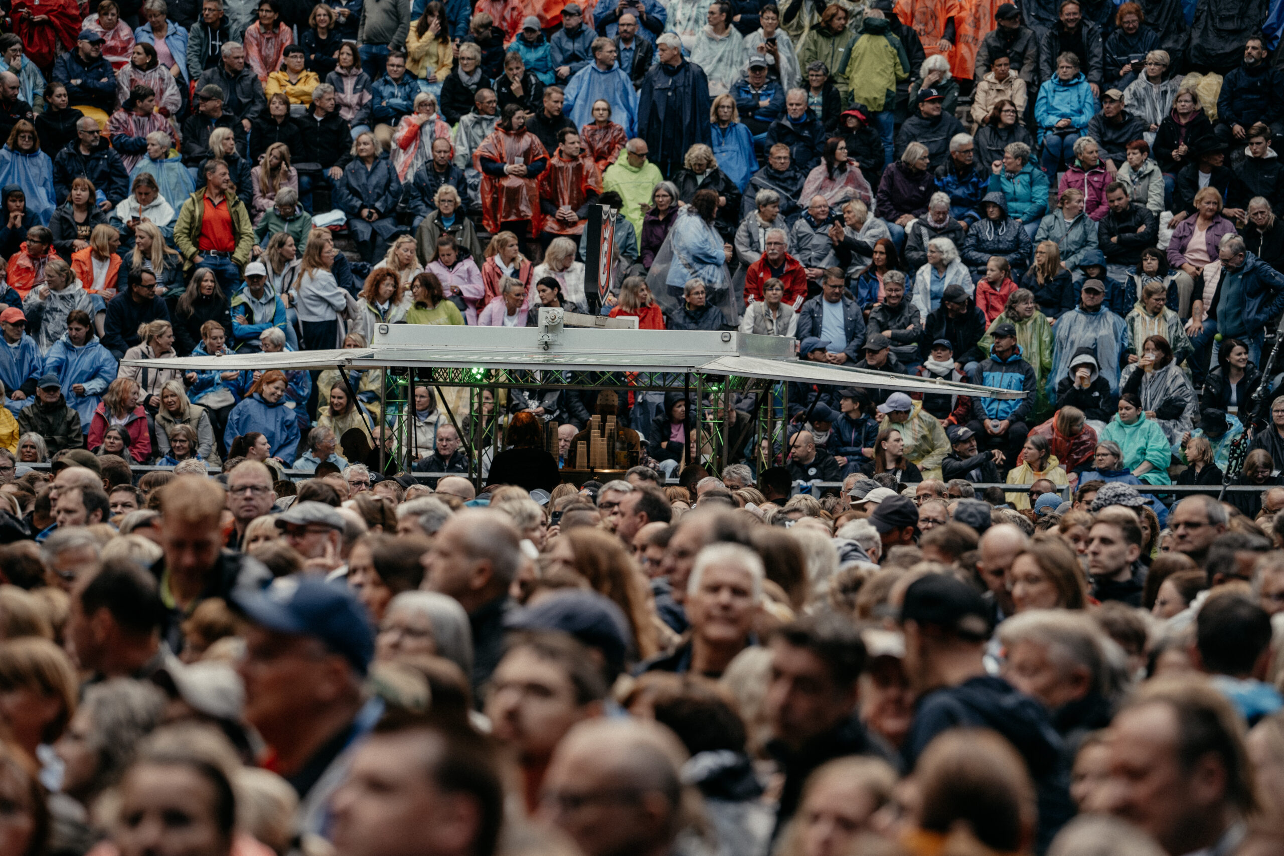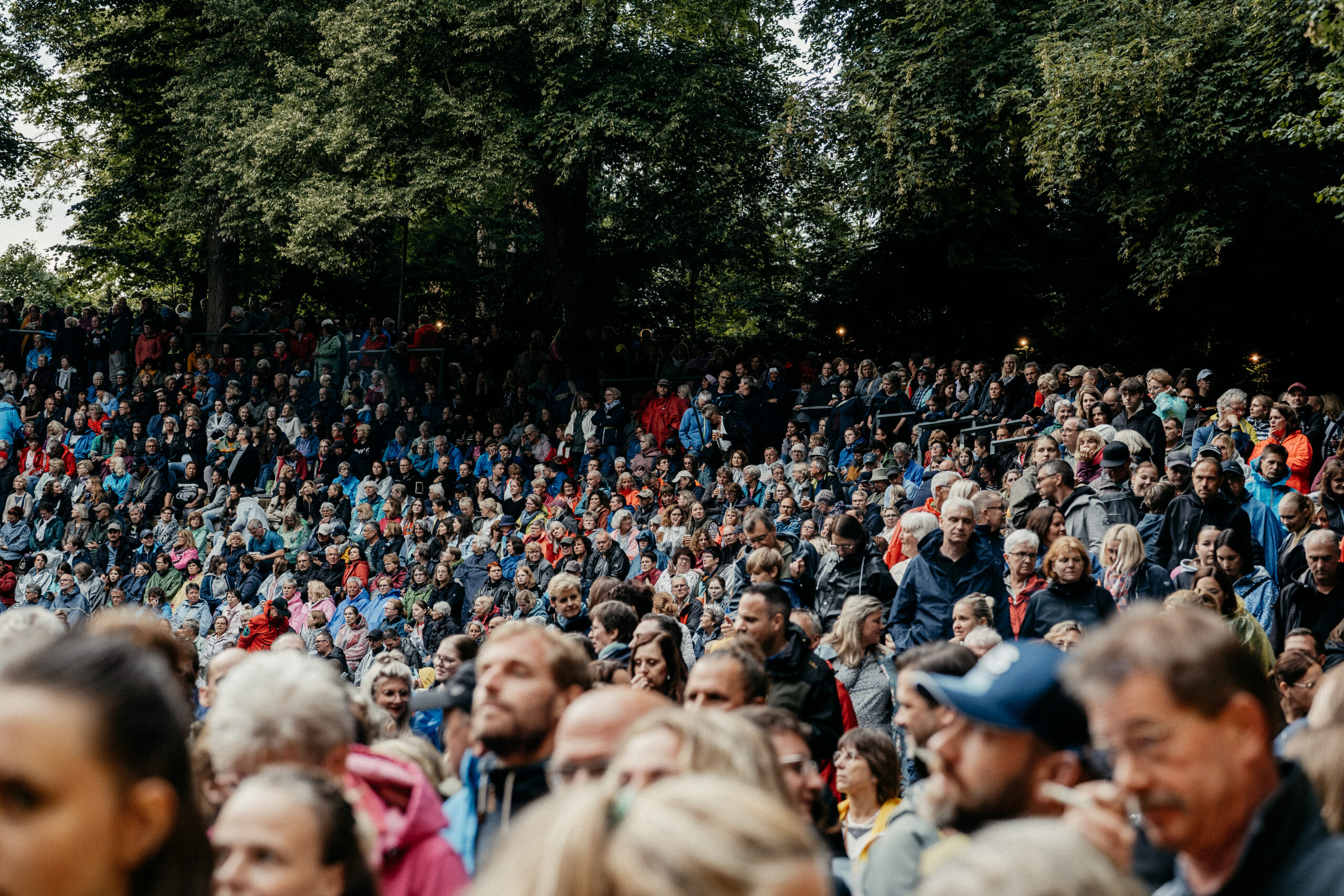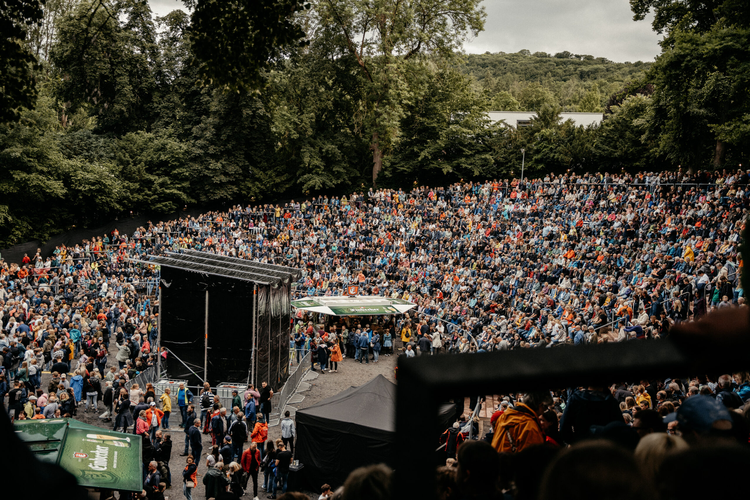 Nach einjähriger Bühnenpause füllte der gebürtige Westfale, im Rheinland aufgewachsene und heute in Hamburg lebende Johannes Oerding erneut das große Rund der Waldbühne. Bereits um 18 Uhr waren die Ränge gefüllt – wer jetzt noch kam, musste sich ein Plätzchen im Innenraum oder an den Seiten suchen, um den Sänger und seine vierköpfige Band überhaupt sehen zu können. Denn der Veranstalter hatte im Innenraum ein großes Zelt für Sound- und Lichtmischer aufgebaut, das vielen Zuschauern die Sicht nahm – vielleicht reicht beim nächsten Mal ein kleineres Zelt?