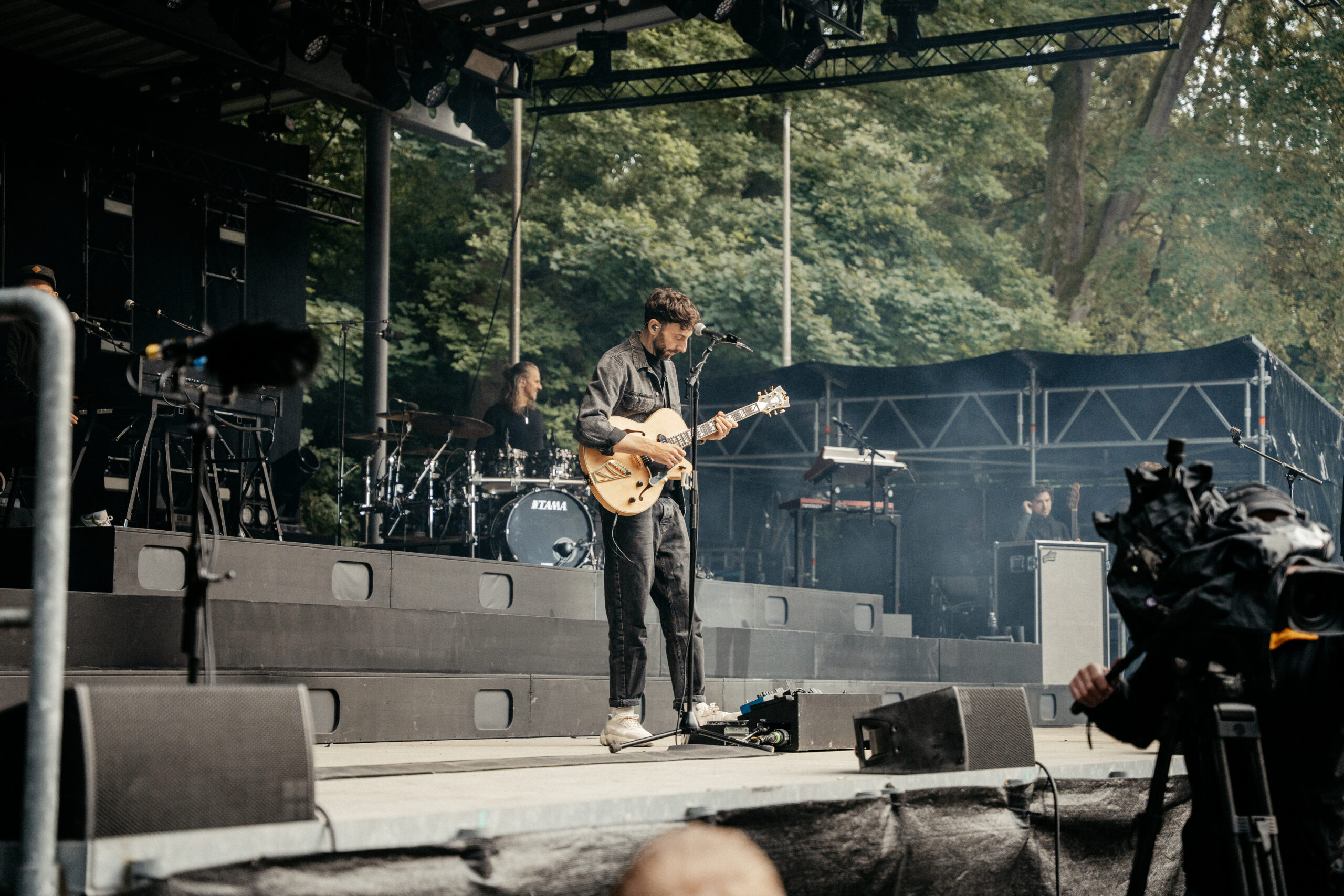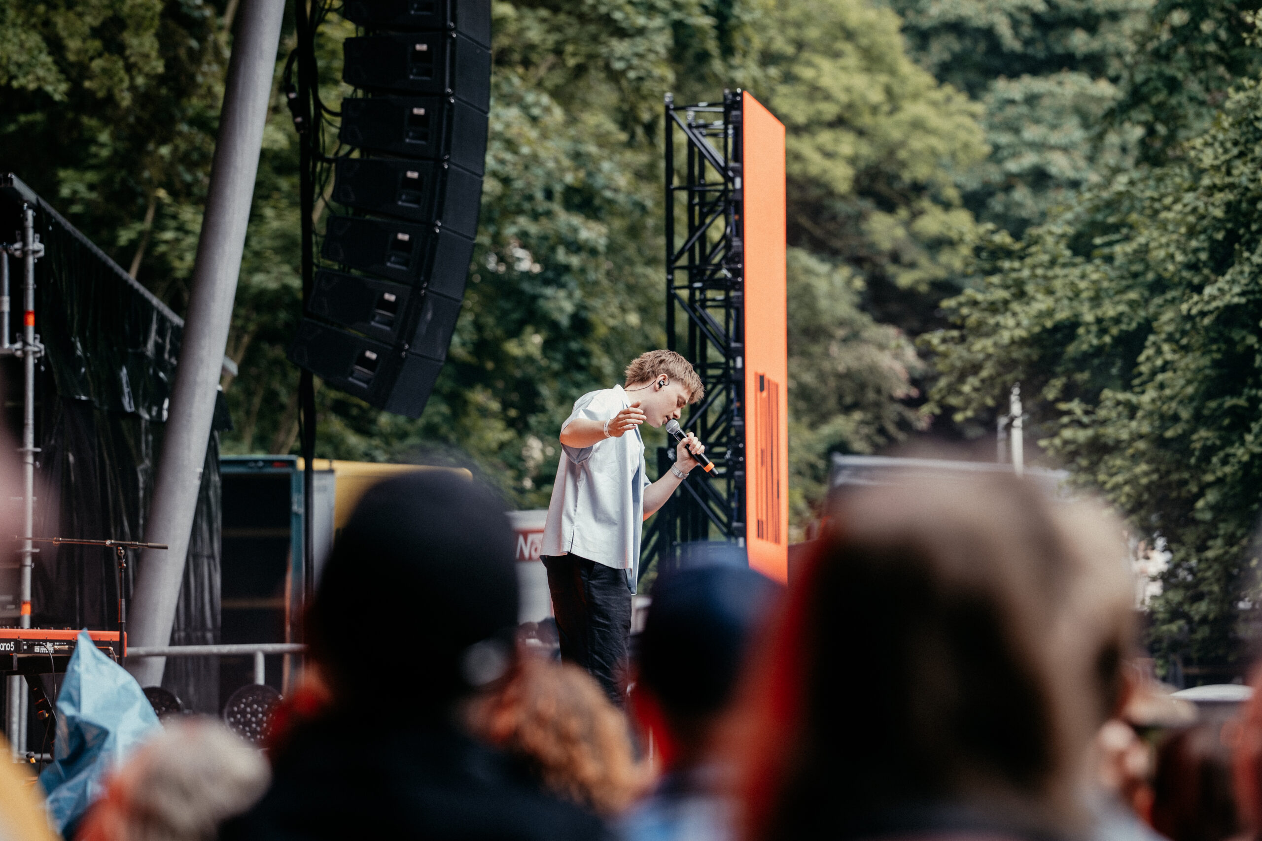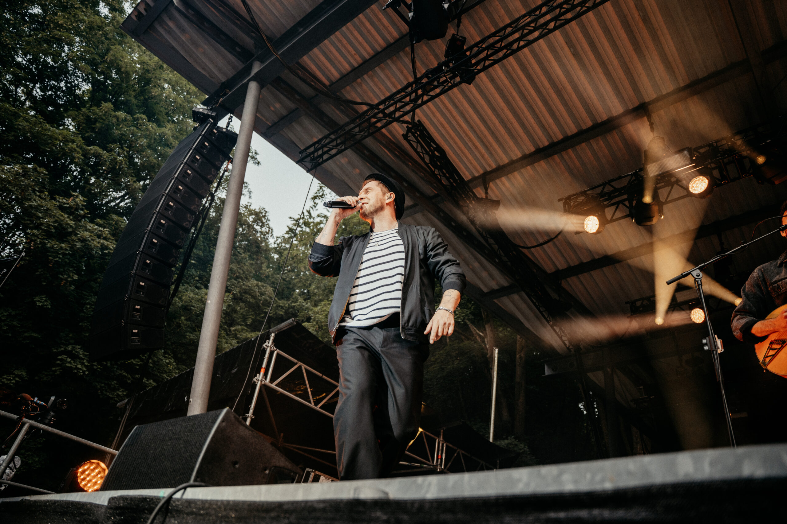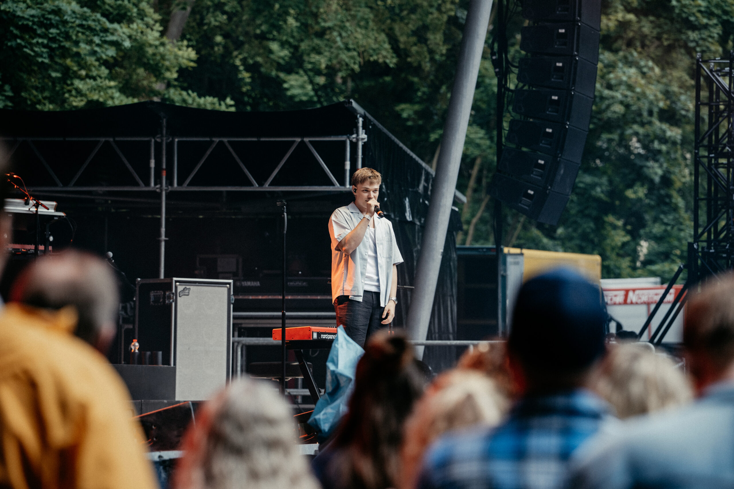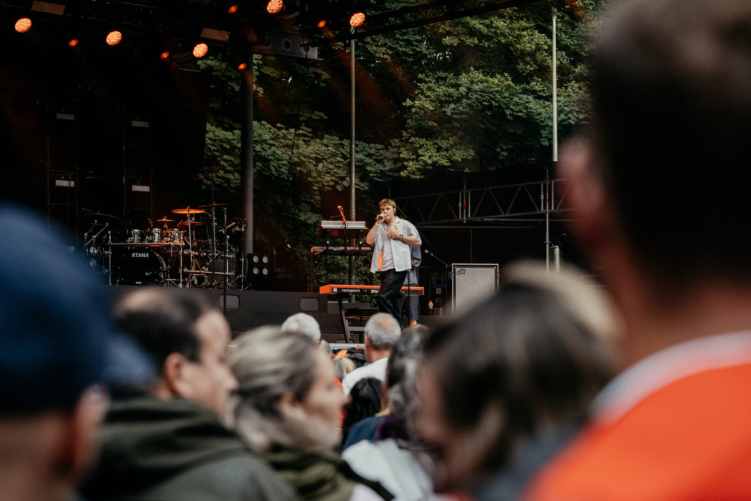 Die undankbare Aufgabe, gegen den aufkommenden Regen anzusingen und das Publikum anzuheizen, übernahm der erst 19-jährige Trierer Levin Moltschanow, der unter seinem Künstlernamen „Levka“ bereits mehrere Singles veröffentlich hat. Allein am Keyboard und mit gesampelten Liedern zeigte er mit variabler dunkler Stimme, dass in seinen Eigenkompositionen viel Hitpotential steckt und erntete viel ehrlichen Applaus.