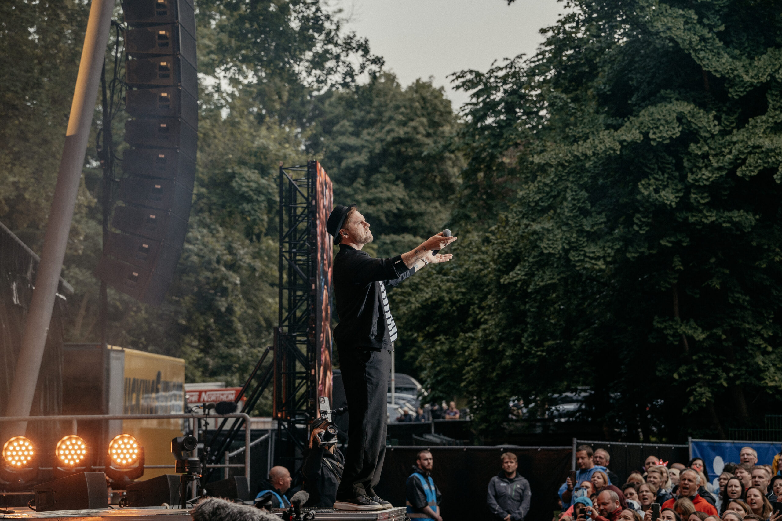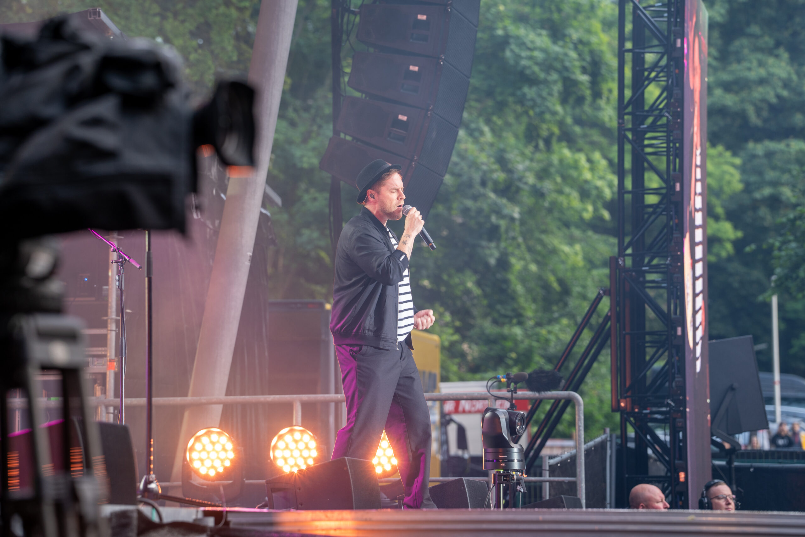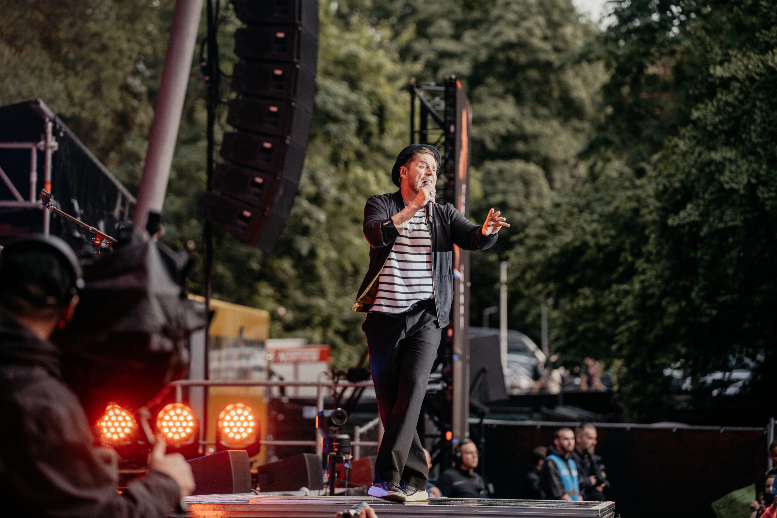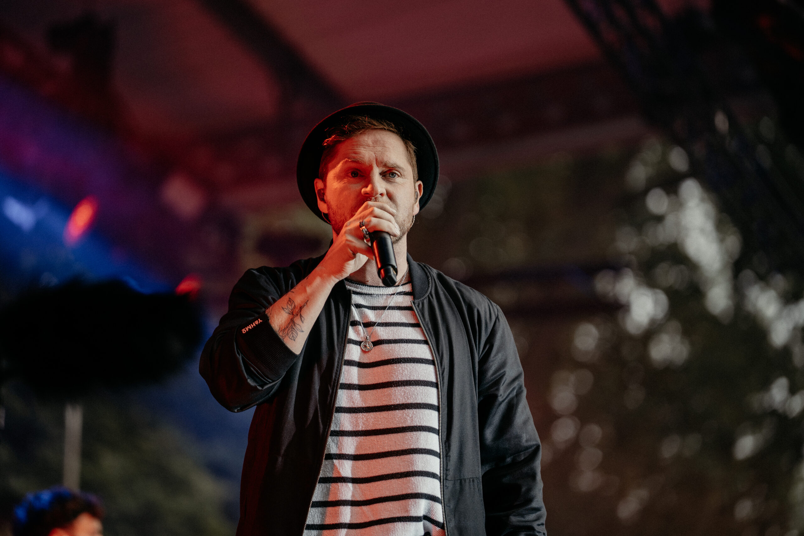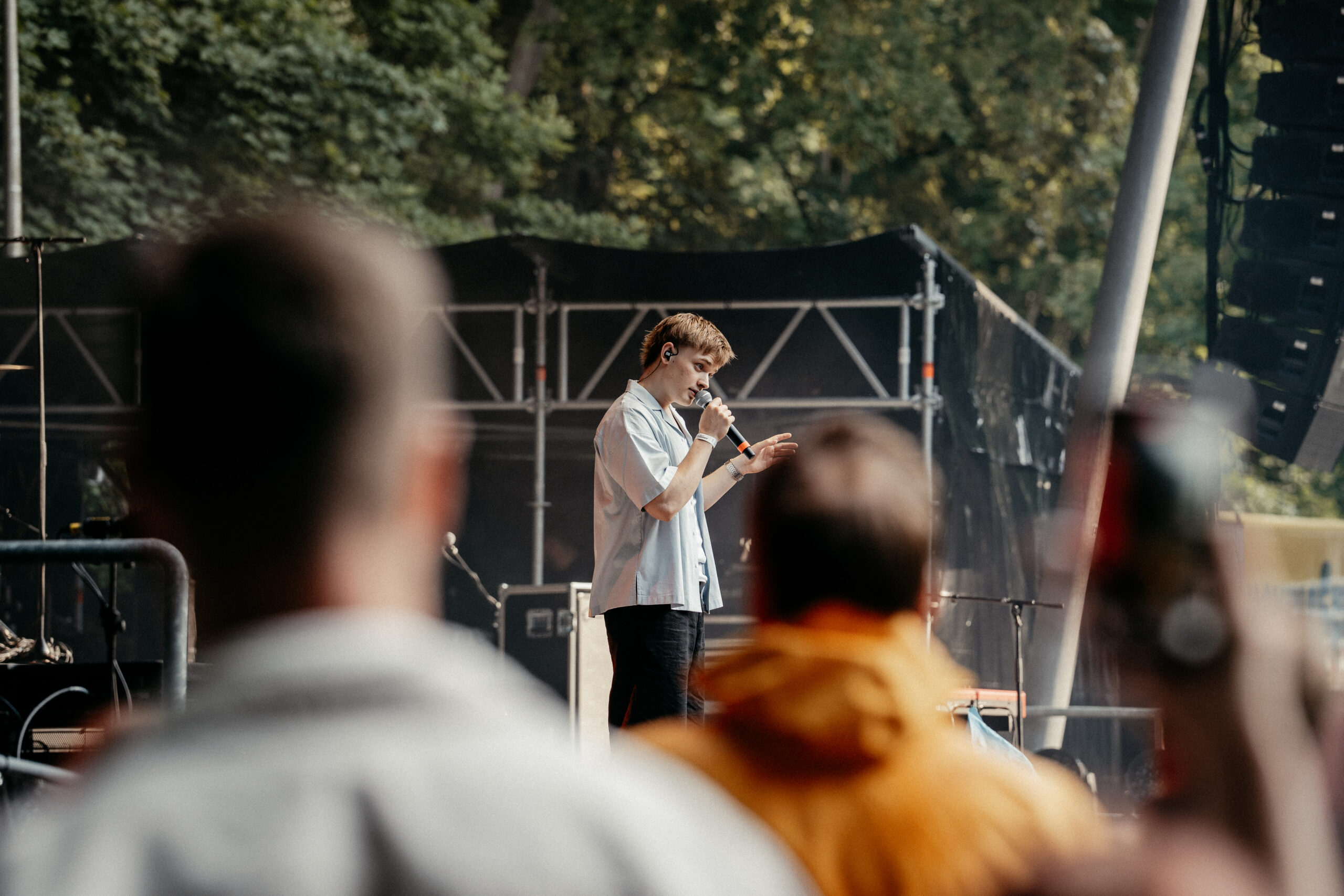 Die undankbare Aufgabe, gegen den aufkommenden Regen anzusingen und das Publikum anzuheizen, übernahm der erst 19-jährige Trierer Levin Moltschanow, der unter seinem Künstlernamen „Levka“ bereits mehrere Singles veröffentlich hat. Allein am Keyboard und mit gesampelten Liedern zeigte er mit variabler dunkler Stimme, dass in seinen Eigenkompositionen viel Hitpotential steckt und erntete viel ehrlichen Applaus.