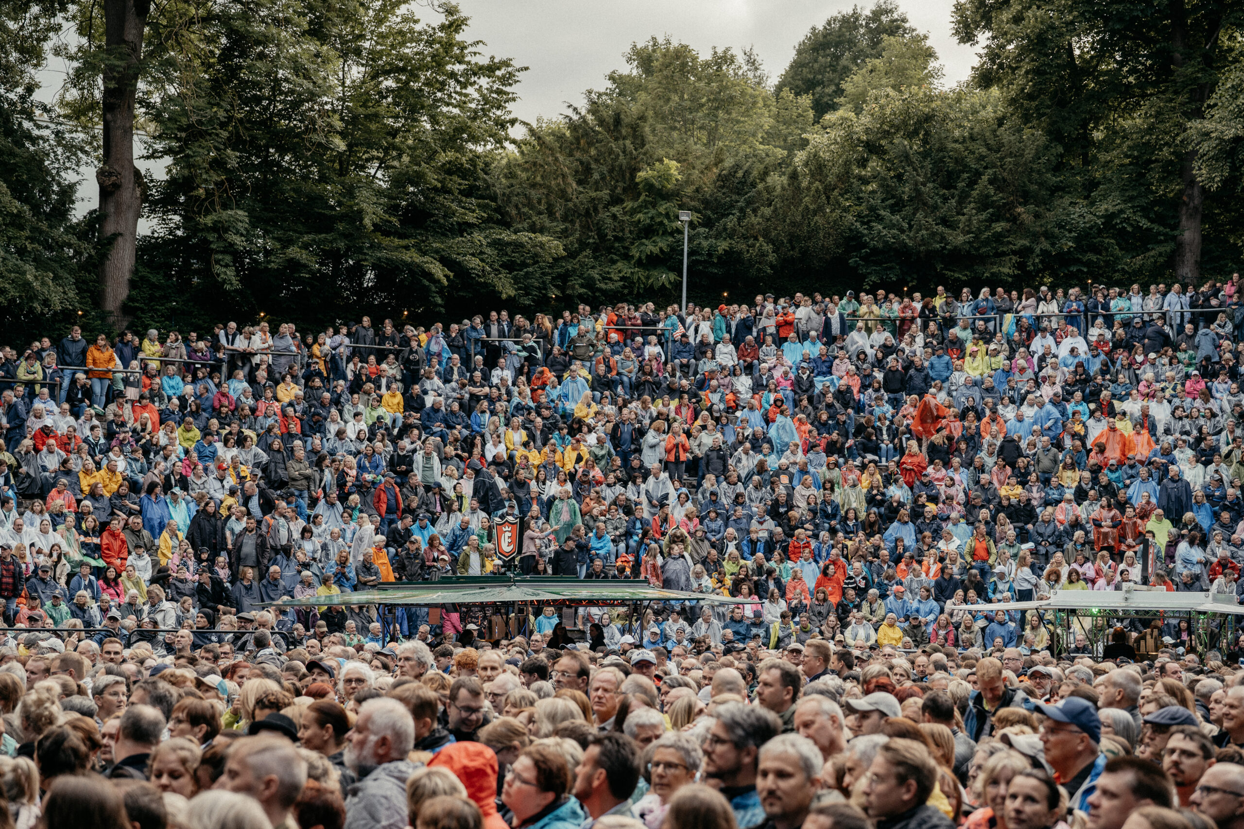 Nun ist es wirklich ein Heimspiel. Zum dritten Mal speilte der Musiker Johannes Oerding nach 2022 und 2023 auf der Waldbühne in Northeim. Während der Regen das erste Konzert auf der Waldbühne in diesem Jahr in eine bunte Poncho-Party verwandelte, waren die Fans Feuer und Flamme. Versöhnlich: Sogar ein Regenbogen zeigte sich den 7.500 Fans.