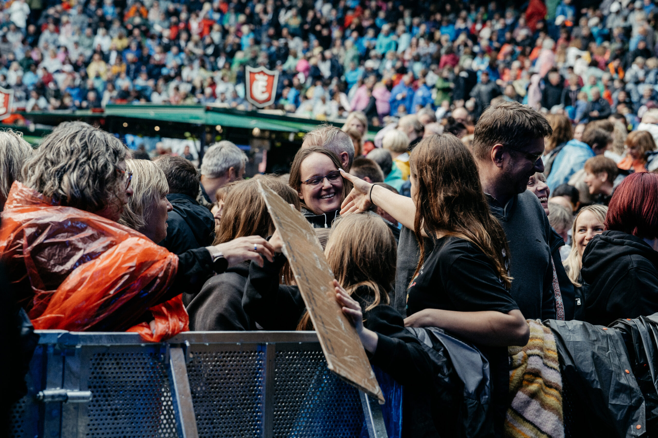 Seinen Mitspielern läßt er auf der Bühne viel Freiheit: Da darf Robin Engelhardt am Bass minutenlang slappen, der Schlagzeuger trommelt ein Blitzlichtgewitter zusammen und am Keyboard gibt es lange ruhige Passagen, die vor allem im Mittelteil große Gefühle erzeugen, als Oerding zusammen mit Gitarrist Moritz Stahl unplugged „Hotel“ und „Leuchtschrift“ spielten. Wie immer gab es beim Entertainer Oerding auch den einen, heißersehnten Fan-Moment: Beim Rundgang mit Gitarre durch die Menge durfte sich Stefanie freuen, die von Oerding und der KI-Software ChatGPT ein Ständchen bekamen. „Noch nicht optimal, aber zumindest die Musik war original Oerding“, freute sich Oerding.