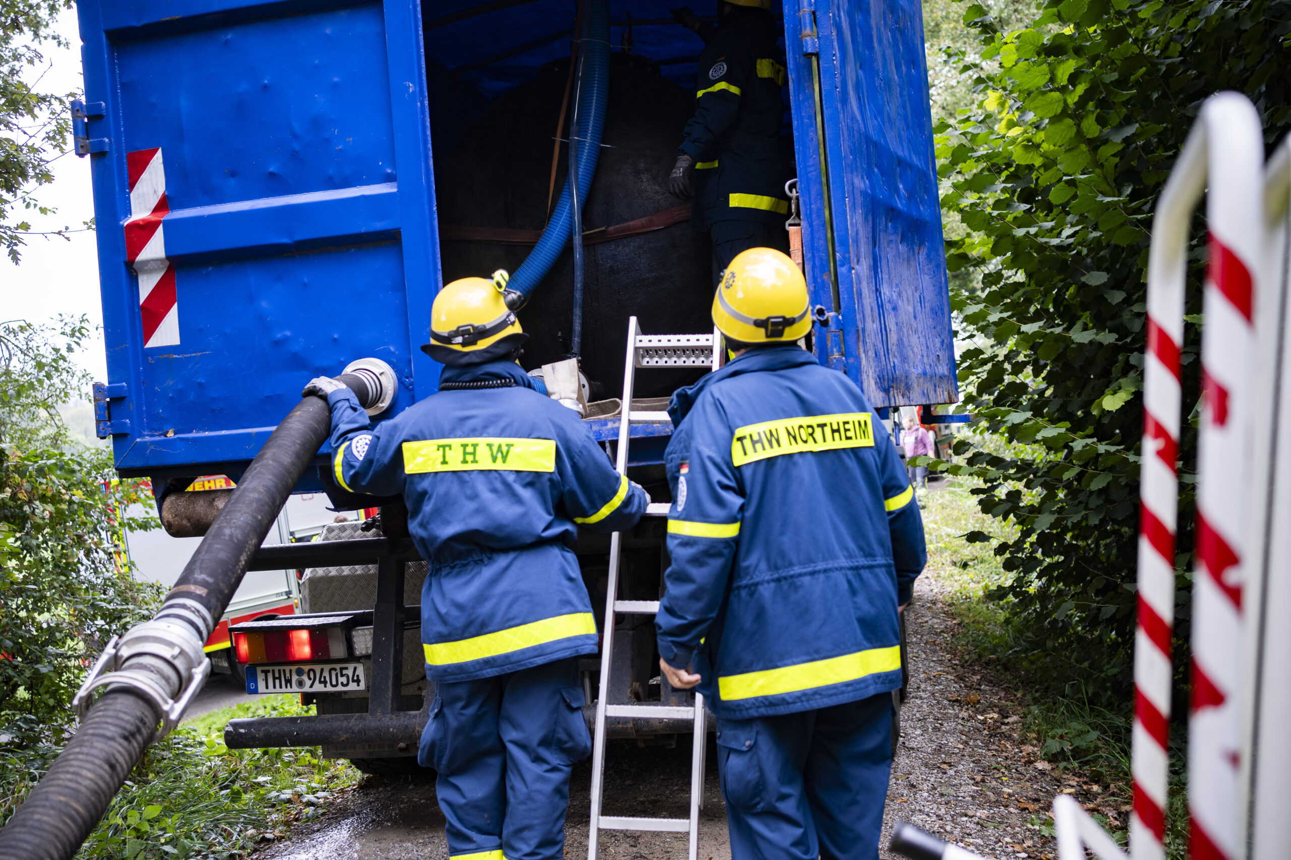 Eine besondere Herausforderung war die Sicherstellung der Wasserversorgung. Das Technische Hilfswerk (THW) war mit einem Fachberater und einem großen Wasservorrat vor Ort. Die Feuerwehr Langenholtensen übernahm die Wasserförderung aus der Ruhme, wobei eine lange Schlauchleitung gelegt werden musste. Zusätzlich war das Deutsche Rote Kreuz (DRK) eingebunden, um die Versorgung der geretteten Patienten sicherzustellen. Die Hygieneeinheit aus Berwartshausen und Hollenstedt kümmerte sich um die erforderlichen Hygienemaßnahmen für die eingesetzten Kräfte.