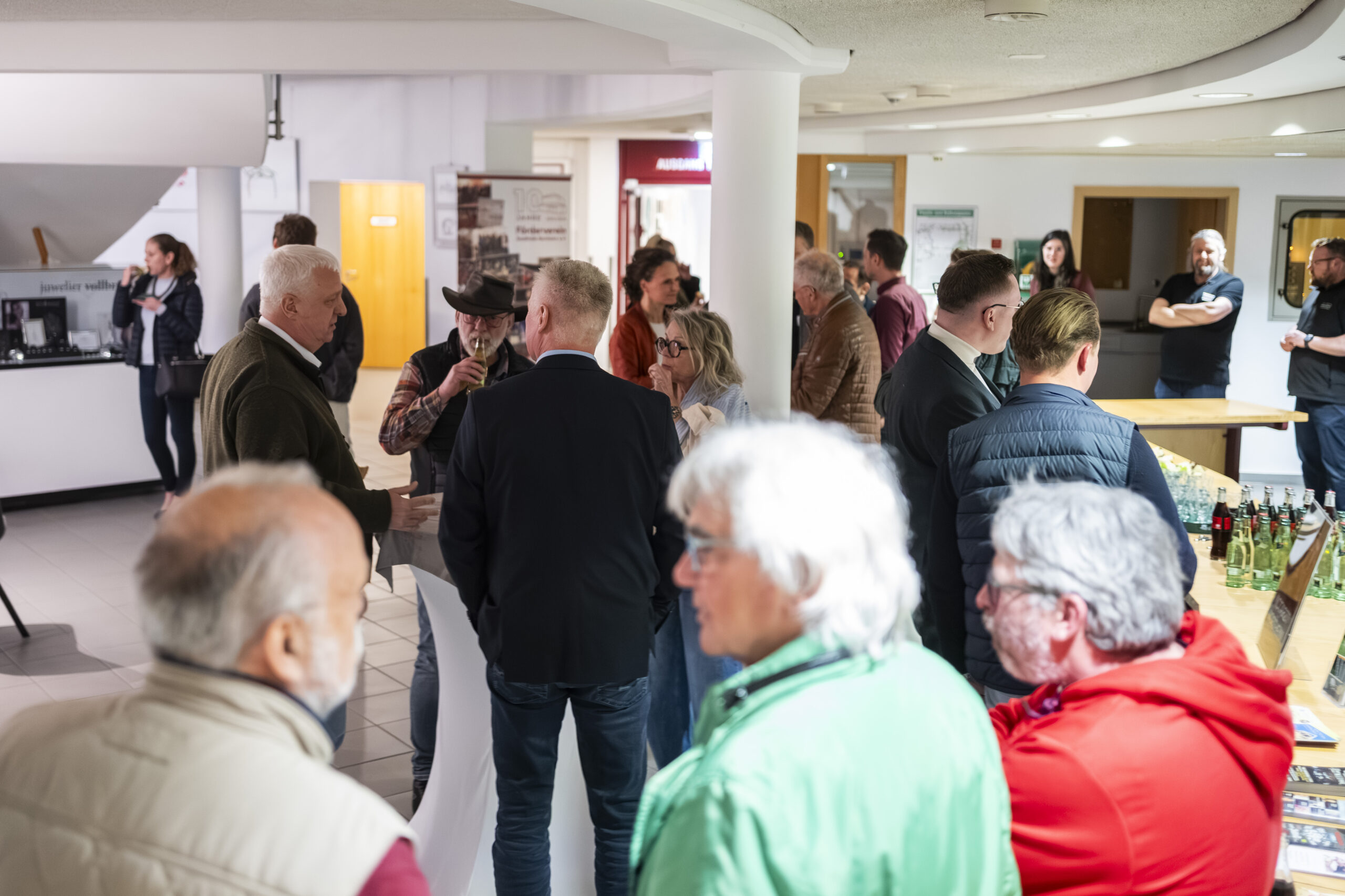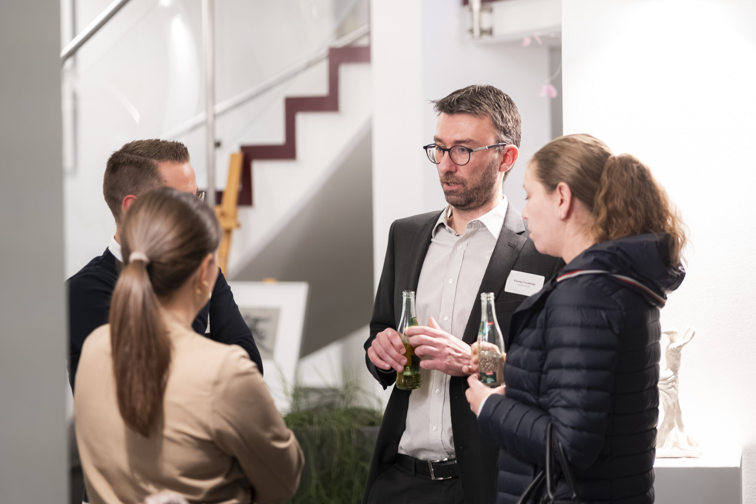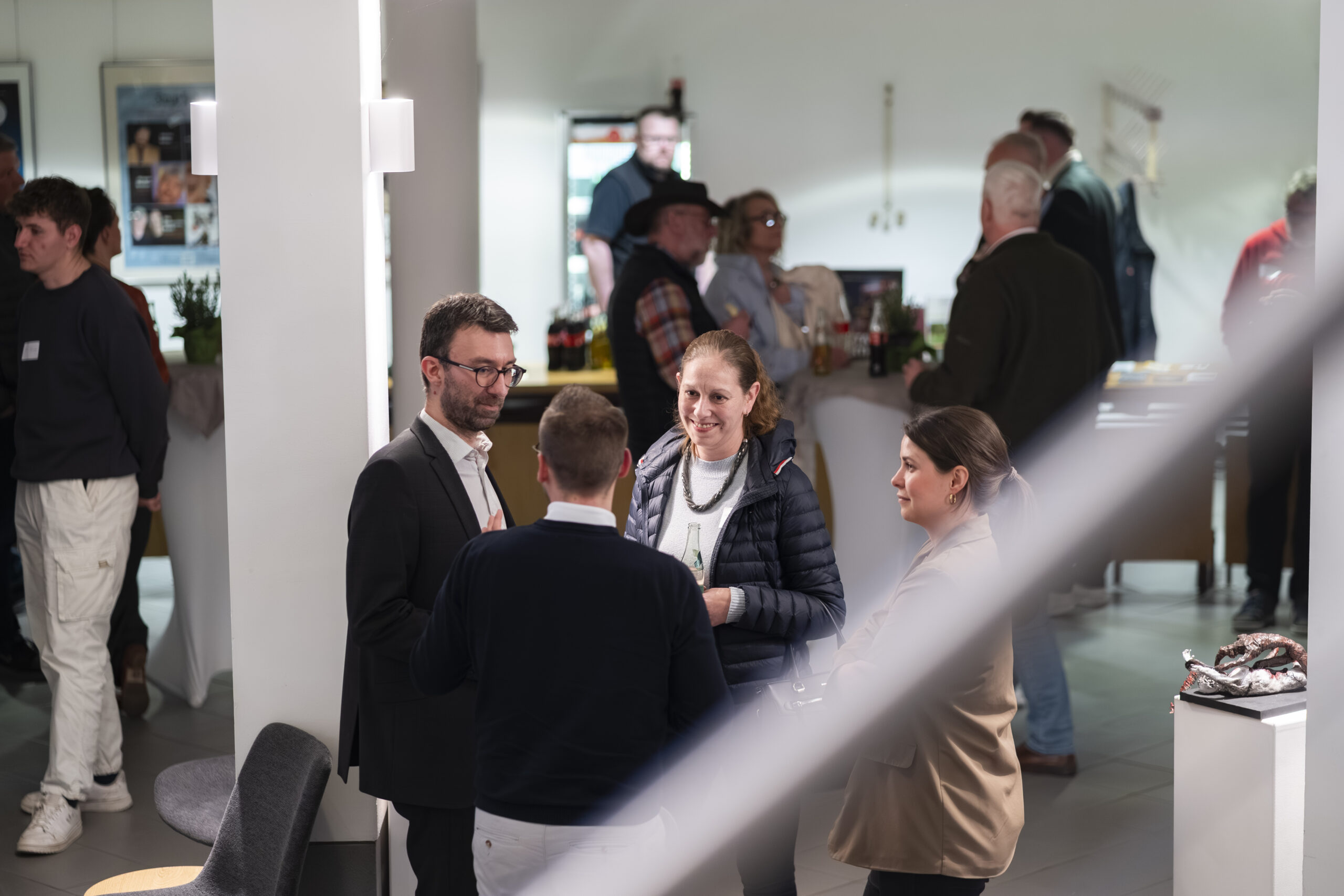 Nach den Impulsen bleibt der Abend nicht auf der Bühne. Er wandert zurück an die Stehtische. Dort wird gefragt, eingeordnet und verglichen. Manche sprechen über erste Berührungspunkte mit KI. Andere über konkrete betriebliche Herausforderungen. Wieder andere über Unsicherheit. Genau diese Mischung macht den Austausch wertvoll. Nicht jeder muss schon Experte sein. Aber alle müssen anfangen, die richtigen Fragen zu stellen.