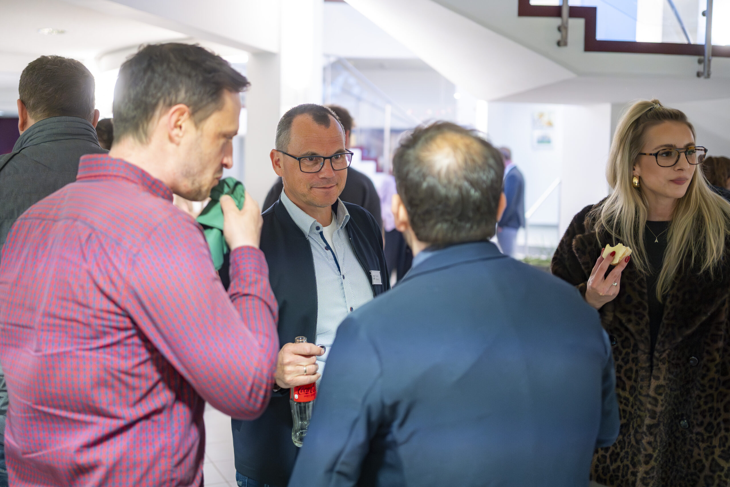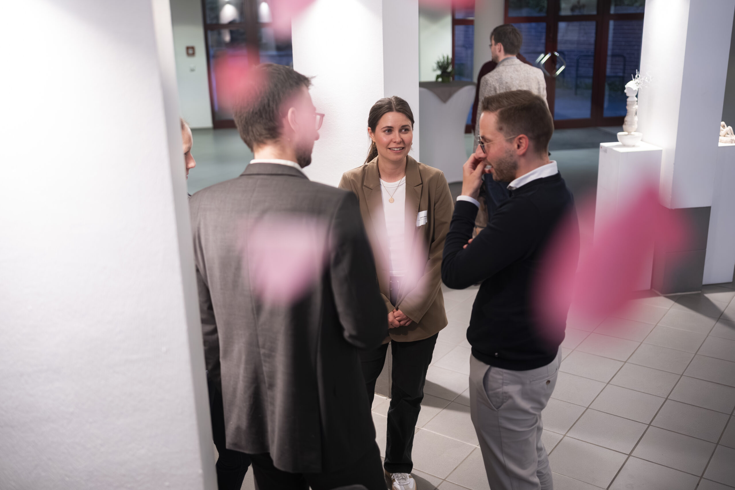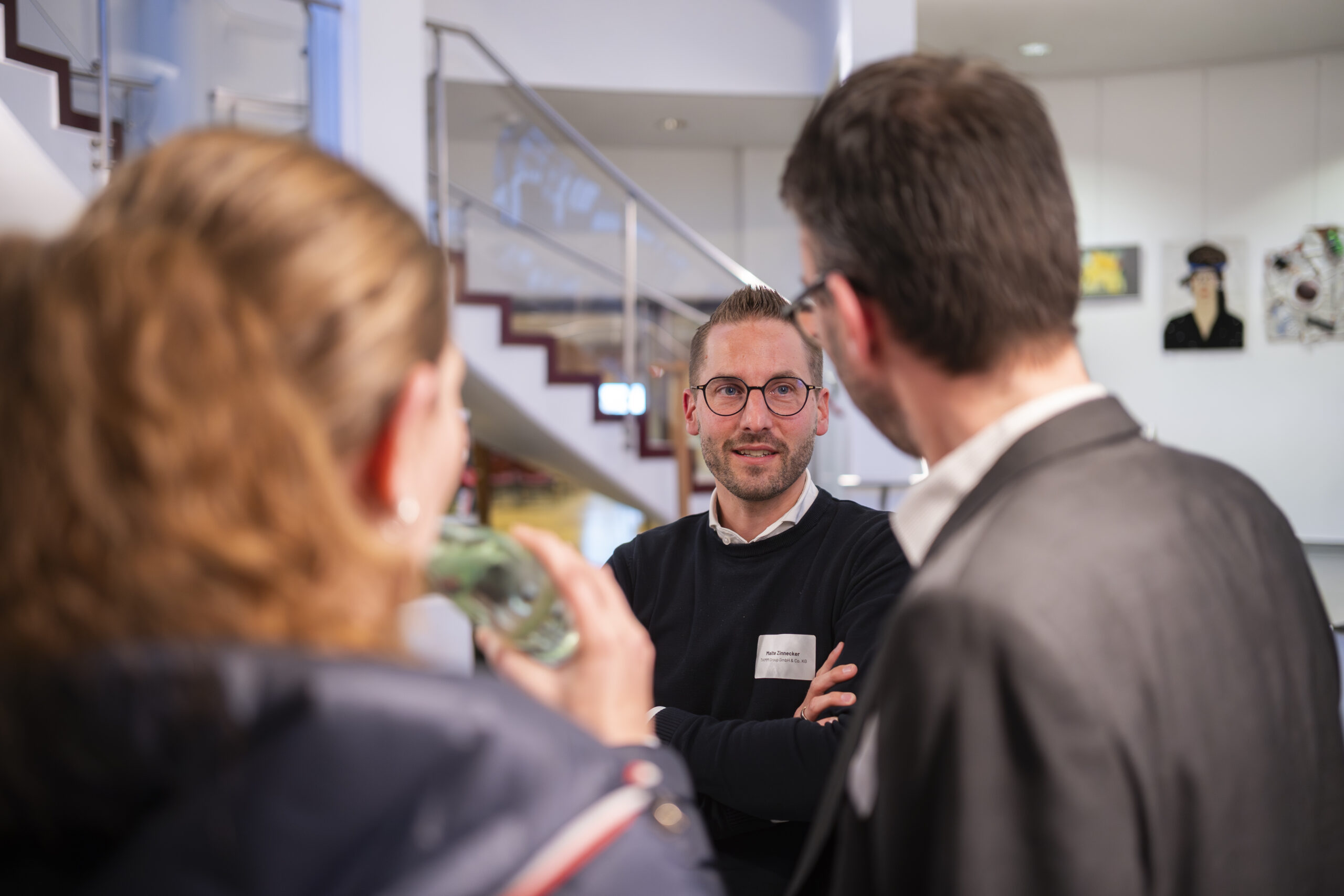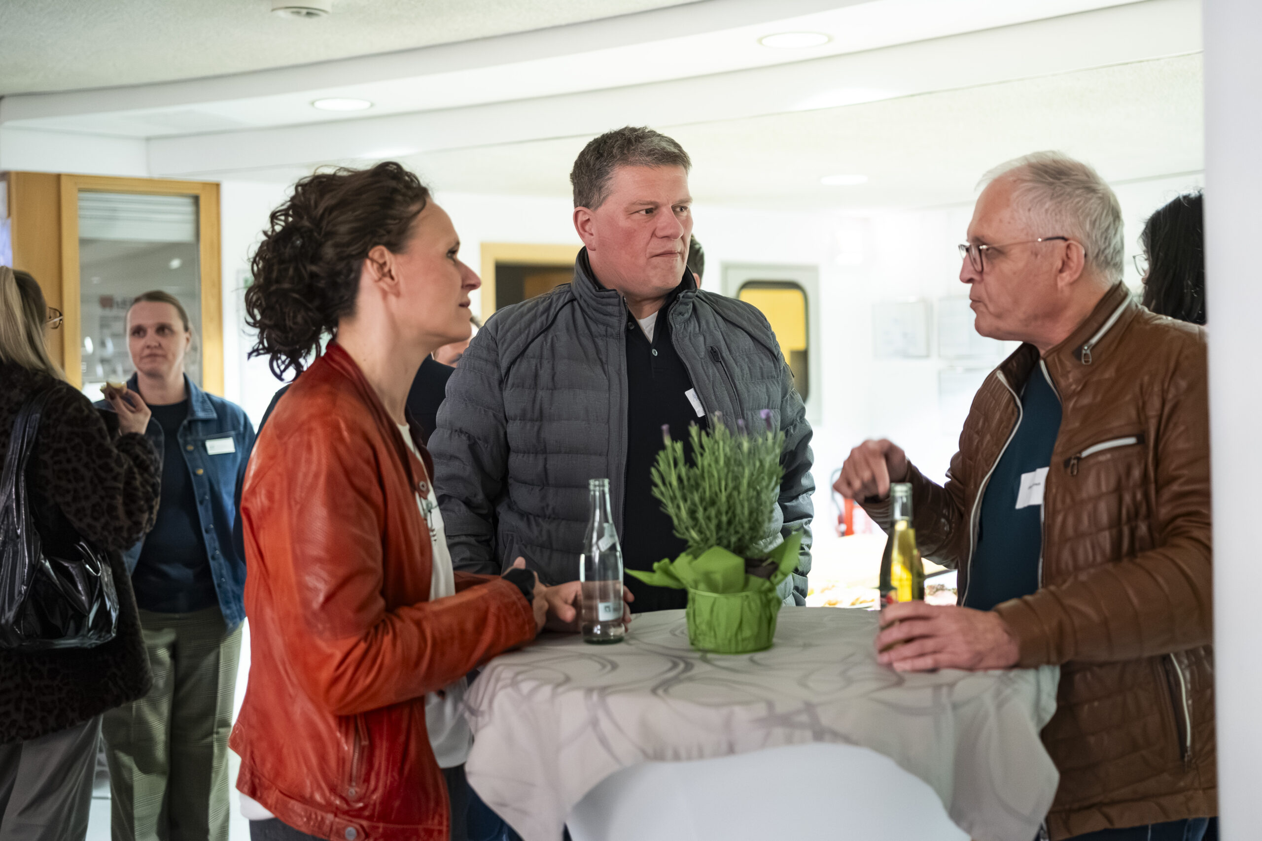 Nach den Impulsen bleibt der Abend nicht auf der Bühne. Er wandert zurück an die Stehtische. Dort wird gefragt, eingeordnet und verglichen. Manche sprechen über erste Berührungspunkte mit KI. Andere über konkrete betriebliche Herausforderungen. Wieder andere über Unsicherheit. Genau diese Mischung macht den Austausch wertvoll. Nicht jeder muss schon Experte sein. Aber alle müssen anfangen, die richtigen Fragen zu stellen.