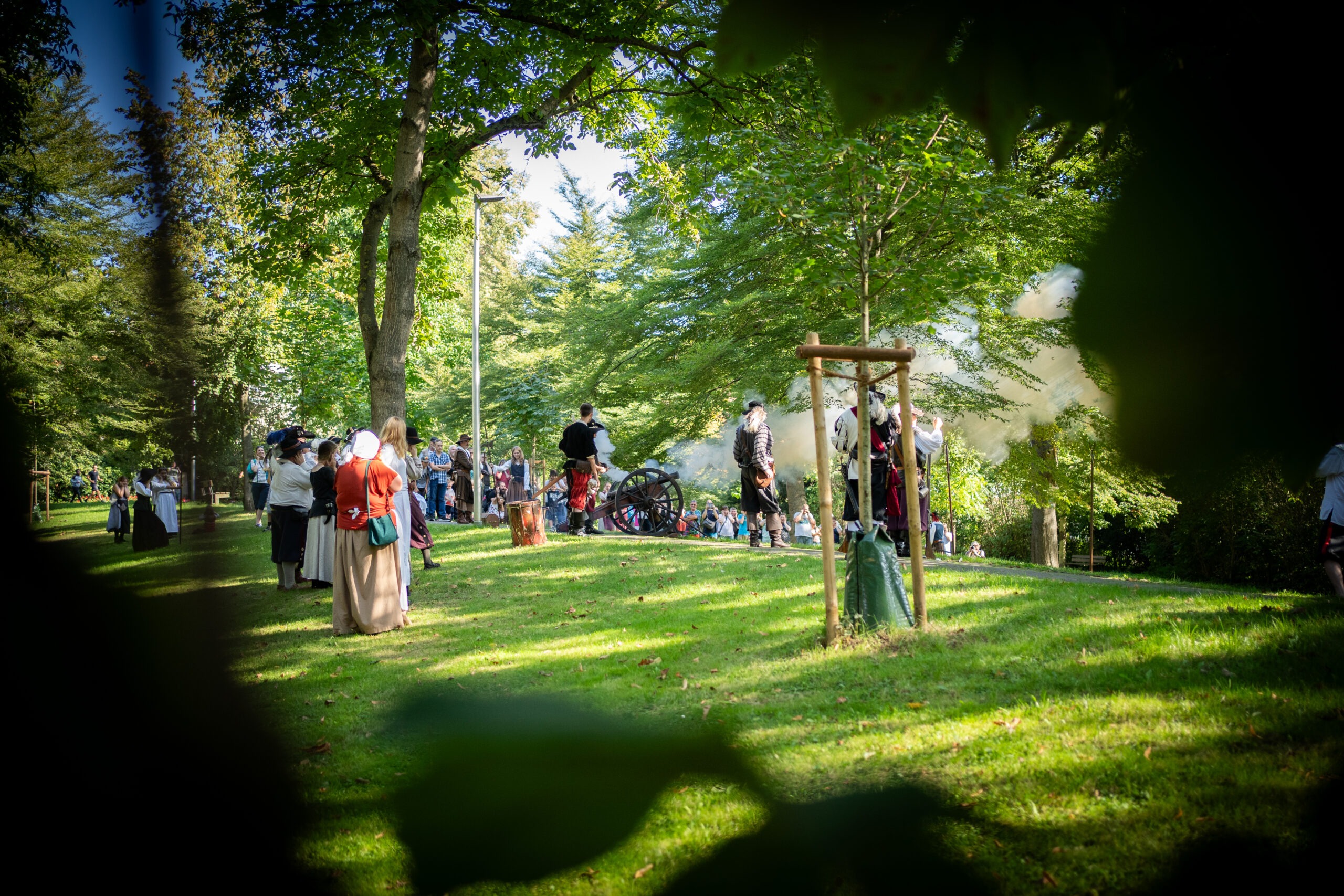 Die Northeimer Landsknechte verteidigen die Stadt vor Tillys Truppen am Adolf-Hueg-Wall und begleiten den Fackelumzug am Samstagabend. Auch die mutigen Schwertkämpfer der Freyschar zu Bokenrode sind wieder dabei und fesseln das Publikum mit actiongelade-nen Schaukämpfen und erstmals auch historischen Tänzen zum Mitmachen.