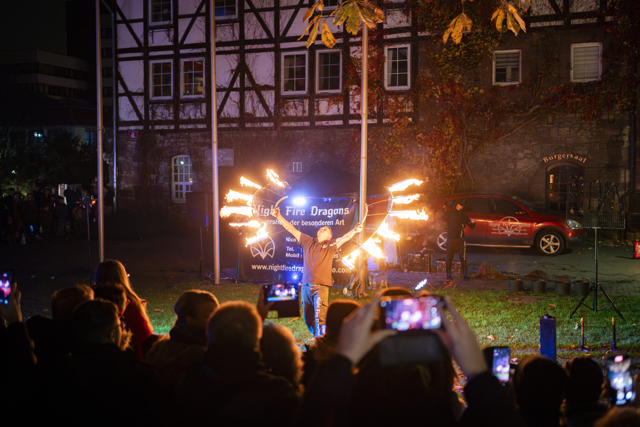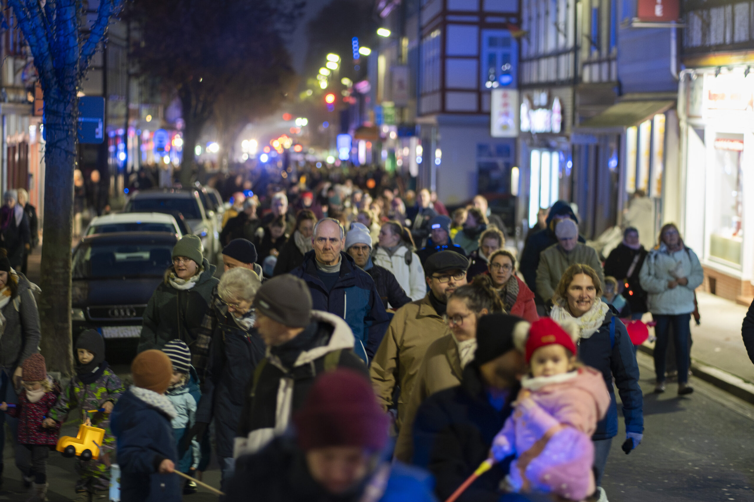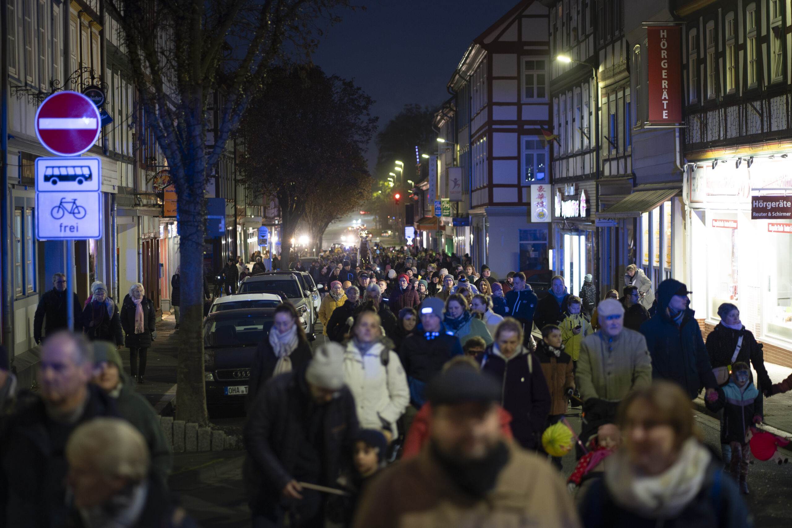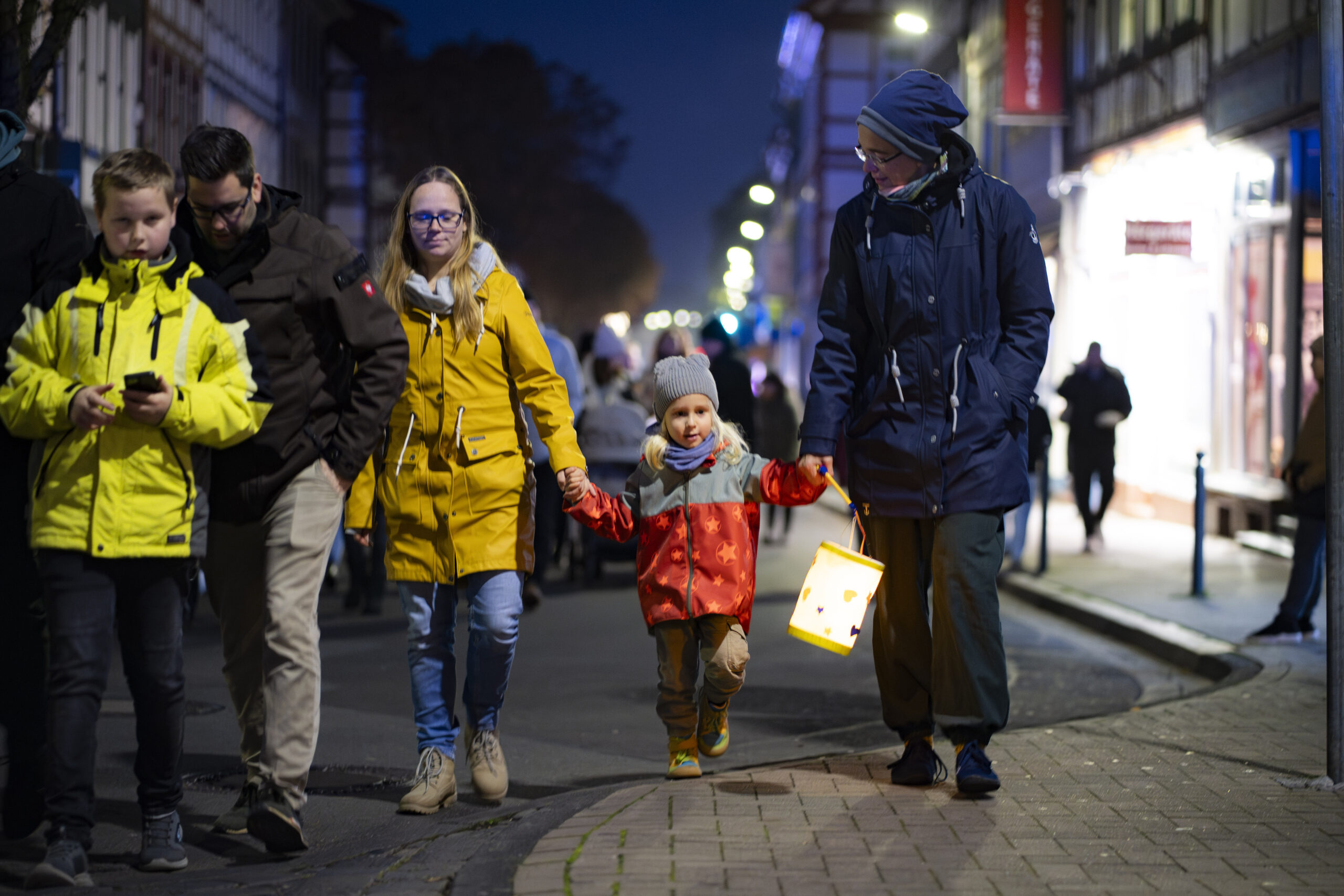 Viele Kinder trugen stolz ihre selbstgebastelten Laternen vor sich her. Begleitet wurde der Umzug von der Polizei. „Den Kräften der Northeimer Polizei möchte ich meinen Dank aussprechen, dass sie uns hier unterstützt haben,“ sagte ein gut gelaunter Michael Eilers am Abend. Der Chef des Northeimer Stadtmarketings begrüßte per Megafon alle Teilnehmenden: „Rund 100 haben sich angemeldet, der Rest ist dazu gestoßen. Toll.“
