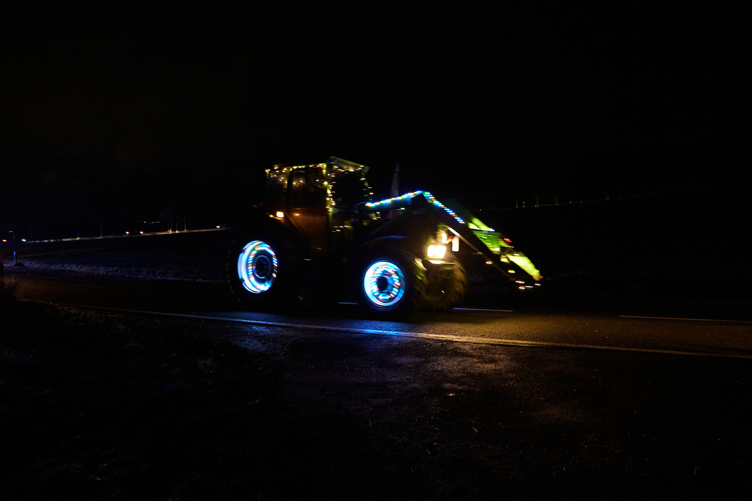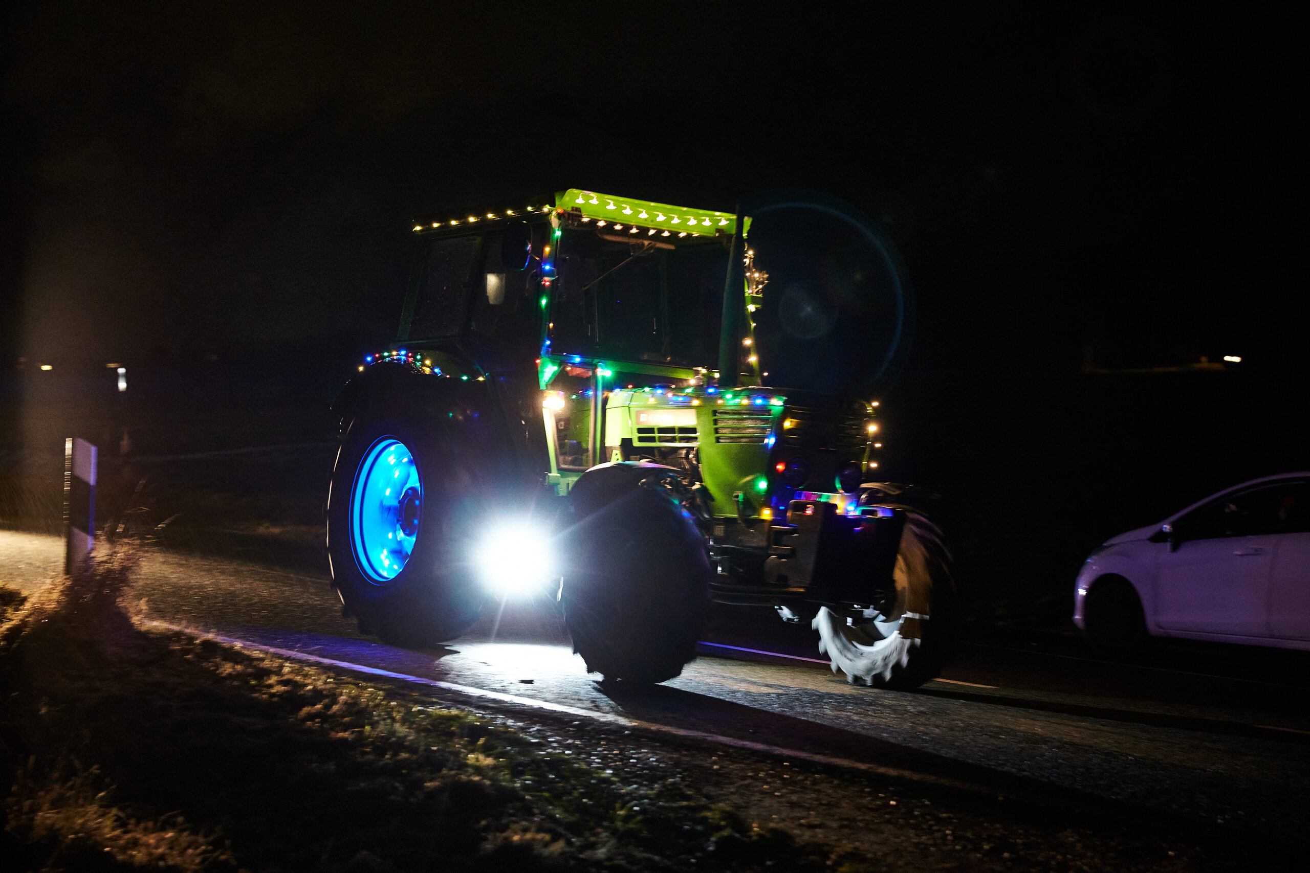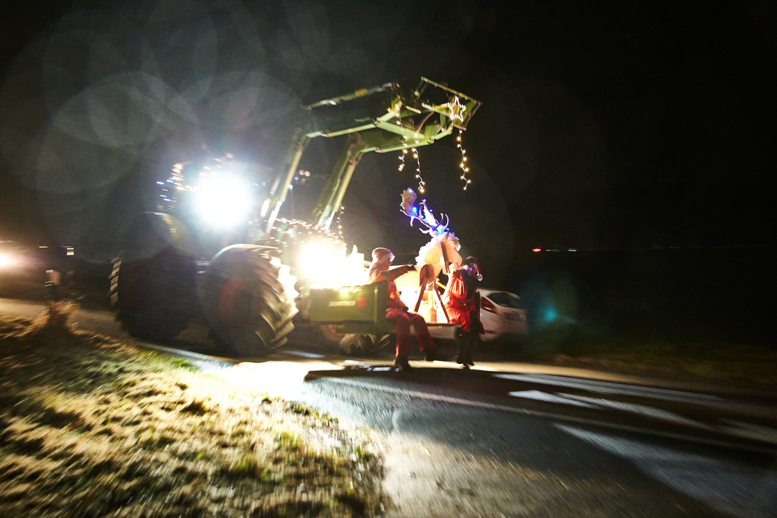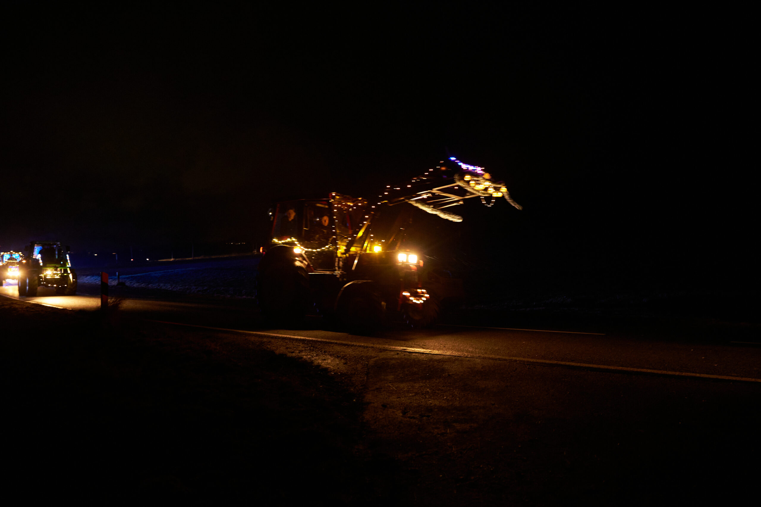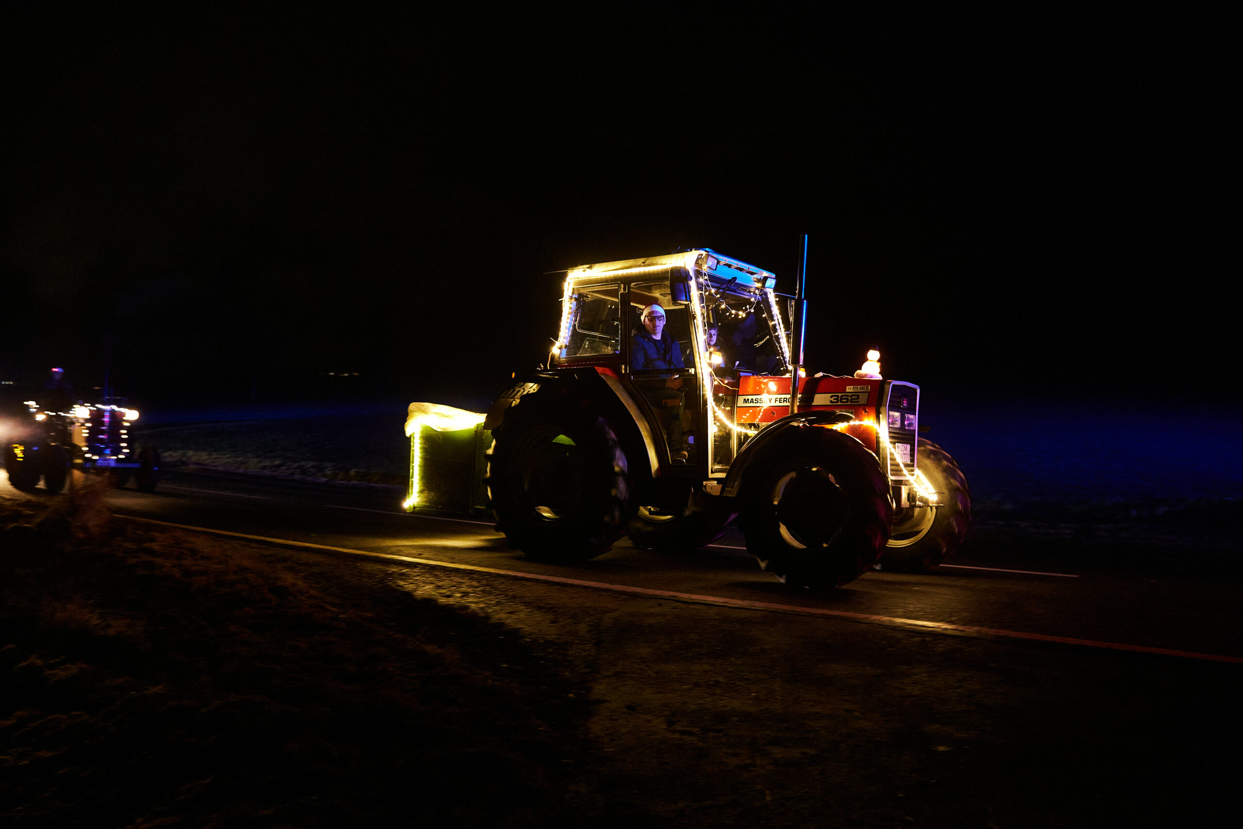Beleuchtete Traktoren und Feuerwehrautos zogen am 4. Adventssonntag durch die Straßen von Sudheim und Bühle. Wie in vielen anderen Orten auch wurden die Maschinen mit weihnachtlichen Lichtern und Motiven geschmückt.