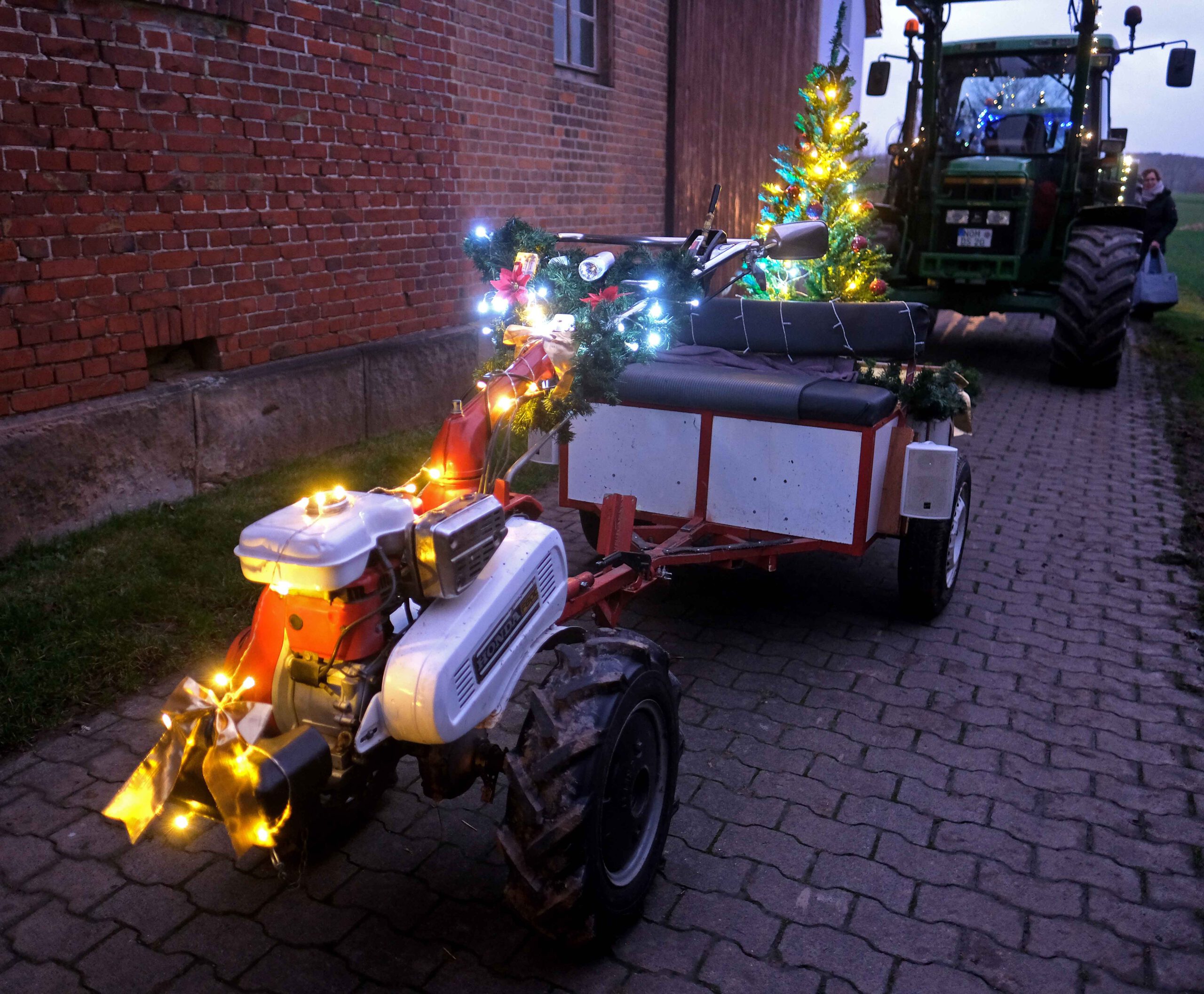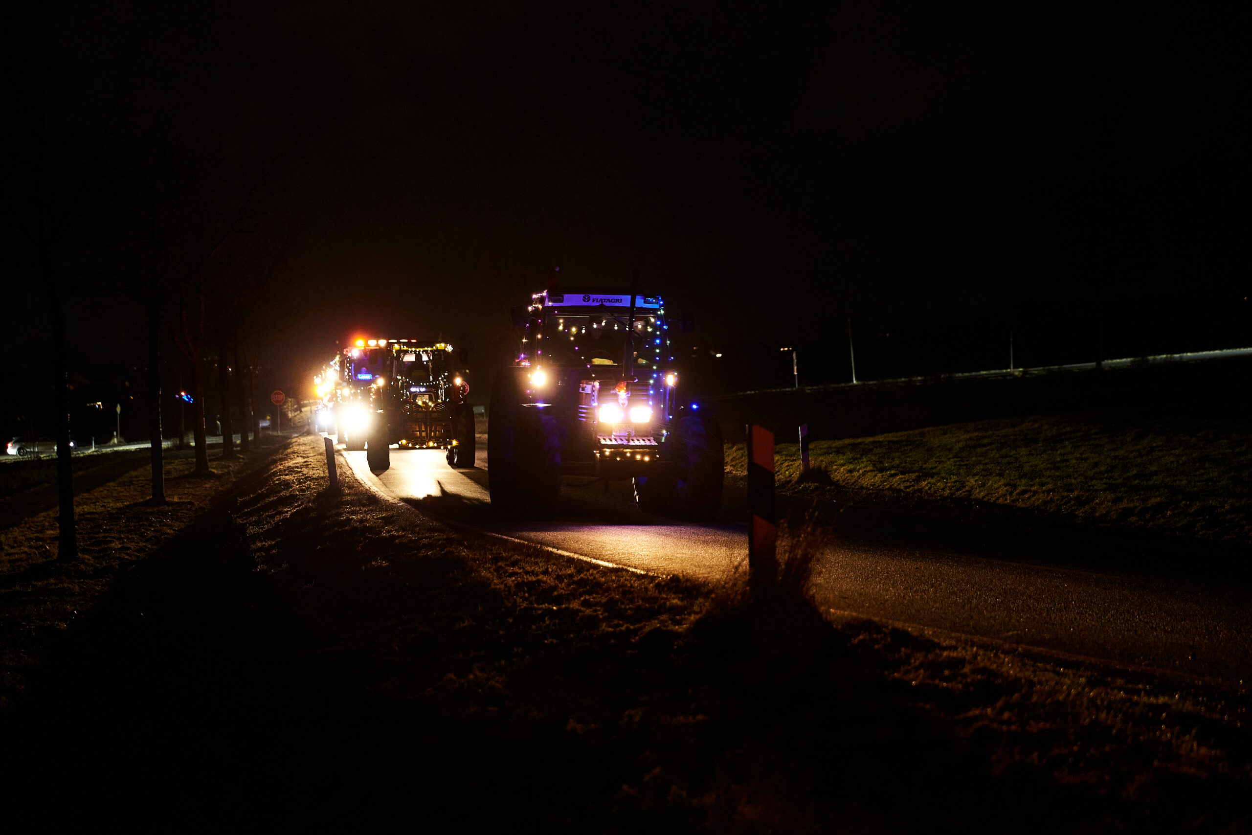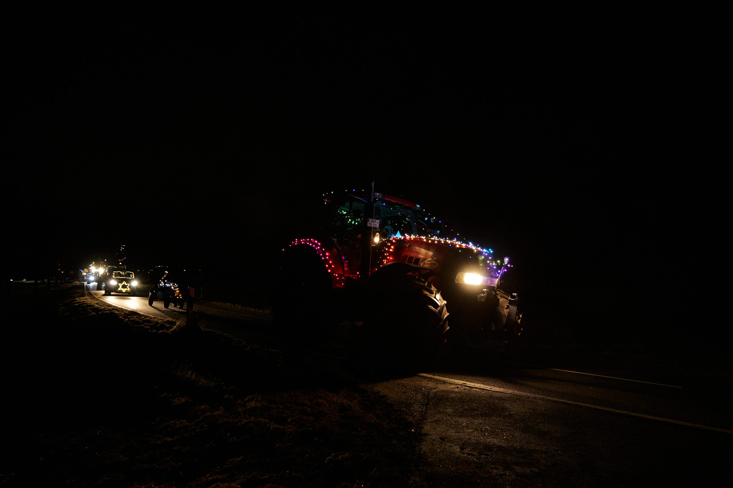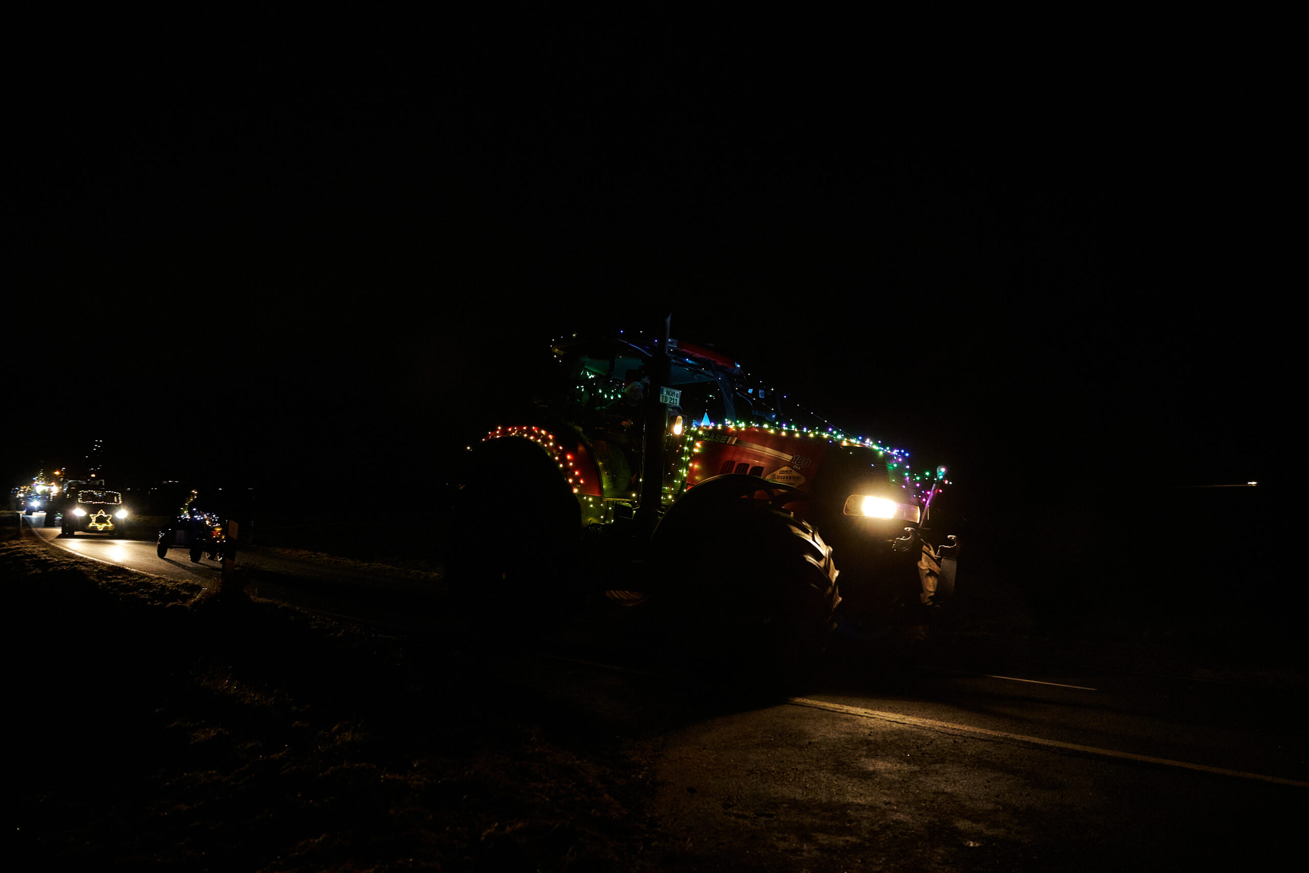 Beleuchtete Traktoren und Feuerwehrautos zogen am 4. Adventssonntag durch die Straßen von Sudheim und Bühle. Wie in vielen anderen Orten auch wurden die Maschinen mit weihnachtlichen Lichtern und Motiven geschmückt.