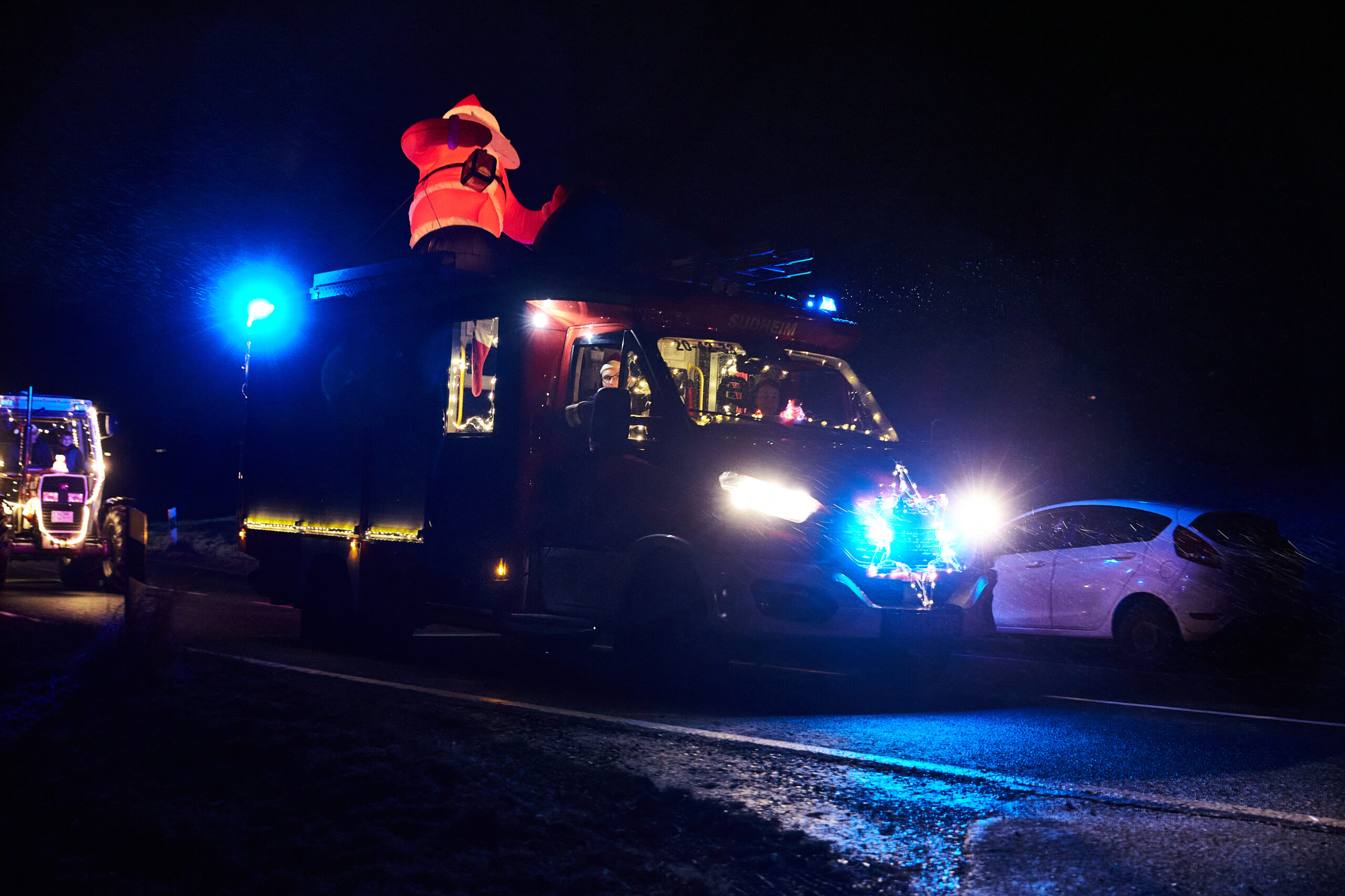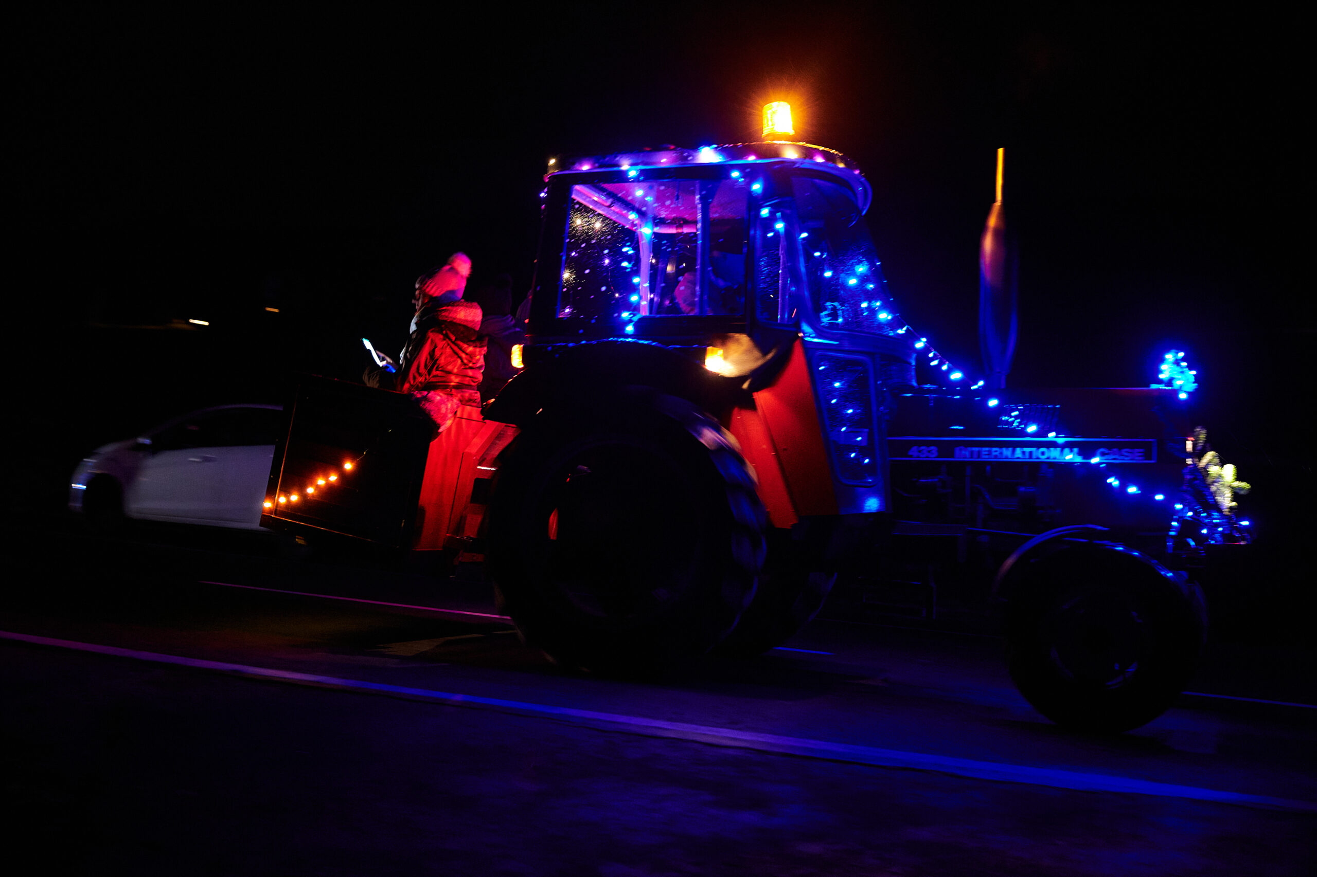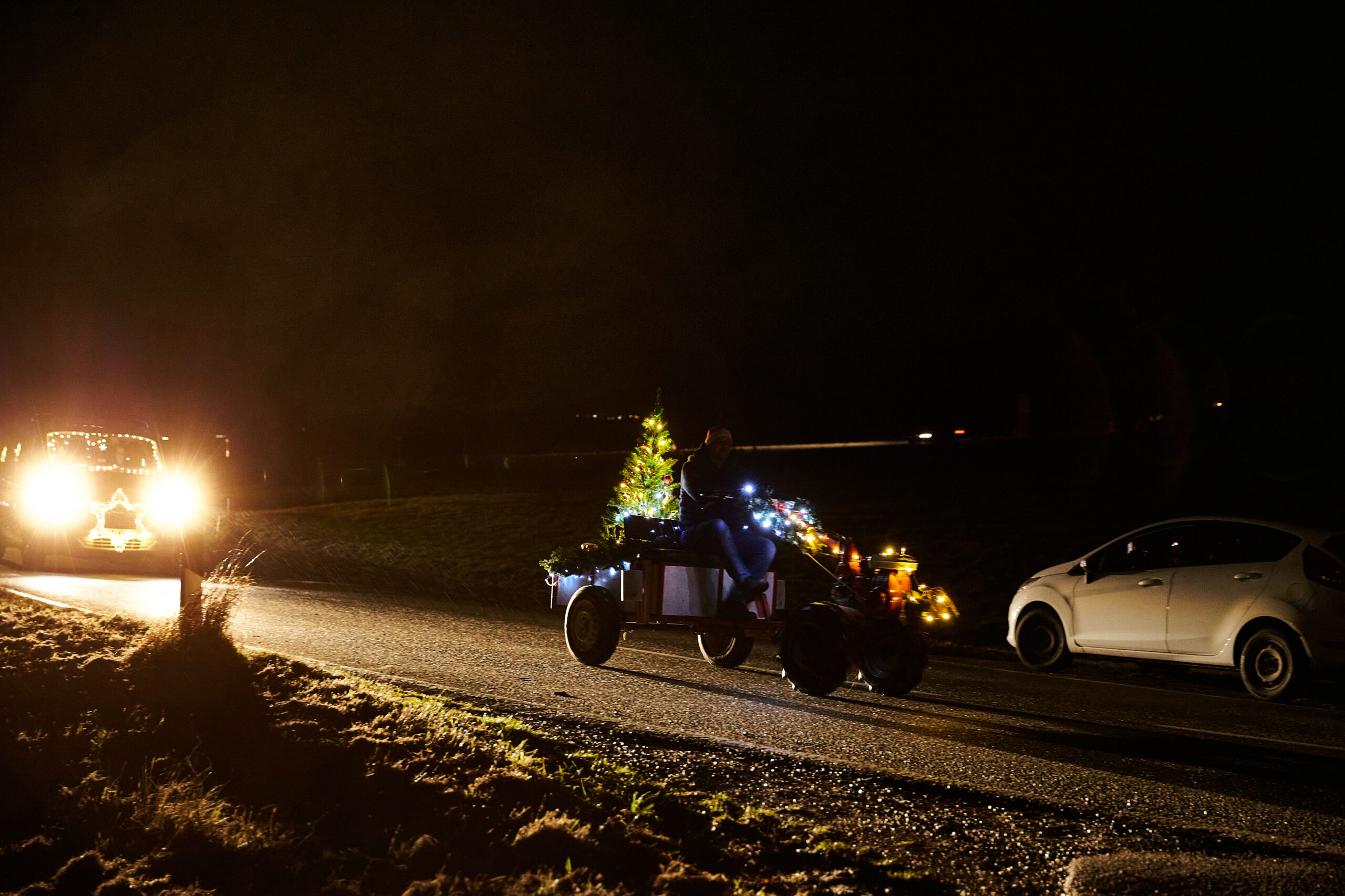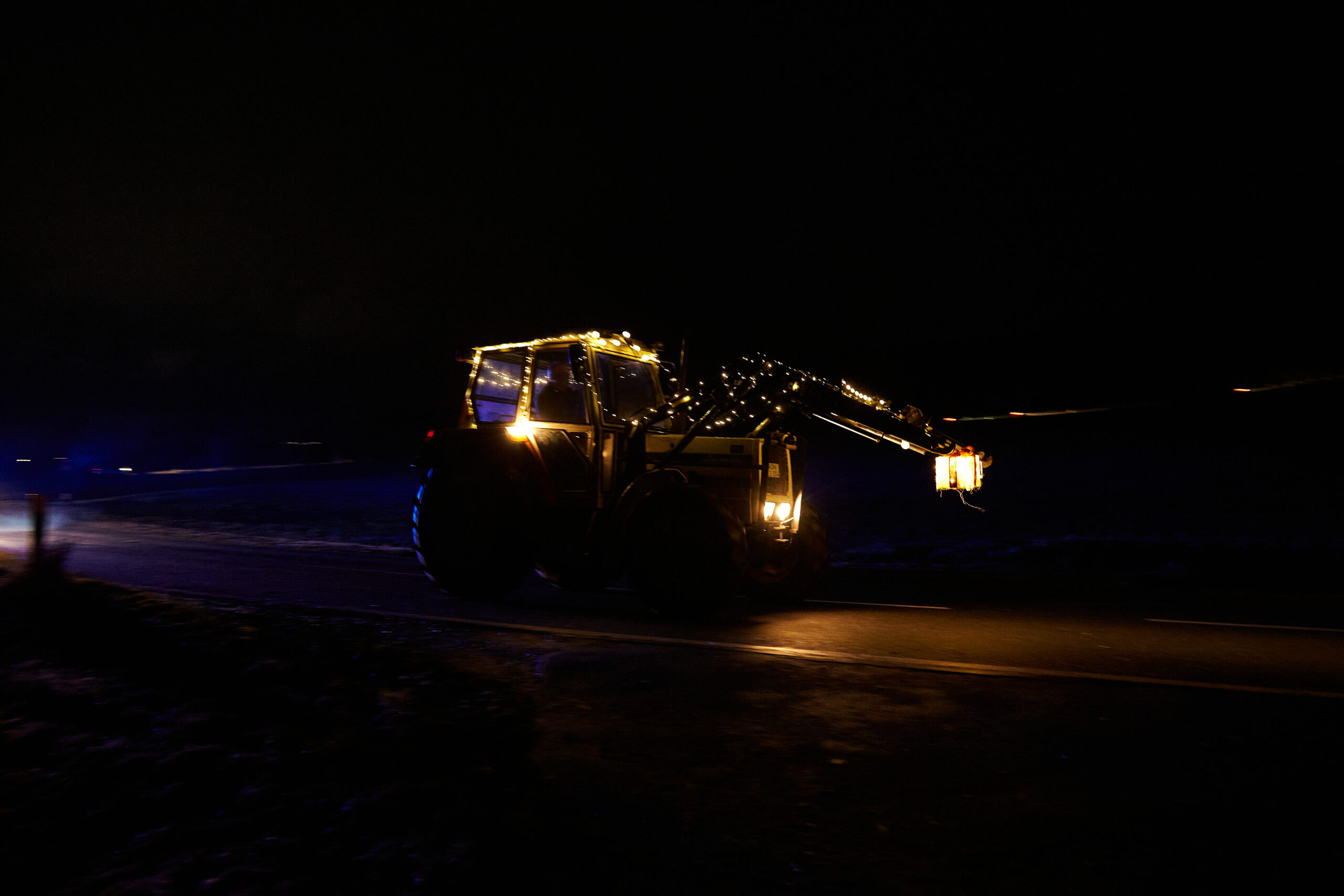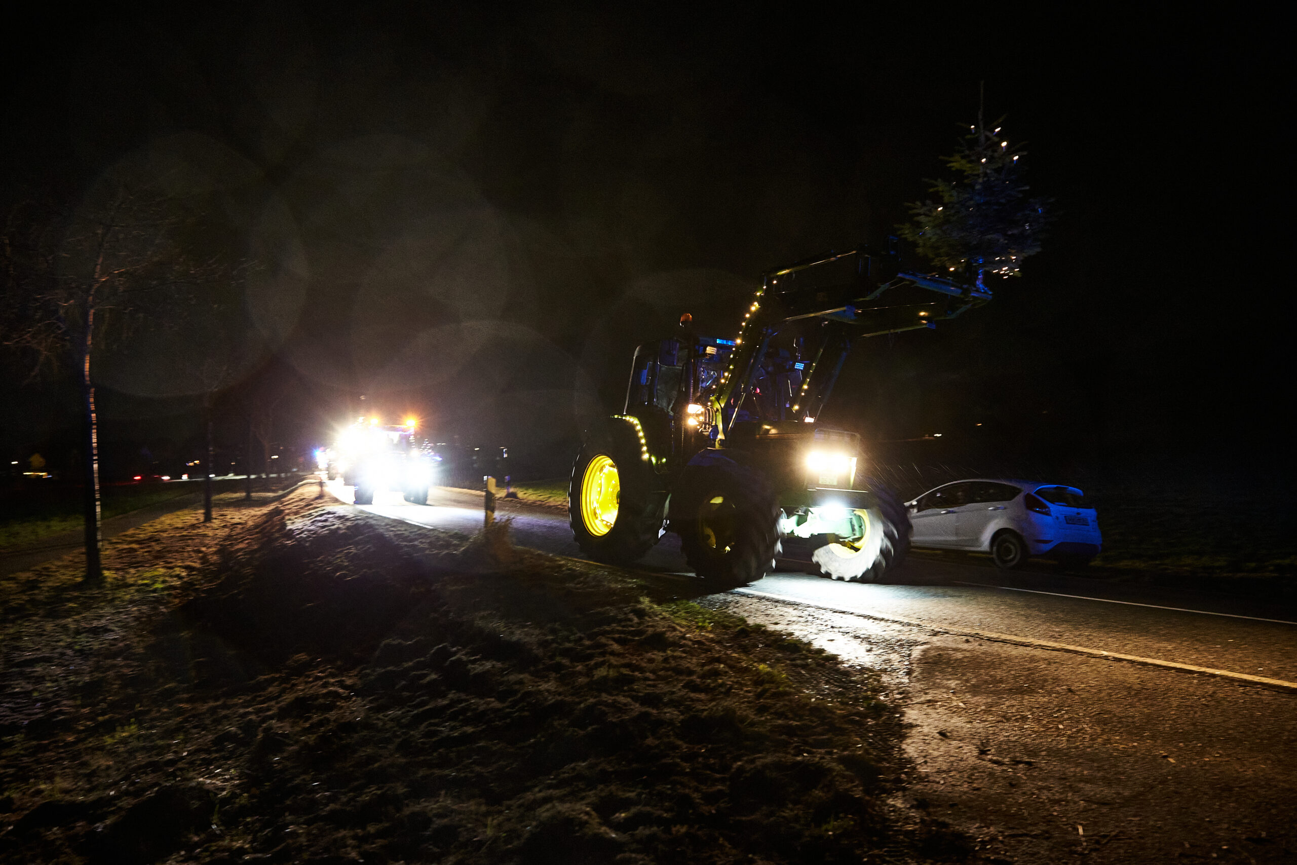 Beleuchtete Traktoren und Feuerwehrautos zogen am 4. Adventssonntag durch die Straßen von Sudheim und Bühle. Wie in vielen anderen Orten auch wurden die Maschinen mit weihnachtlichen Lichtern und Motiven geschmückt.